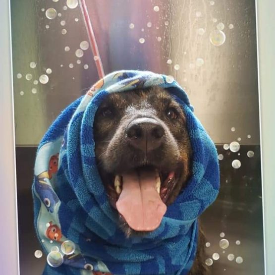 Allie is the go to dog if you're looking for a gentle giant (88 pounds) that always seems to have a smiling face