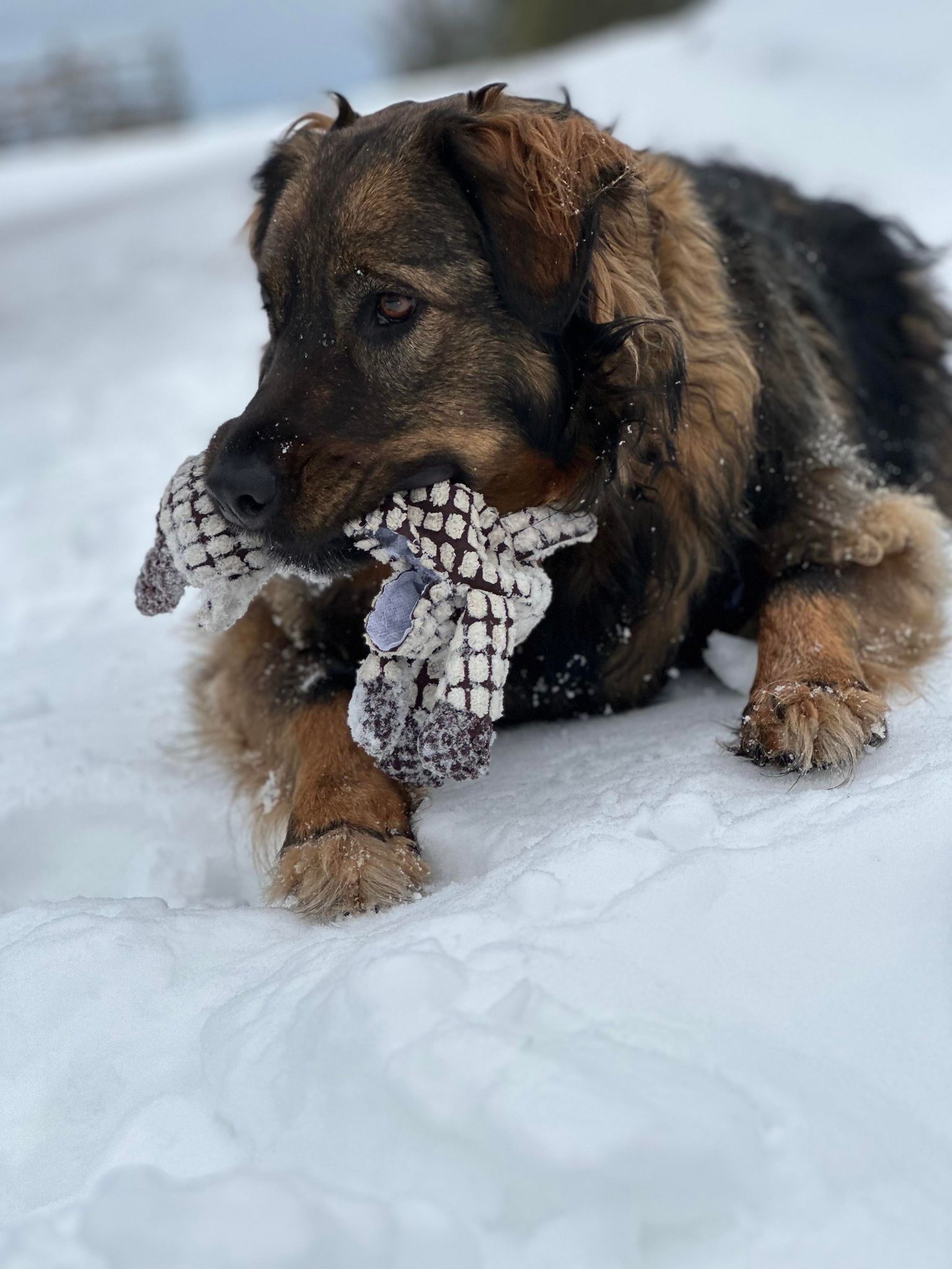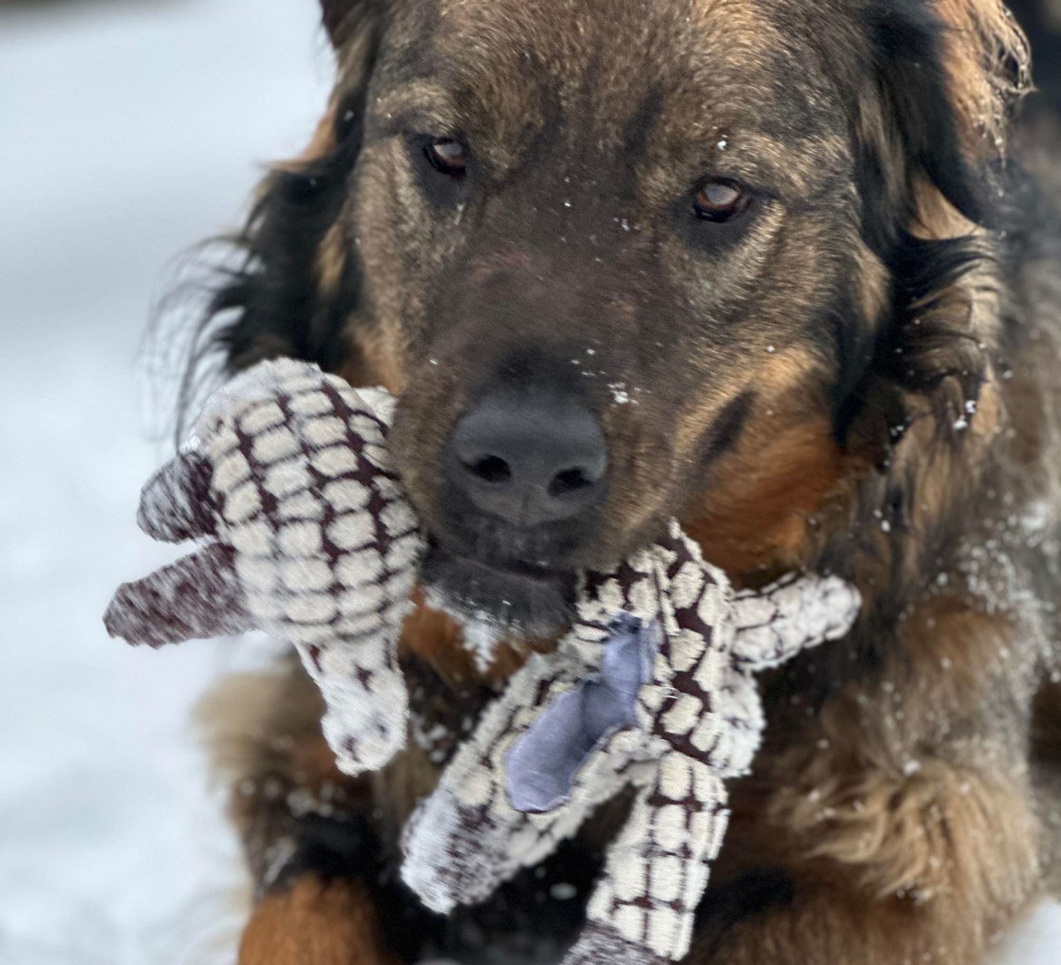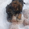While playing, consistently is mindful of owners hands. Good knowledge of basic commands and very curious to learn. Good jumping ability and always holds tail high. Gentle and friendly with other animals. Allie is very much a water dog and loves being in streams, ponds, and other bodies of water. A big fan of winter, snow, and rolling in and burying herself in drifts of snow. In regards to her breeds, she is faster than most other large dogs. Allie is happiest in the winter and loves water in the Summer. She loves to sprint and you can definitely hear the impact she makes on the ground.