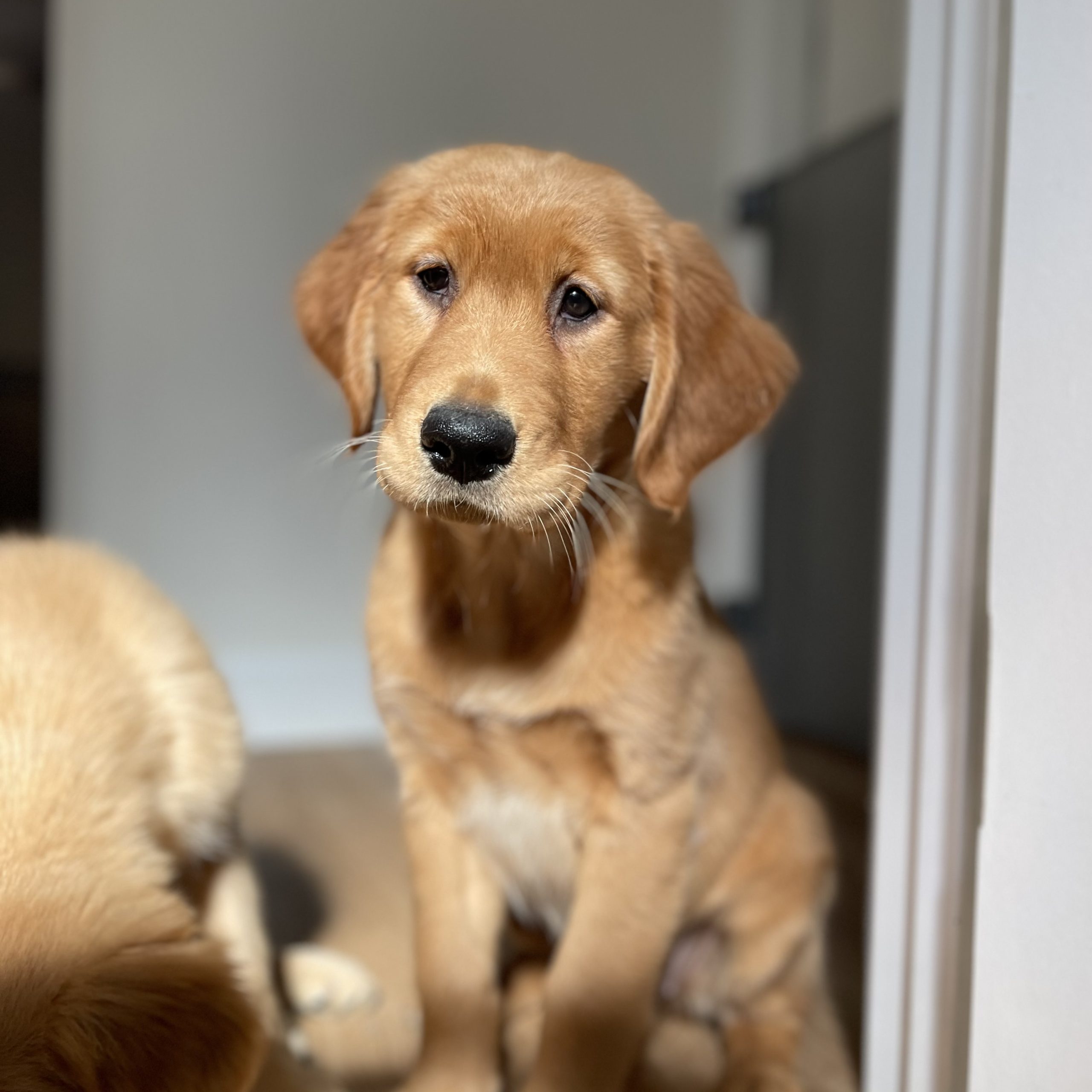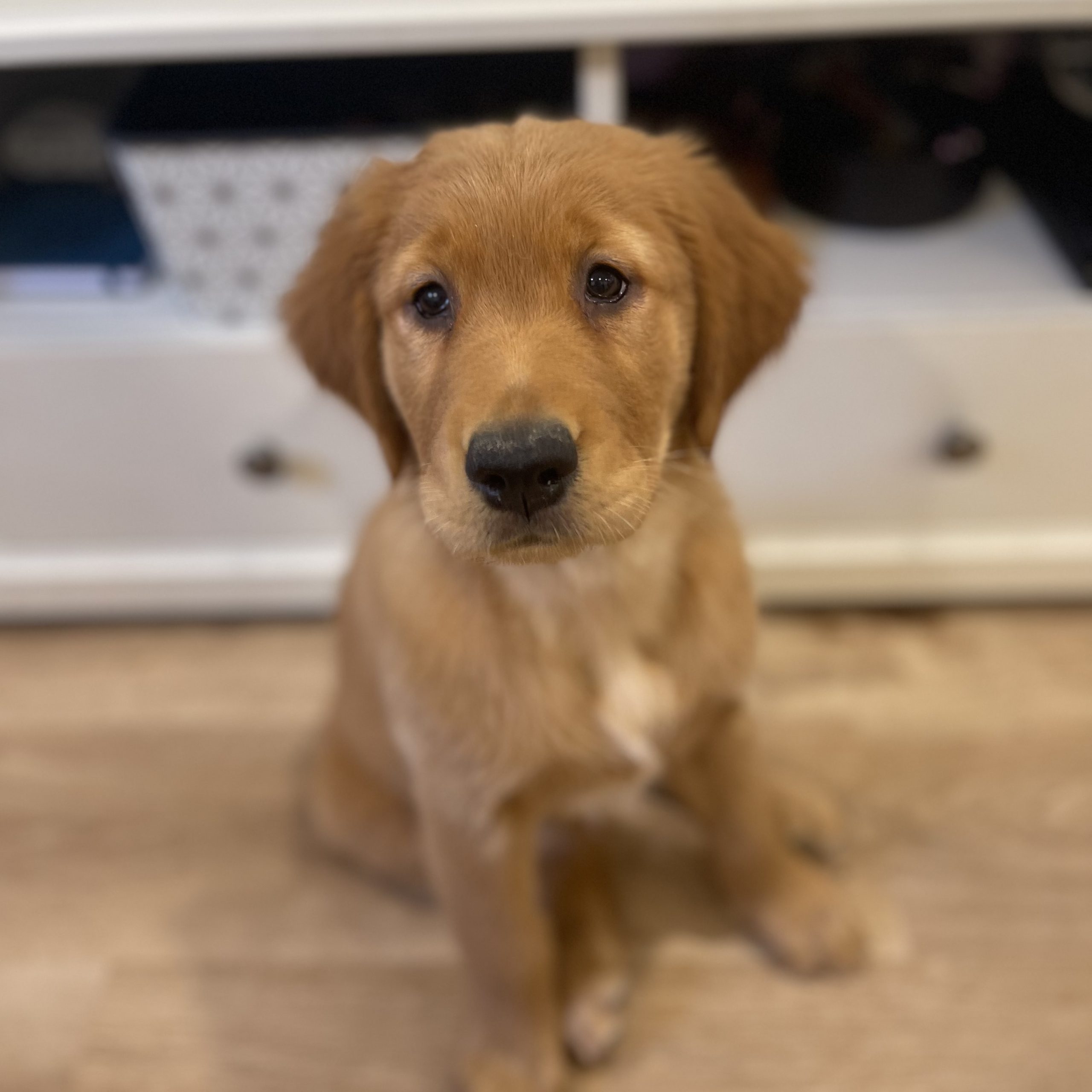 Miss. Piggy is a high energy, loving and confident puppy! She loves absolutely everyone she meets, her confidence is out of this world! She is well socialized in public, walks very well on leash, loves dressing up, extremely food and toy driven. She also loves swimming!! She will carry pretty much anything you hand to her! She has an eye for the camera and will pose every time you want a photo, with her intense handler focus she is sure to blow you away!