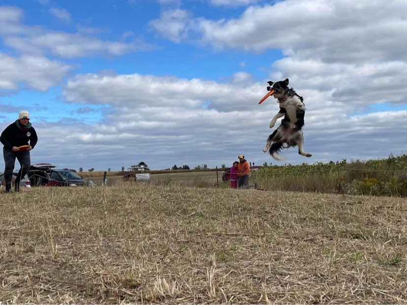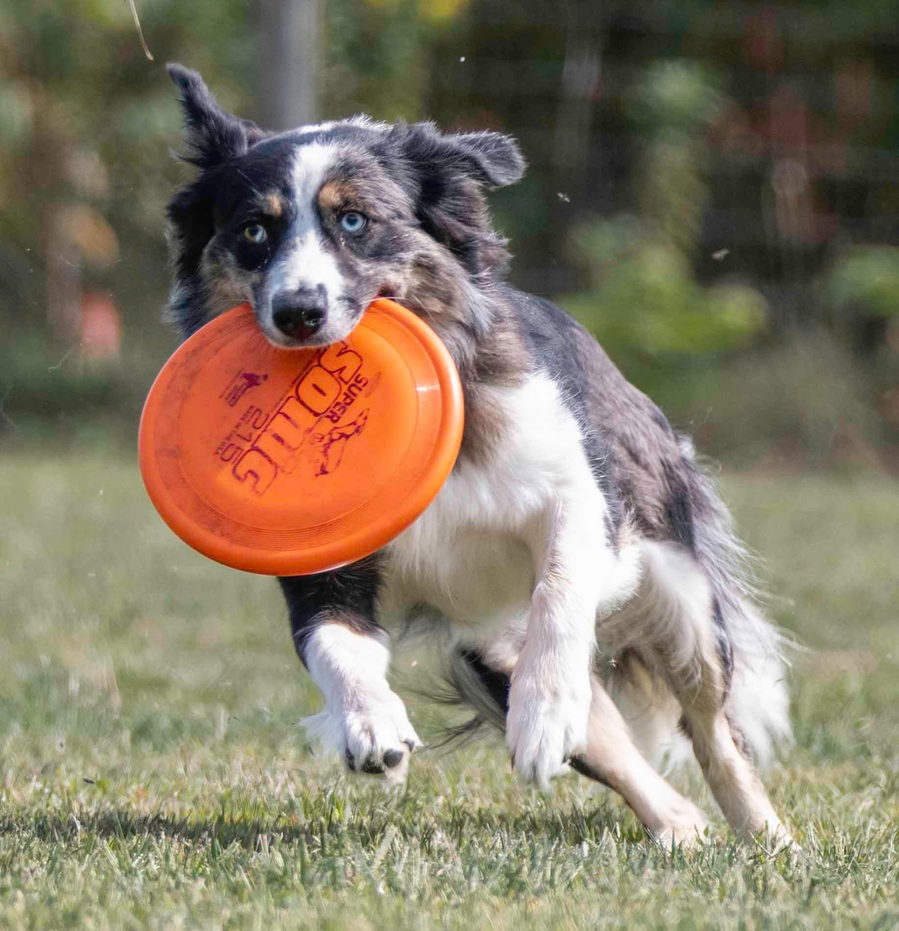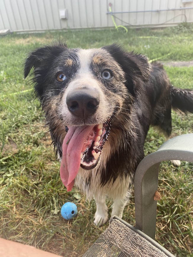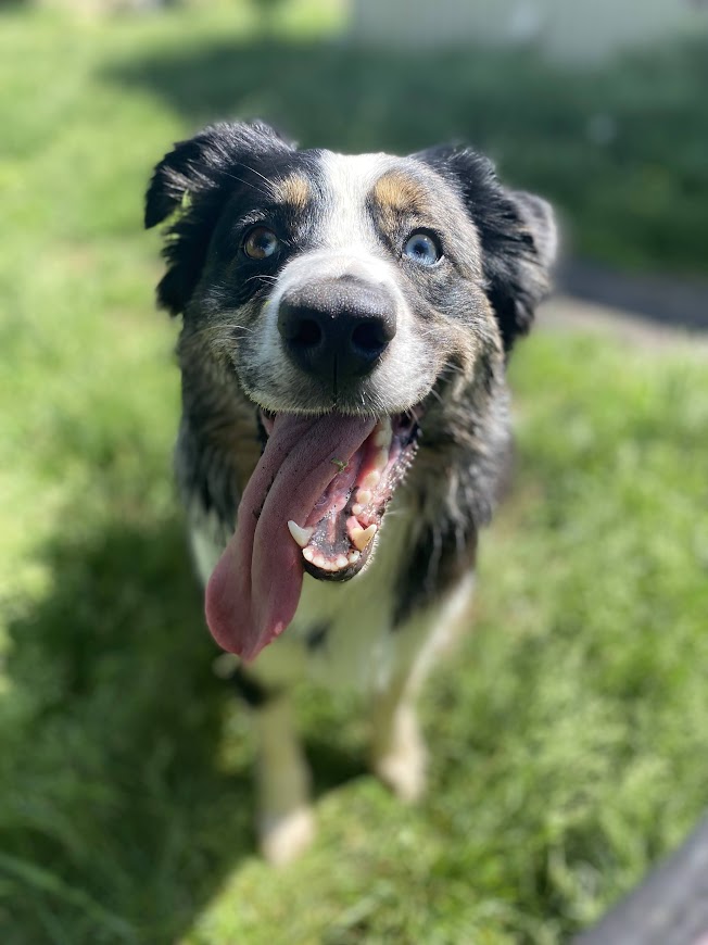 She is a blue merle Australian Shepherd with a full tail and bi-coloured eyes. She has a variety of tricks, skills, and dog sports skills under her belt. She is a quick study and picks up on new tasks quite quickly/