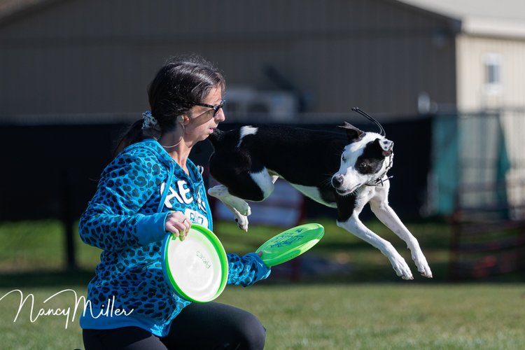 He loves disc, dock diving, agility, & we’ve been recently trying new workshops for scent detection, sledding, etc Aries loves to use his nose!