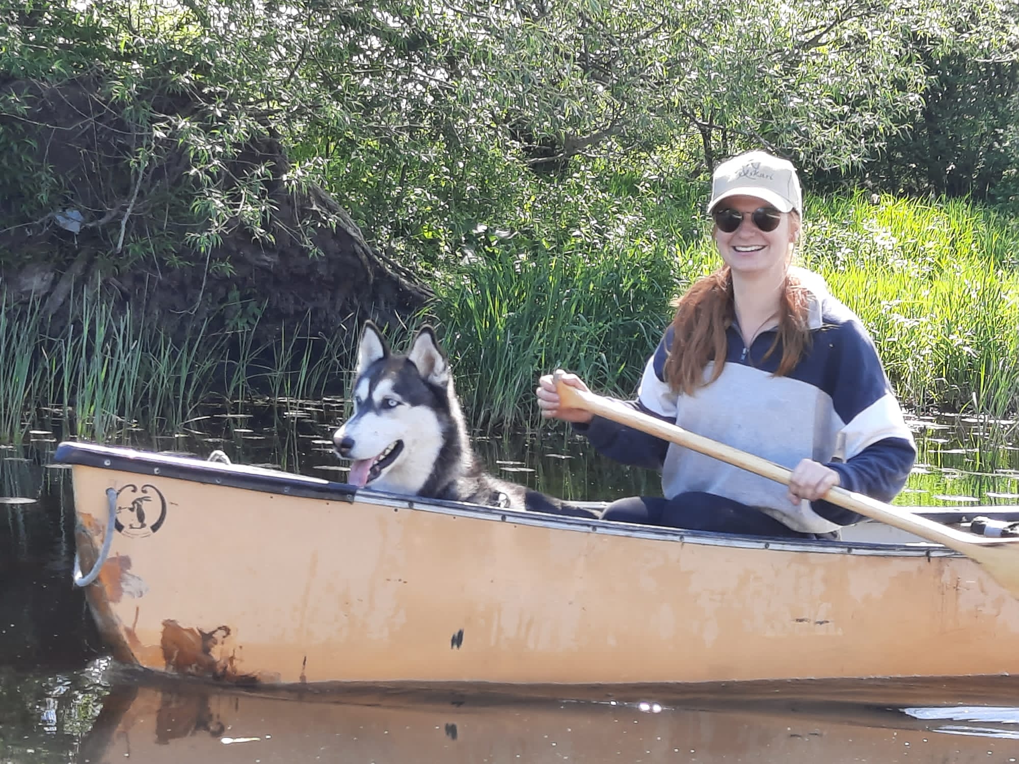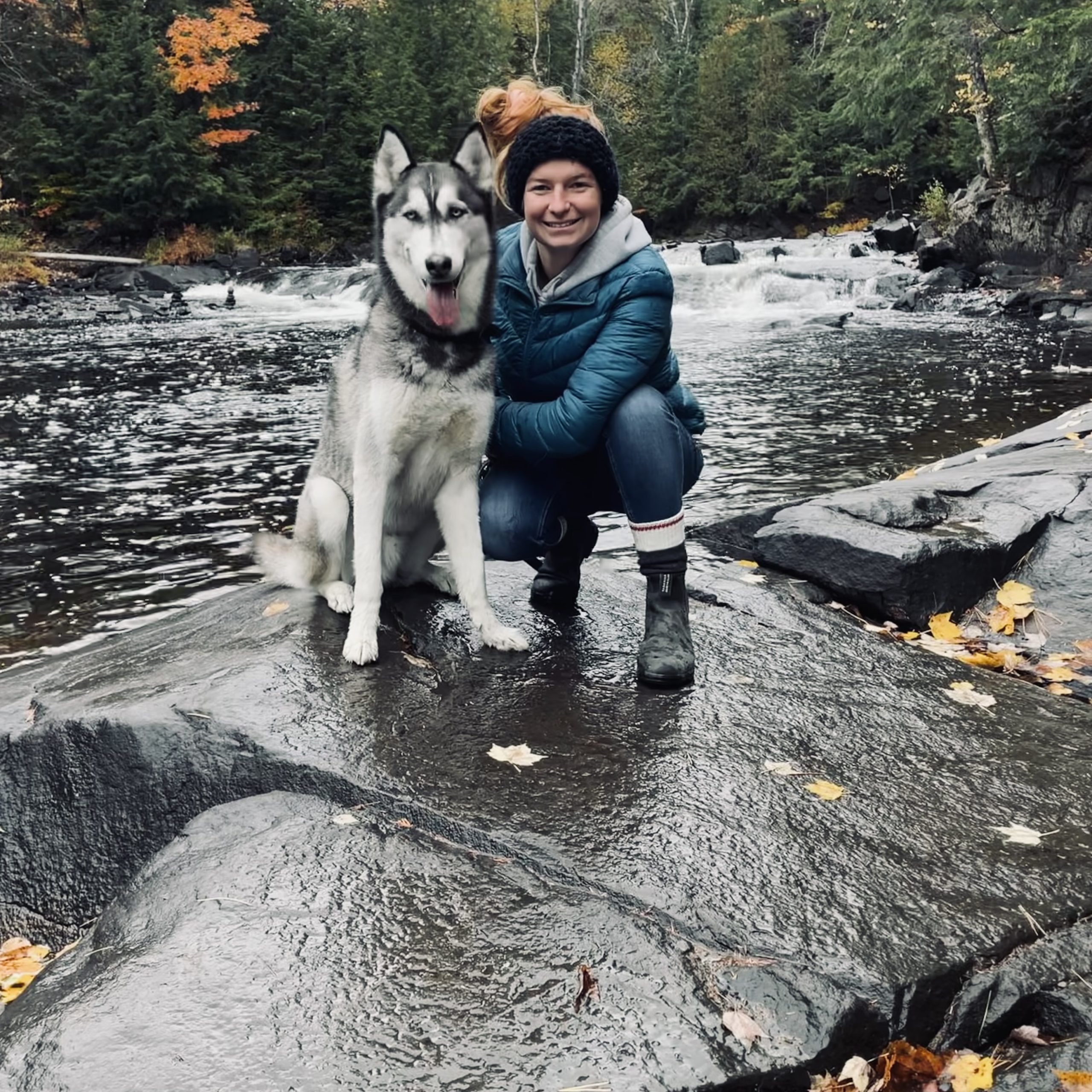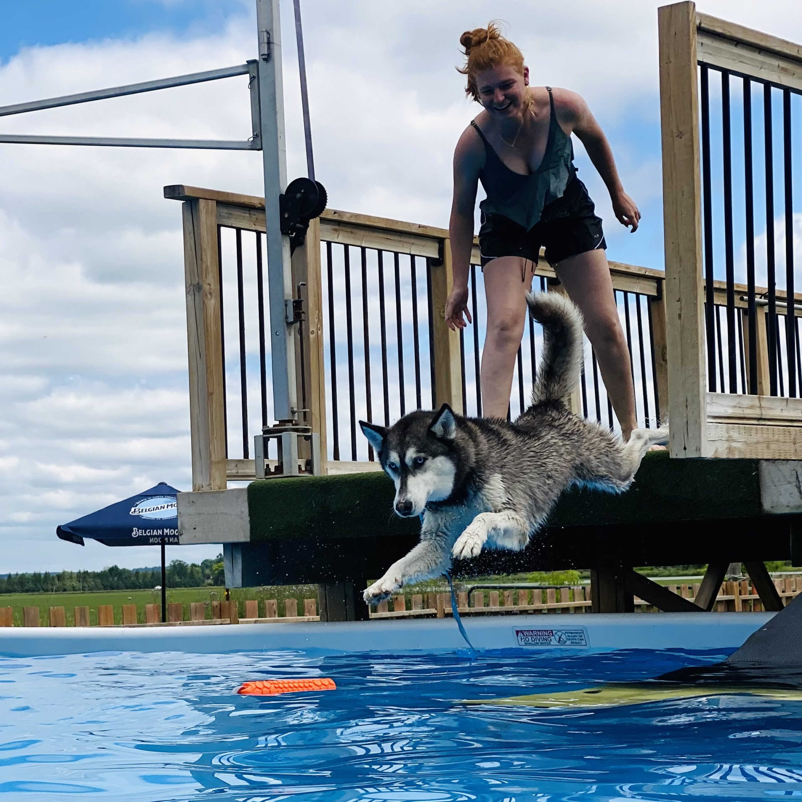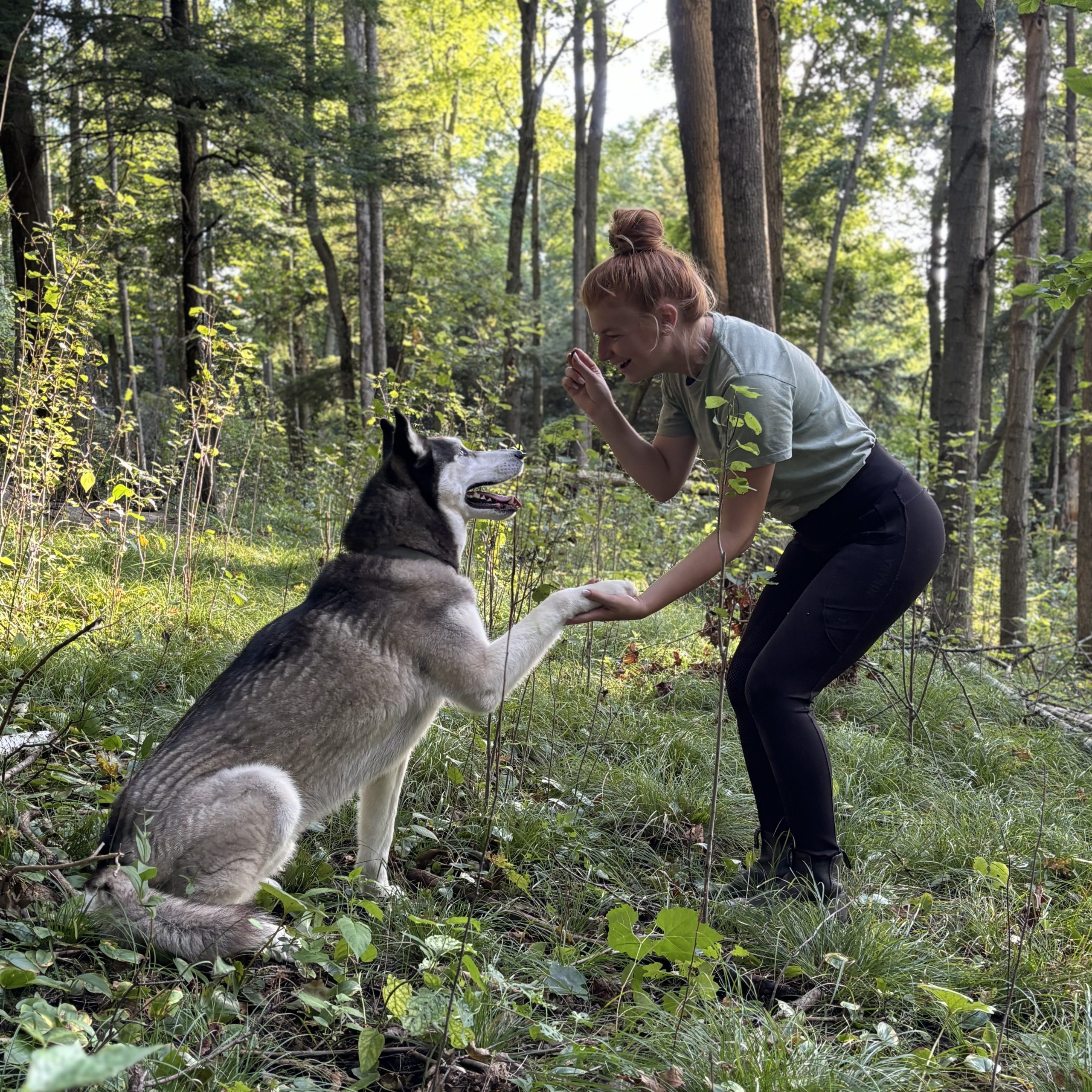 A big dog with an even bigger heart. Atka loves people, very trick smart, good recall, can howl or bark. Loves to play and everyone can handle him. He is the perfect adventure dog, loves hiking off leash, canoeing, boarding, and pulls a bike.