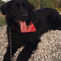 As his name suggests, Bear is a big 125lb Newfie-X boy who looks like a "Big Bear"! He came to us at 7 months of age with limited opportunities to explore his world. He has made remarkable strides in confidence and self-esteem. He loves to play, go for hikes, car rides, and enjoys swimming in calm waters. Bear has been an amazing foster pal to the "foster dogs" his humans foster. He is very intelligent and a quick learner.  Bear enjoys spa days and making funny faces for his groomer.