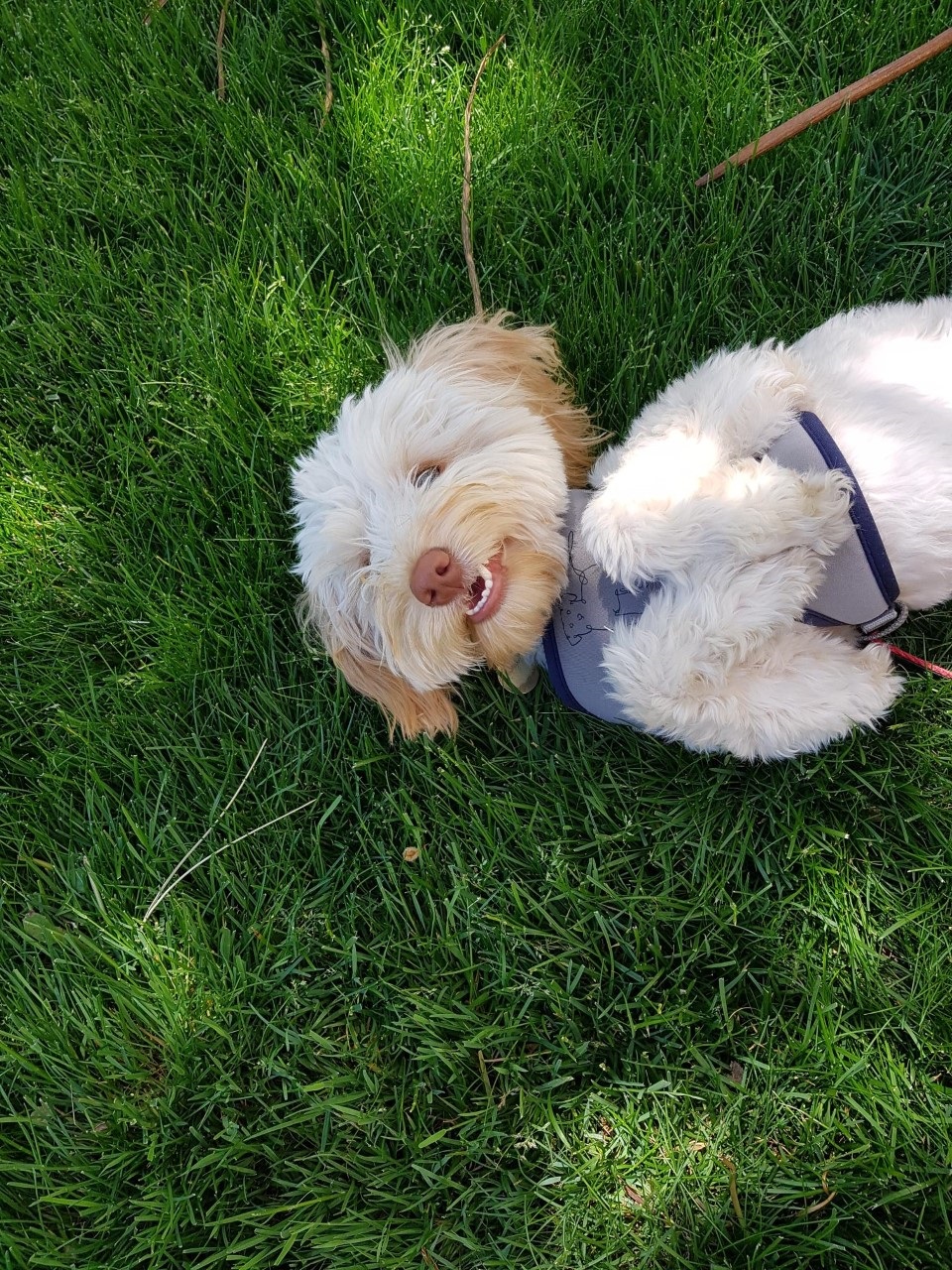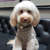 Bella came to us as an emotional support animal. She has a sweet, friendly, calm, and quiet disposition. When she's not chilling in her shrine-like corner of the home listening to Pachelbel's Canon, she enjoys making new dog friends at the dog park, playing ball or frisbee, riding in the car with the window down, giving her toys a work-out, inspecting lawn sprinkler systems and people watching. Behind her long eye-lashes, hazel eyes, pink nose and slight feminine frame lies a playful tomboy.