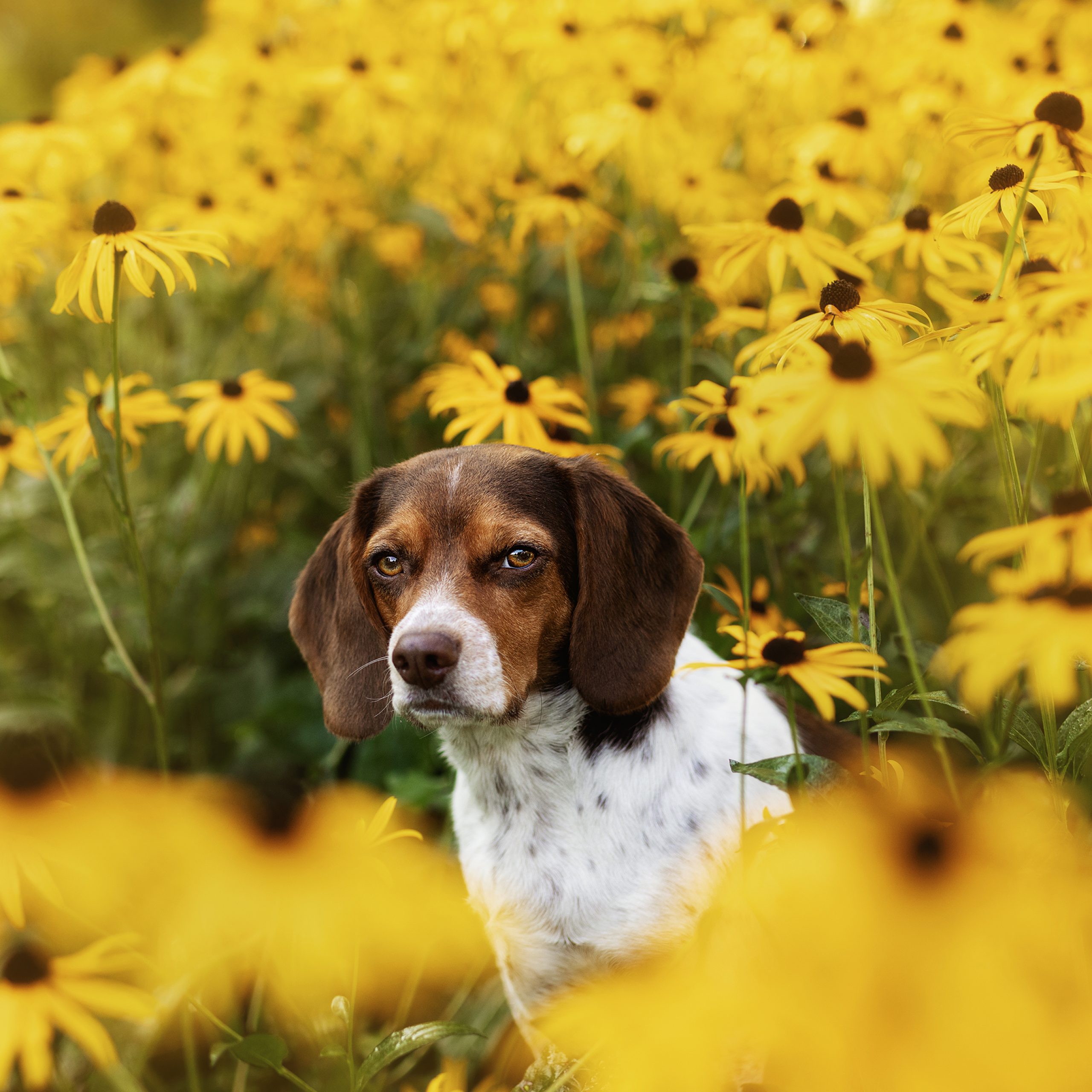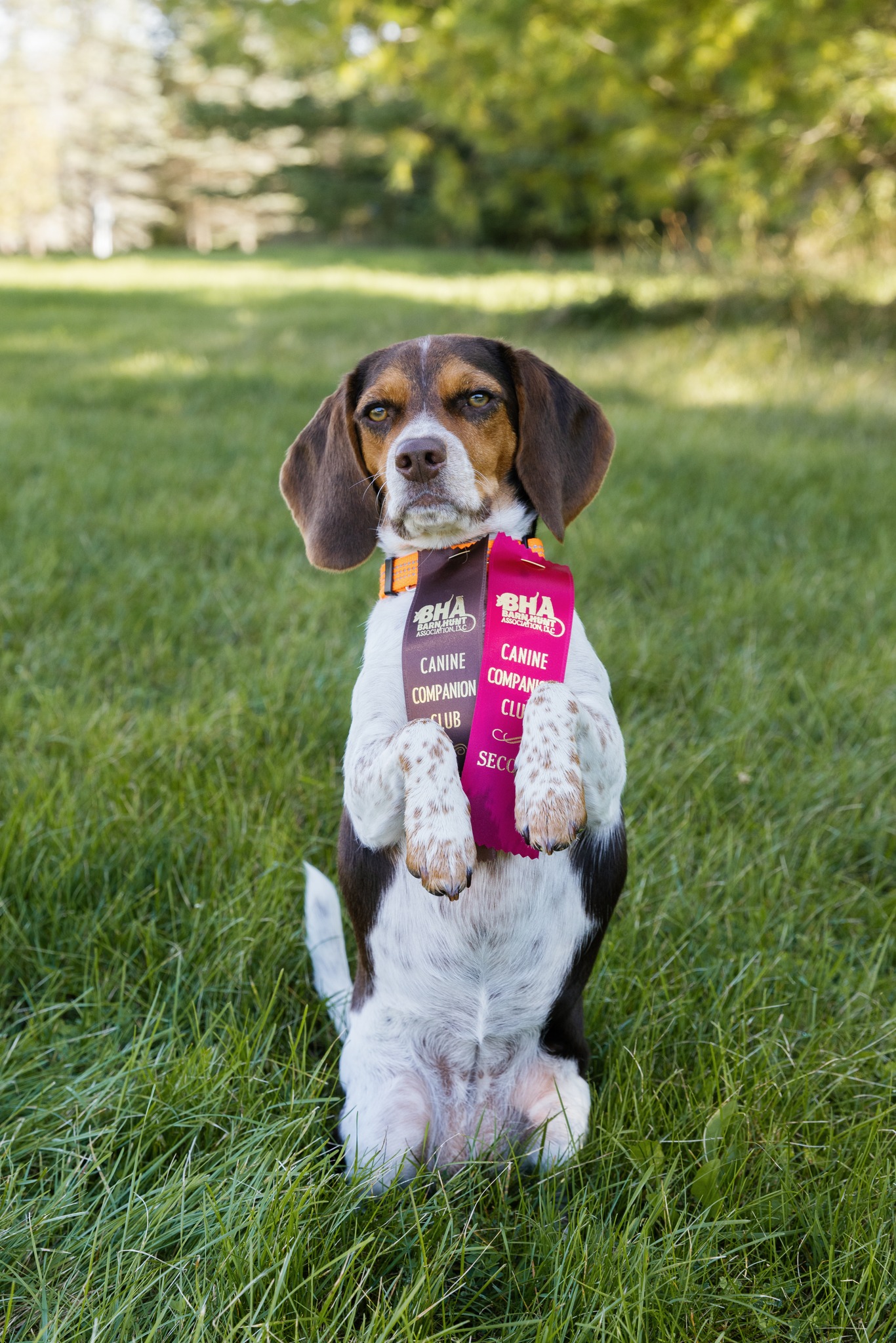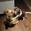 Brandi is a small beagle. She is sweet but also serious and always ready to work especially for food. She has a mix of low and high energy depending on the task. She can be afraid of dogs at first but once sees they are okay she is sweet and playful. Loves to nap but also loves to run around playing and exploring.