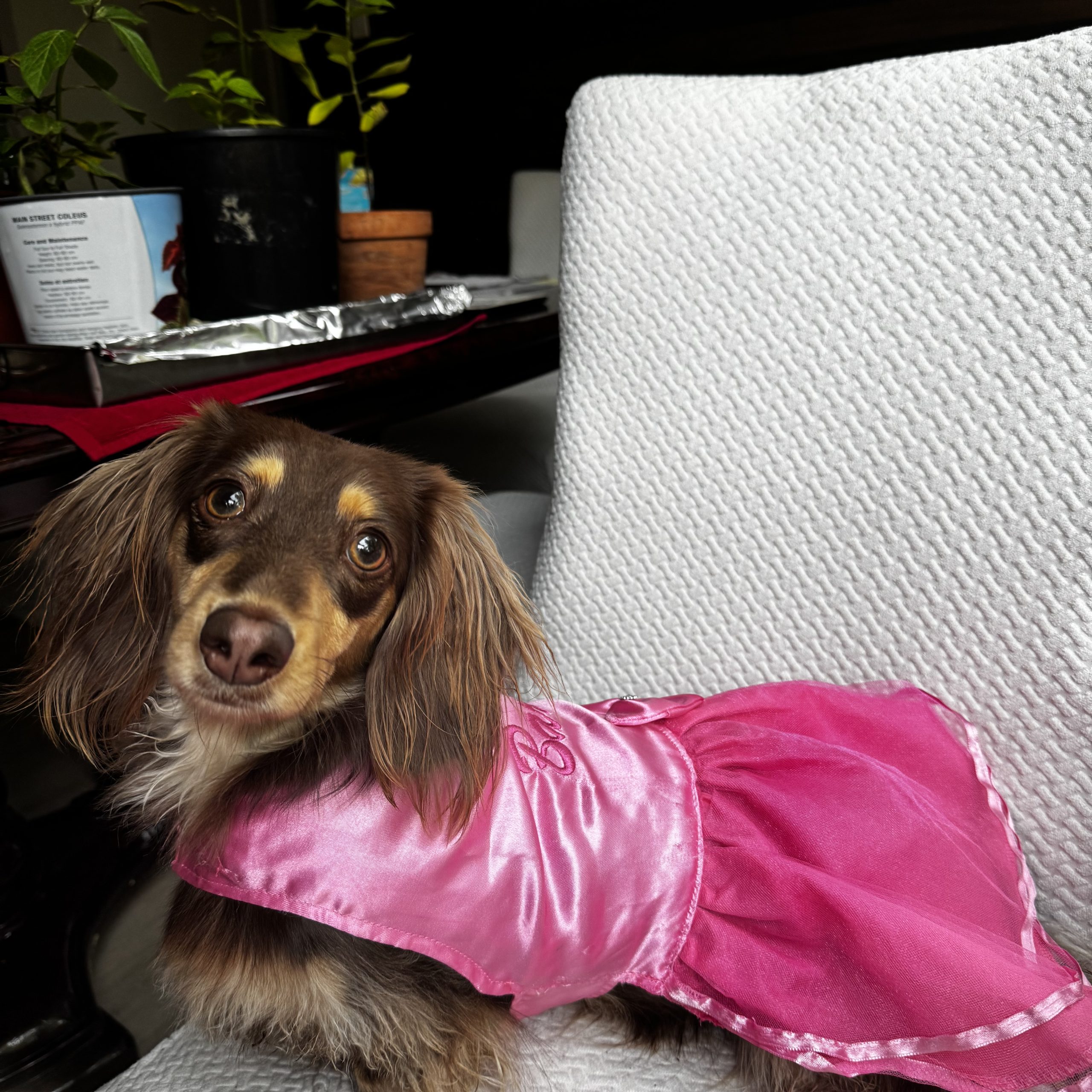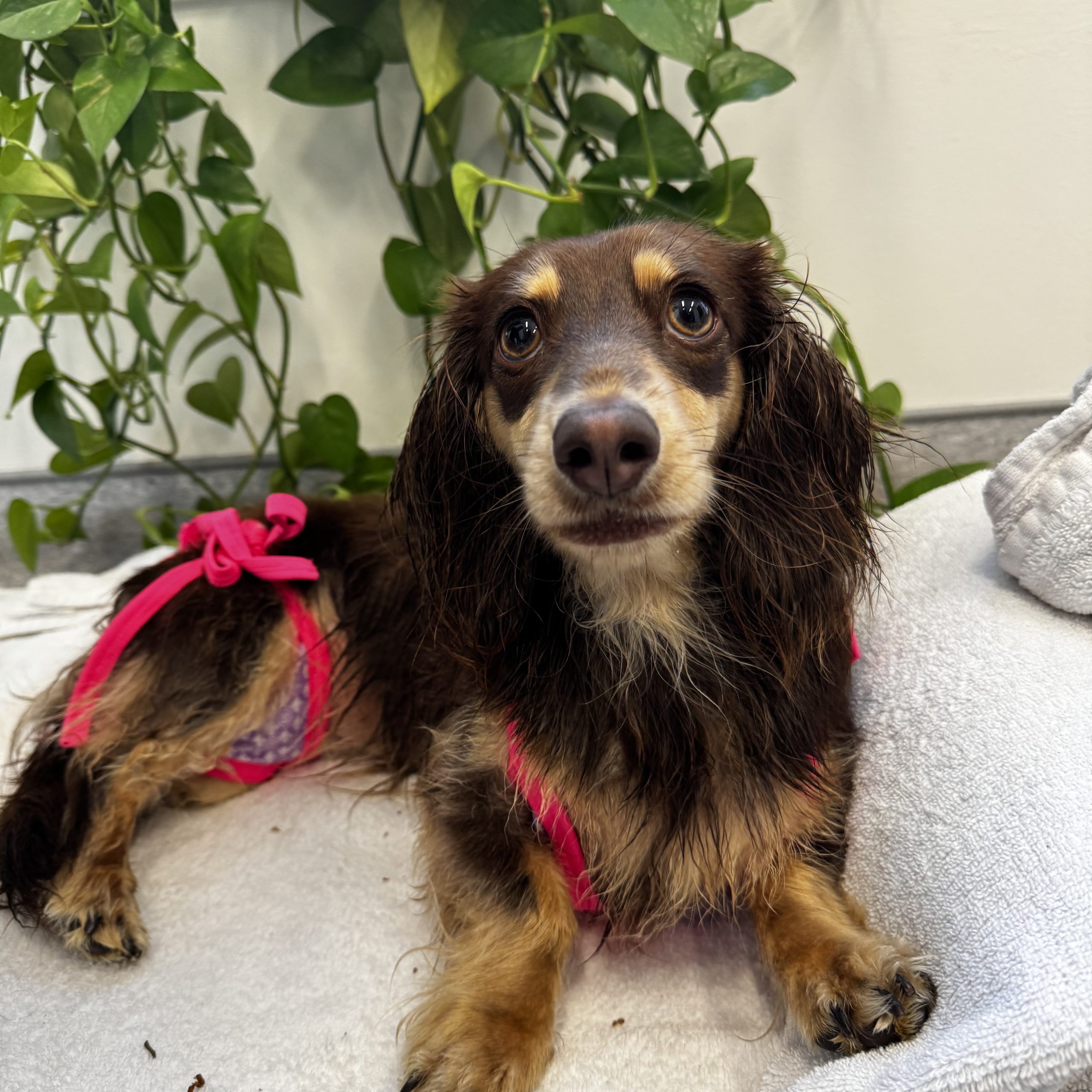 Chicha is a mini dachshund with a big personality and even bigger opinions. She a very passionate communicator ( aka barking but only out of love for attention). Has absolutely no concept of personal space and will gladly lick your face if given the chance. A traveler in the city especially when in her dog bag and a professional foot tapper when she wants something- most often a treat. Chi is incredibly sweet with kids, selectively social with other small dogs especially her kind. A firm believer that any stick on the ground is legally hers and must go home with her. Long body, giant heart and zero boundaries!