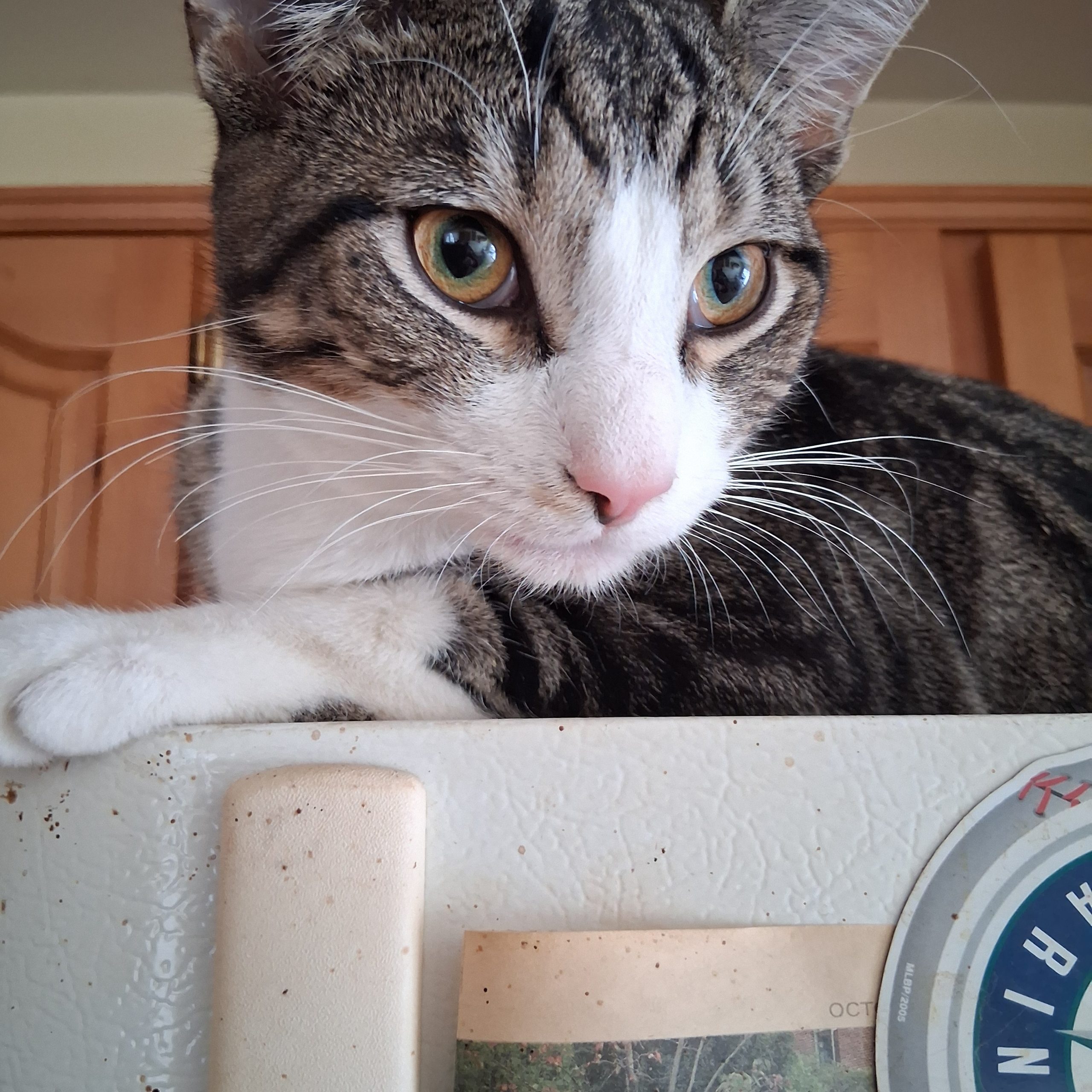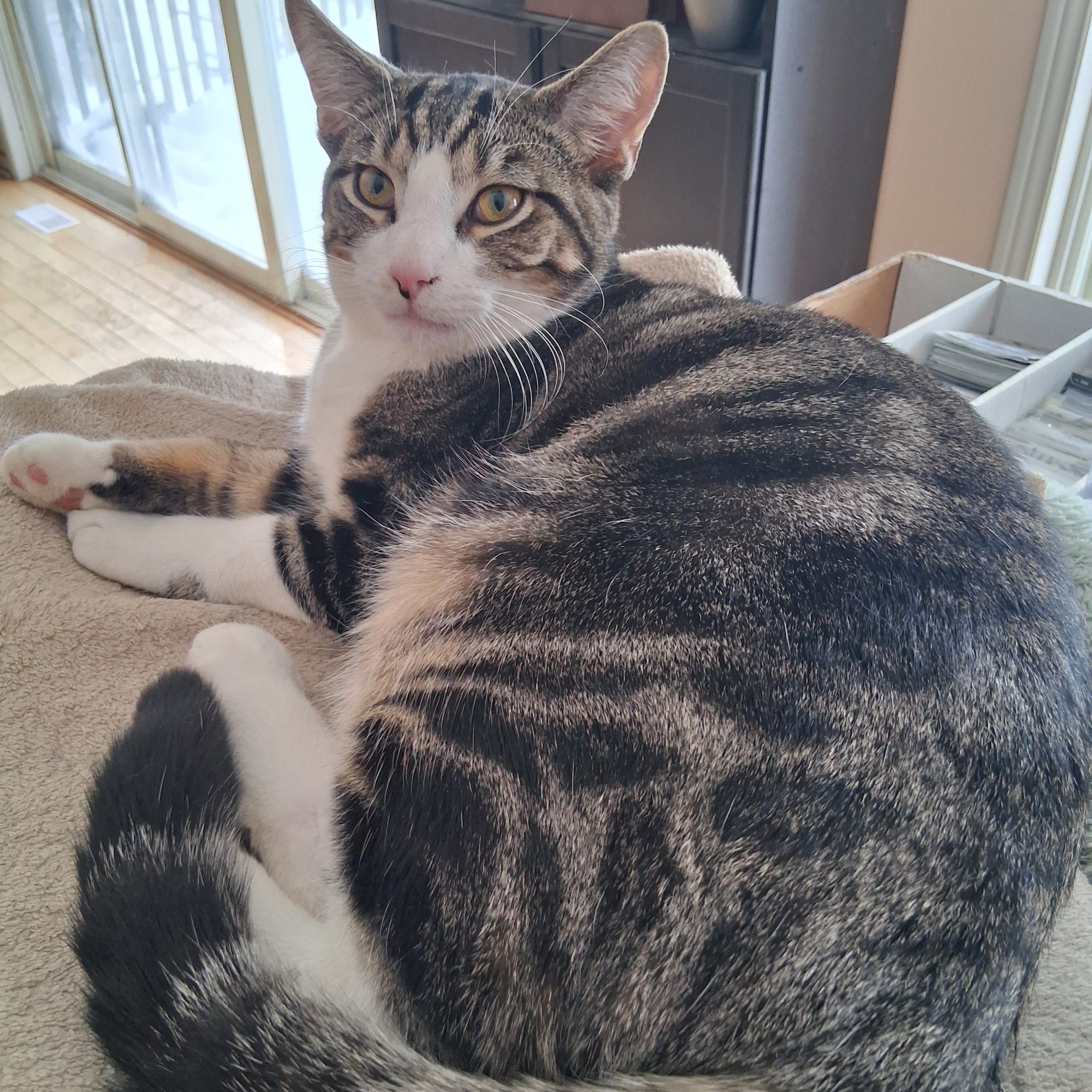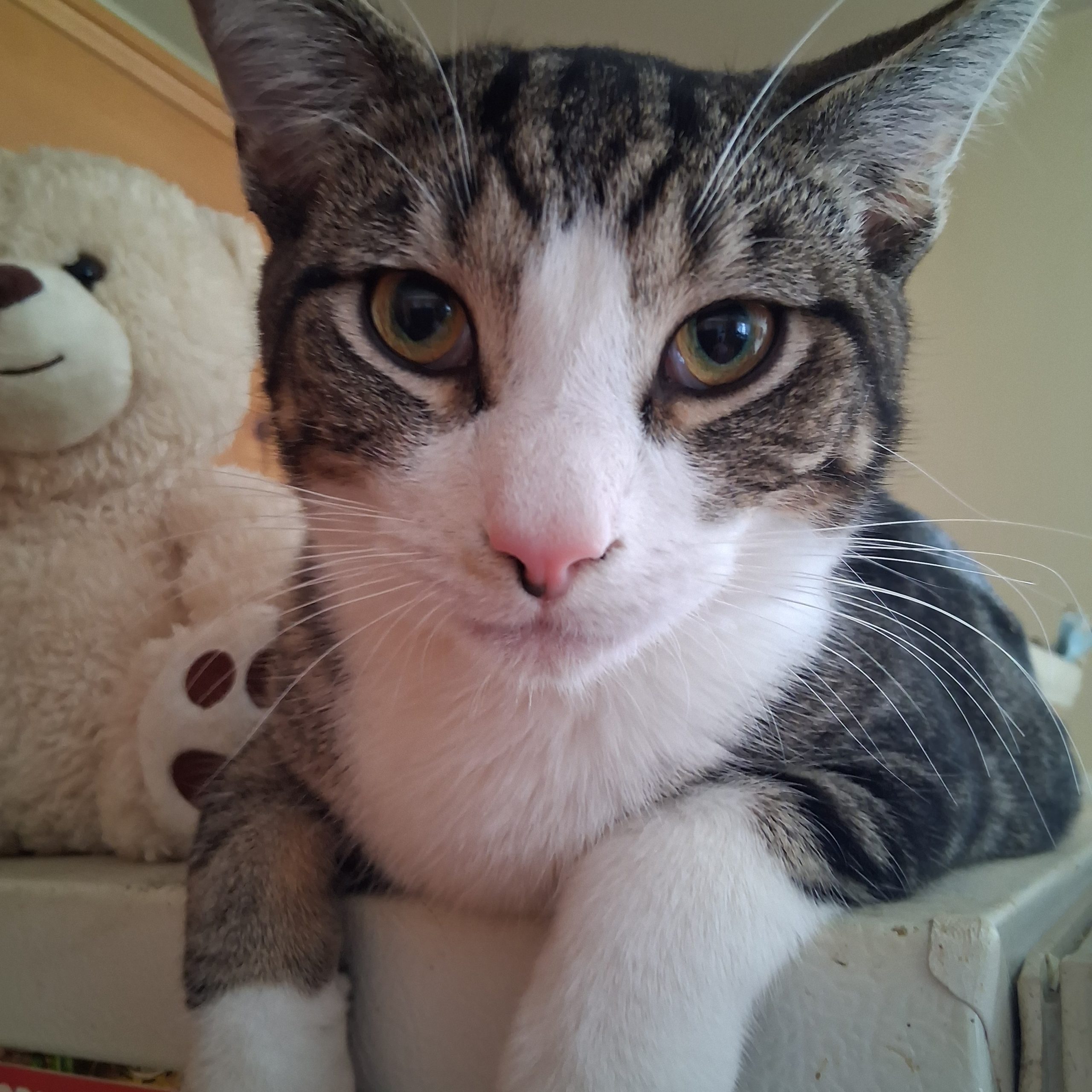 Daze thinks he's a dog in some ways. Daze enjoys going for walks with myself and the dogs and will wait to be picked up and take in. Daze has that something about him that makes you smile. He loves his balls and other toys and definitely is not shy. Unlike my other 2, Daze is not shy with visitors. Daze is just a gentle, handsome and an outgoing cat.
