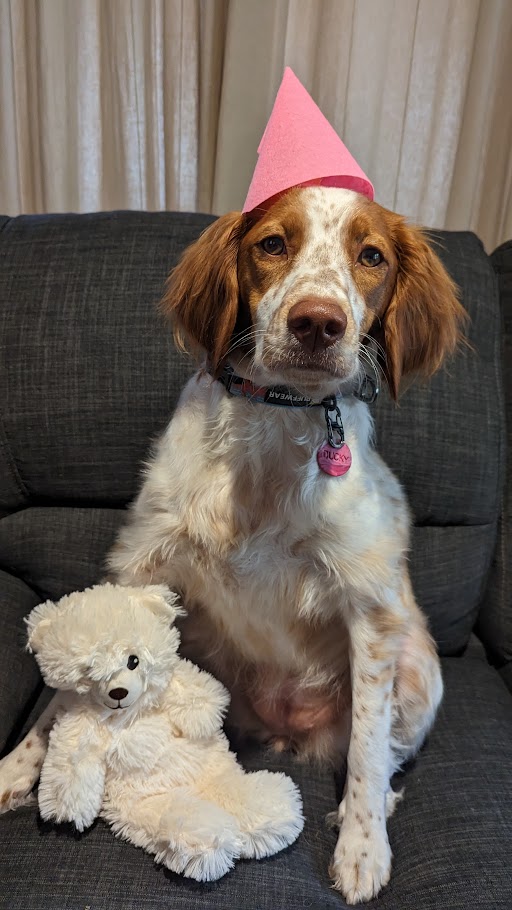 It's always a pleasure to meet Ducky. Many of my friends have asked to borrow her due to her sweetness. Ducky loves to greet people by running up to them and immediately rolling over on her back for belly rubs. Though she may have boundless energy outside, indoors, she is a couch potato and has a great off switch.