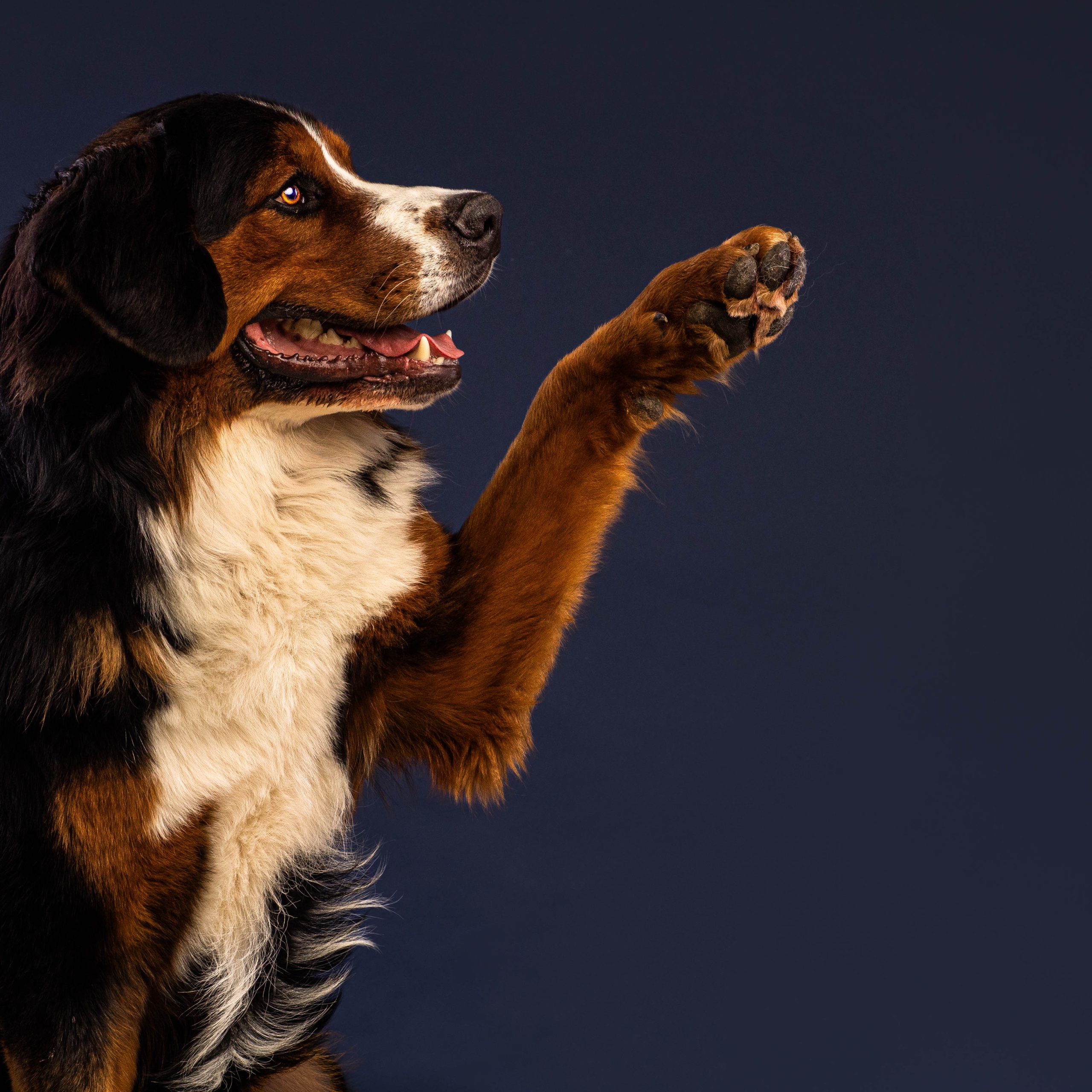 Emmett is a very happy and friendly 1 year old bernese mountain dog with very unique facial markings. He always surprises people for looking “bigger in person”! Emmett is a medium energy adolescent boy who loves working more than anything in the world. Emmett currently trains Rally Obedience and is constantly learning new tricks! Emmett has incredible engagement when he is working and has been extremely well socialized and works very well in public maintaining his tight heel and focus on his handler. Emmett has previous modelling experience and is very fun and easy to work with on set since he has a great stay in various positions.