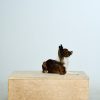 Ferg has been on set consistently since 4 months old and is familiar with the flow of production days, crew movement, and waiting between setups. He can switch into playful, animated energy when needed, then settle easily in his bed or crate between takes. He is comfortable wearing wardrobe, enjoys getting dressed, and absolutely loves being in a bag. He can fetch and return toys or objects, loves to dig, and can jump onto objects or furniture when needed. He is responsive and eager to work, knows touch, recall, sit, down, stay, and paw/high five, and is working on spin and sit pretty. Goofy and expressive, he loves to play like a big dog and also adores affection and being held, happily soaking up his solo star moments.