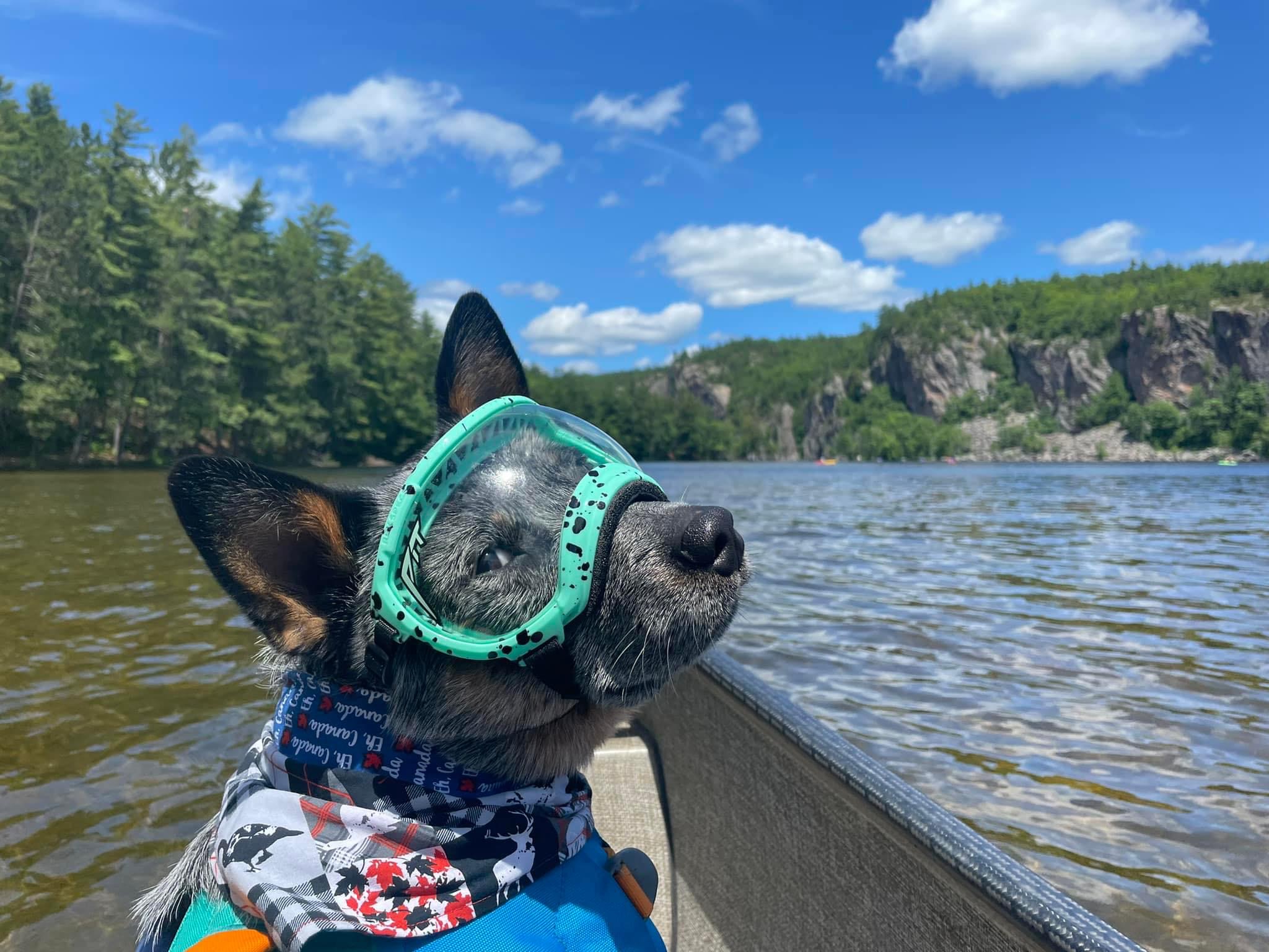Forest is a confident, bouncing ball of positive energy! He loves to pose, work and play. He enjoys showing off and getting a little rowdy but will work hard for snacks or some tug. Loves water, frisbee, pets and being gushed over. Forest knows many tricks and we’re always open to adding more, he can have a bit of sass which either adds to the energy or can provide some funny outtakes but he’s 98% a good boy that’s ready to do most tasks put in front of him, sometimes he just needs a little bribing or clearer instructions and then he’s good to go! Forest enjoys camping, hiking and is seasoned in canoeing with his Rexspecs goggles and ruffwear life jacket. Forest does have something’s to work on still as training never ends but for the most part, whatever you need if we can train it, he’ll get it done!