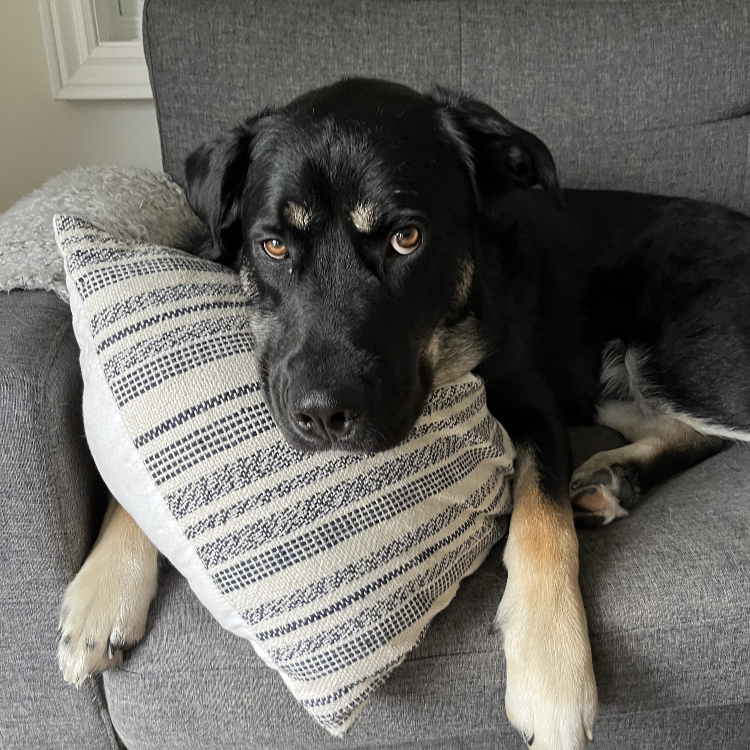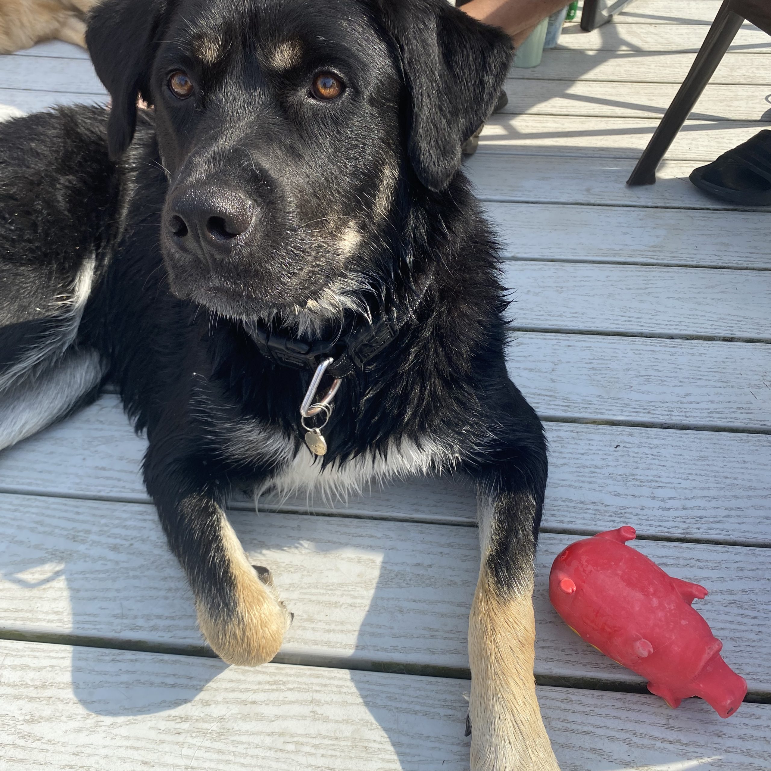 Forrest is an intelligent, gentle giant with a big heart. He gets compliments everywhere we go for being the most “handsome boy.” While he is a mixed breed, he is a perfectly proportionate pup with the floofiest ears - the kind of dog that makes everyone stop and say hello. He gets along with all beings - people or pet - and is extremely food motivated, which makes learning new skills a fun and easy activity.