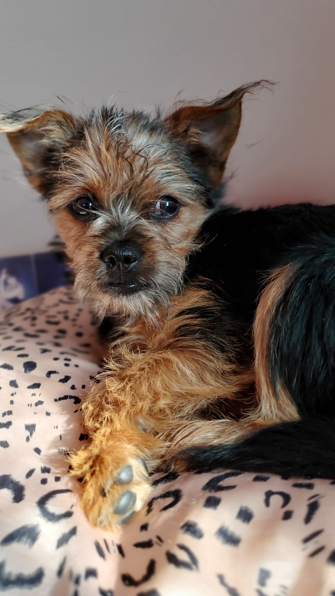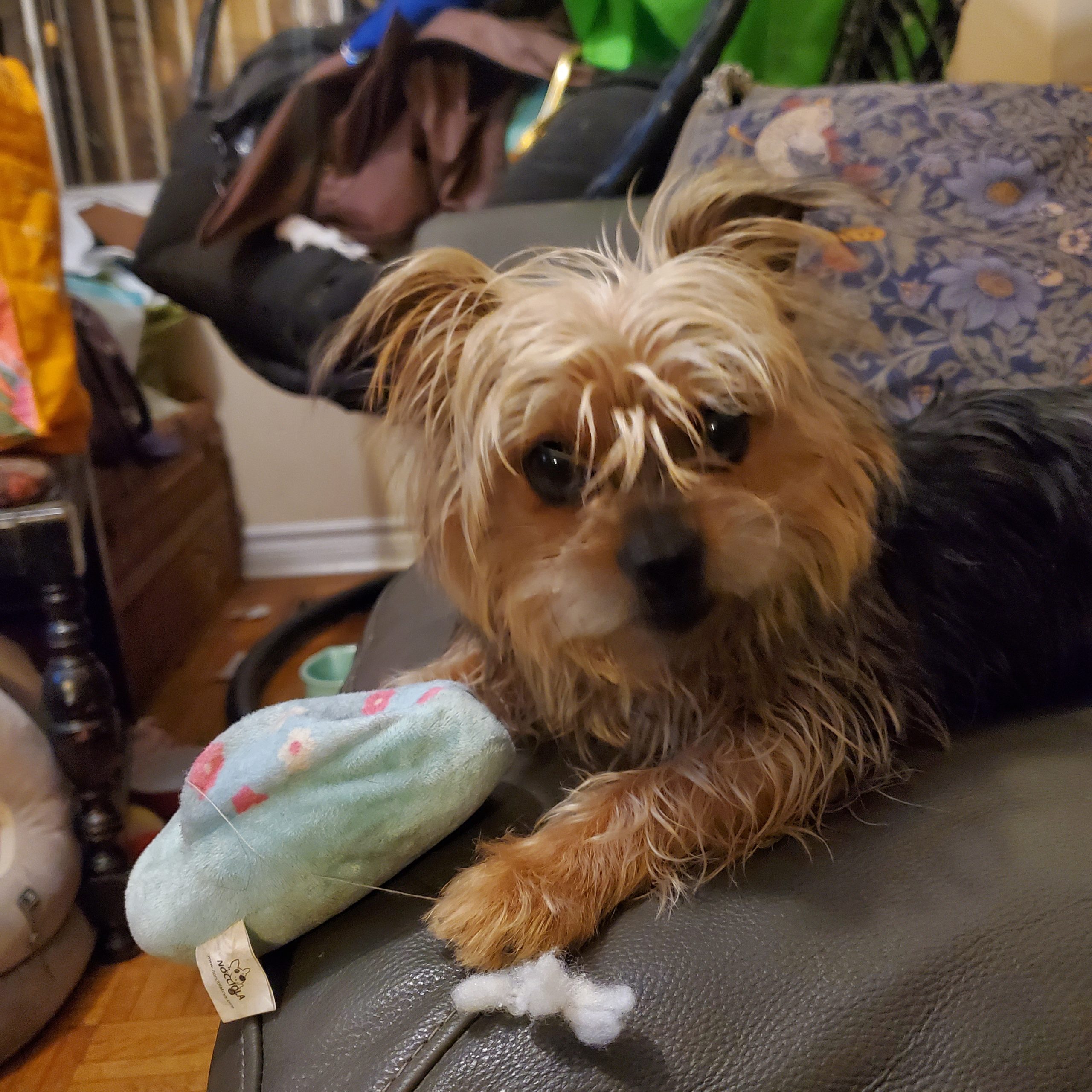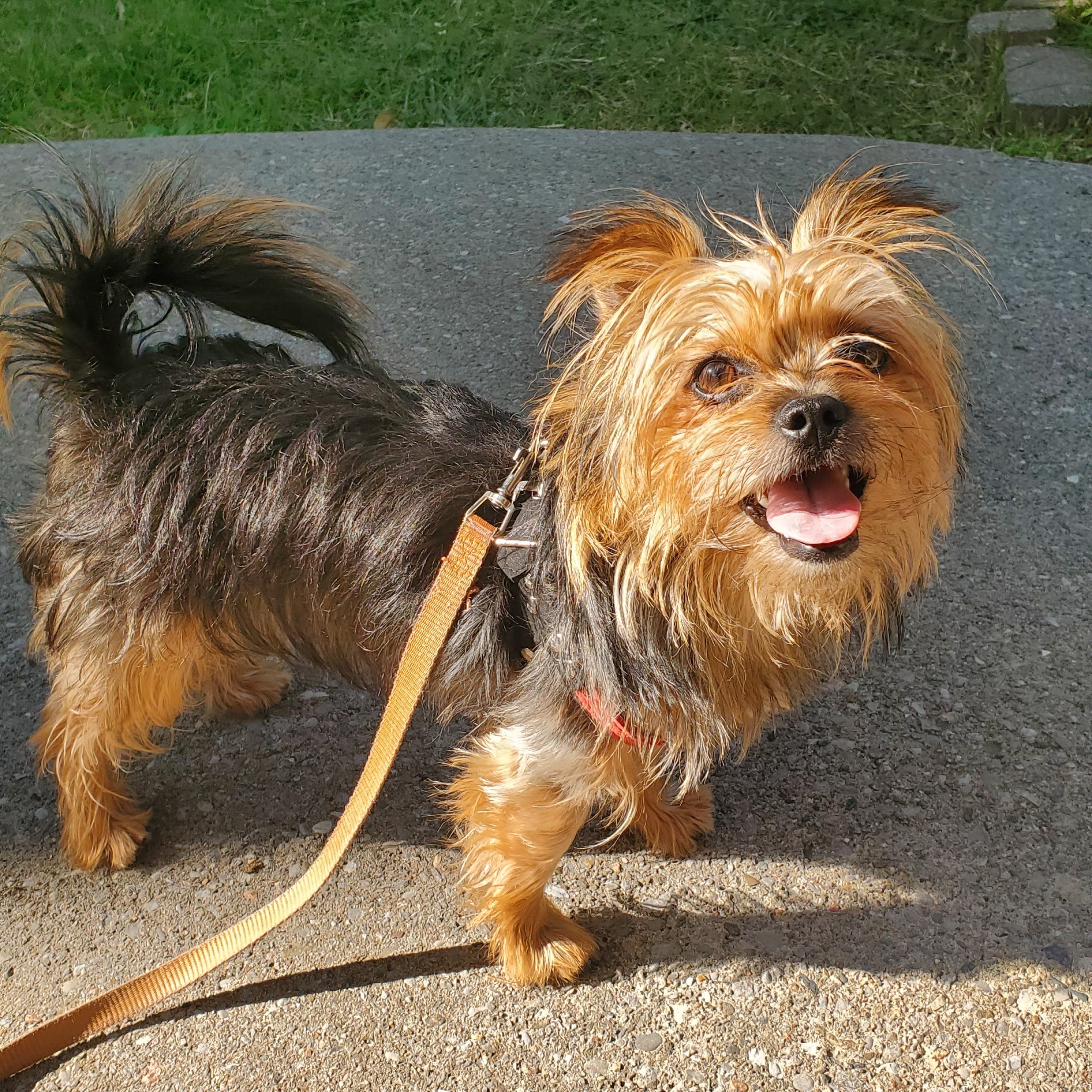 Adorable small 5 lbs Yorkie-mix small dog with teddy bear face. Sill very puppy-like even though he is two. He is sweet and playful. Social, not scared of anything. Loves people. Easy to carry around, very patient and lovable. He has a lot of energy and can run really fast.