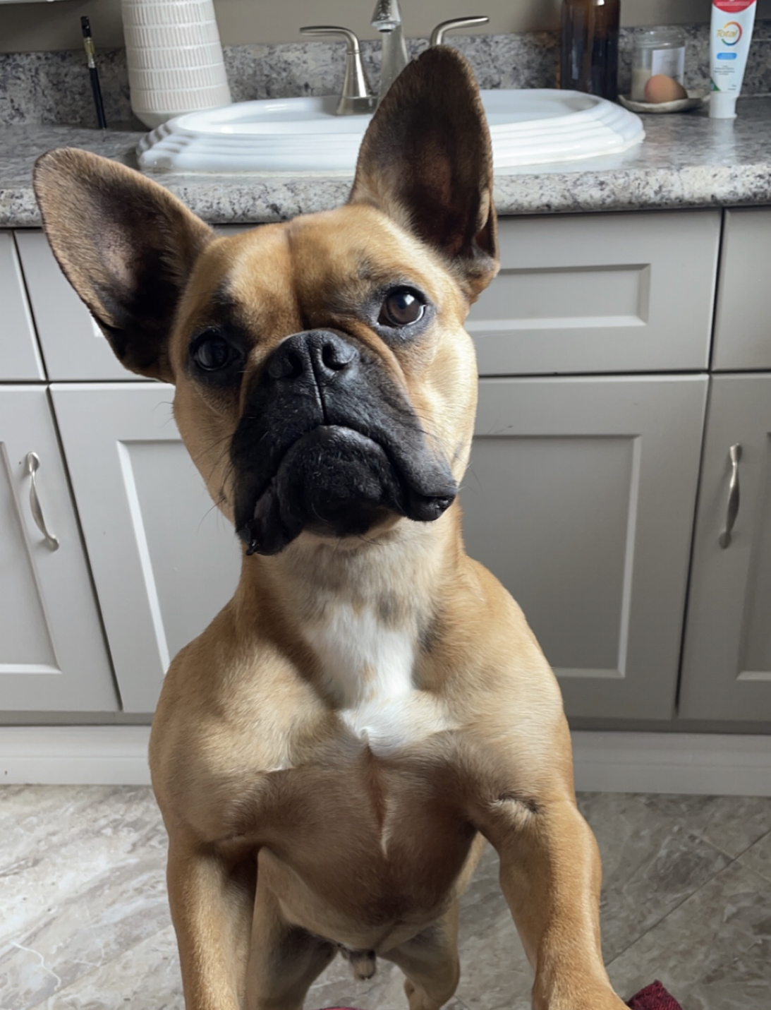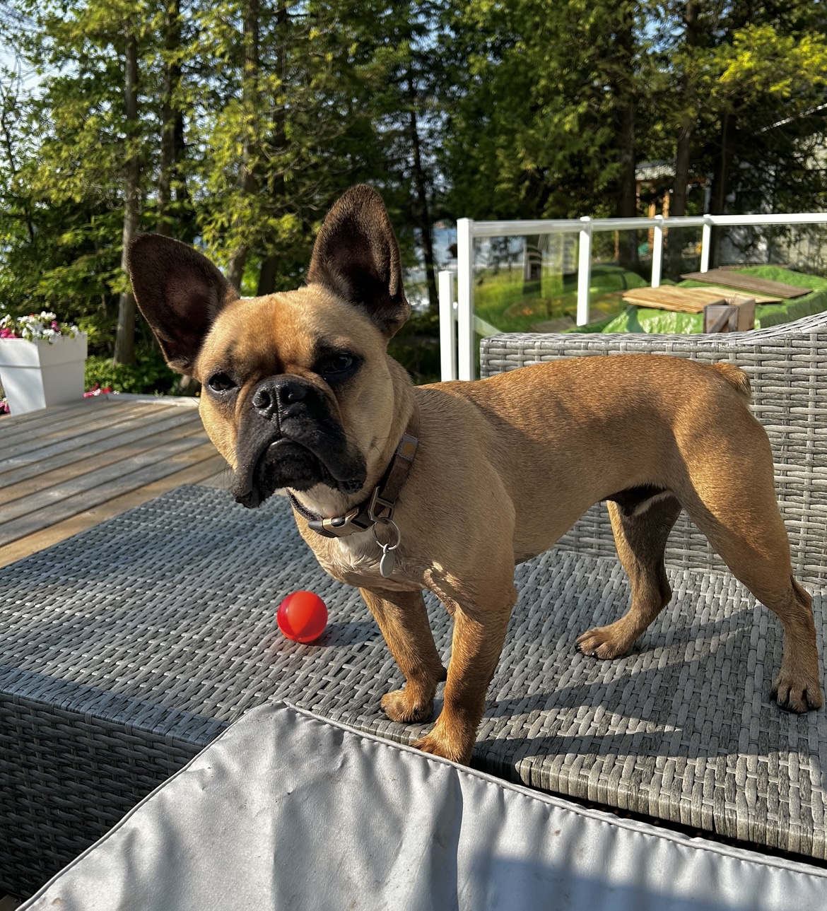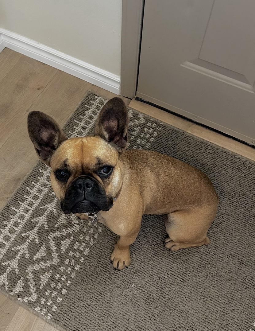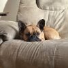 Hi my name is Franklin! I am 2 years old. I am funny, playful, and super duper cuddly. People are always telling me how handsome I am so I thought I'd try my hand at some modelling/acting. I saw a frenchie in a pet store ad and thought, "I can do that!" I'm not a typical frenchie. I'm athletic, lean and tall and I love to swim. I also have a little bit of a longer snoot and nice teeth. I LOVE sticks. If you've got one, then you've got my attention.  I am also food motivated and love beef treats. I love meeting new people and I am very friendly with other dogs. I'm a good listener and a hardworking boy. You can trust me with whatever job you have for me! Bring it on!