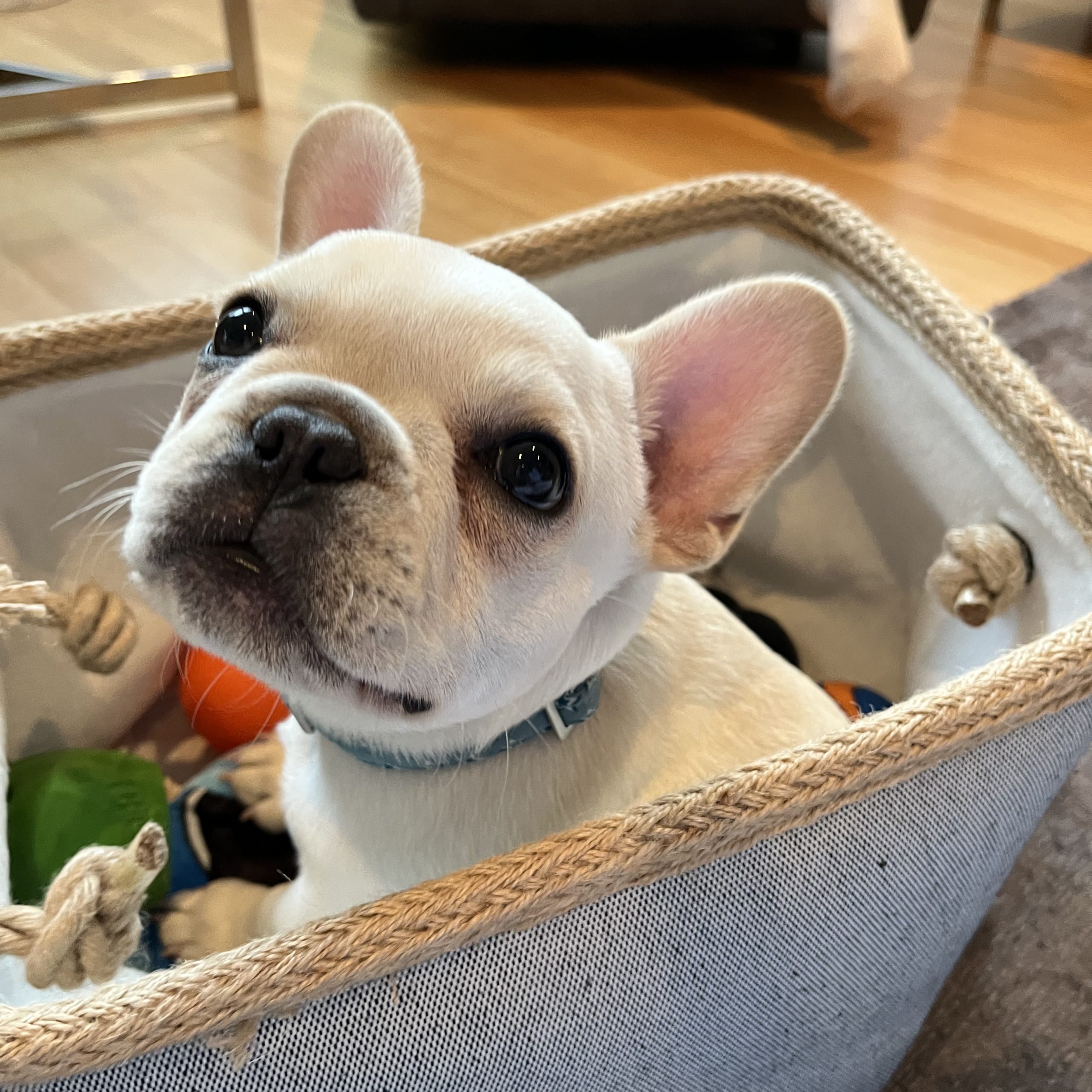 Franklin is an 8 month old French bulldog. He is very calm and loving. He really likes to be around other people and dogs. He is very affectionate and loves to be held and cuddled. His favourite thing to do is play fetch and play with his toys! Franklin is very easy going and will do just about anything for a treat!