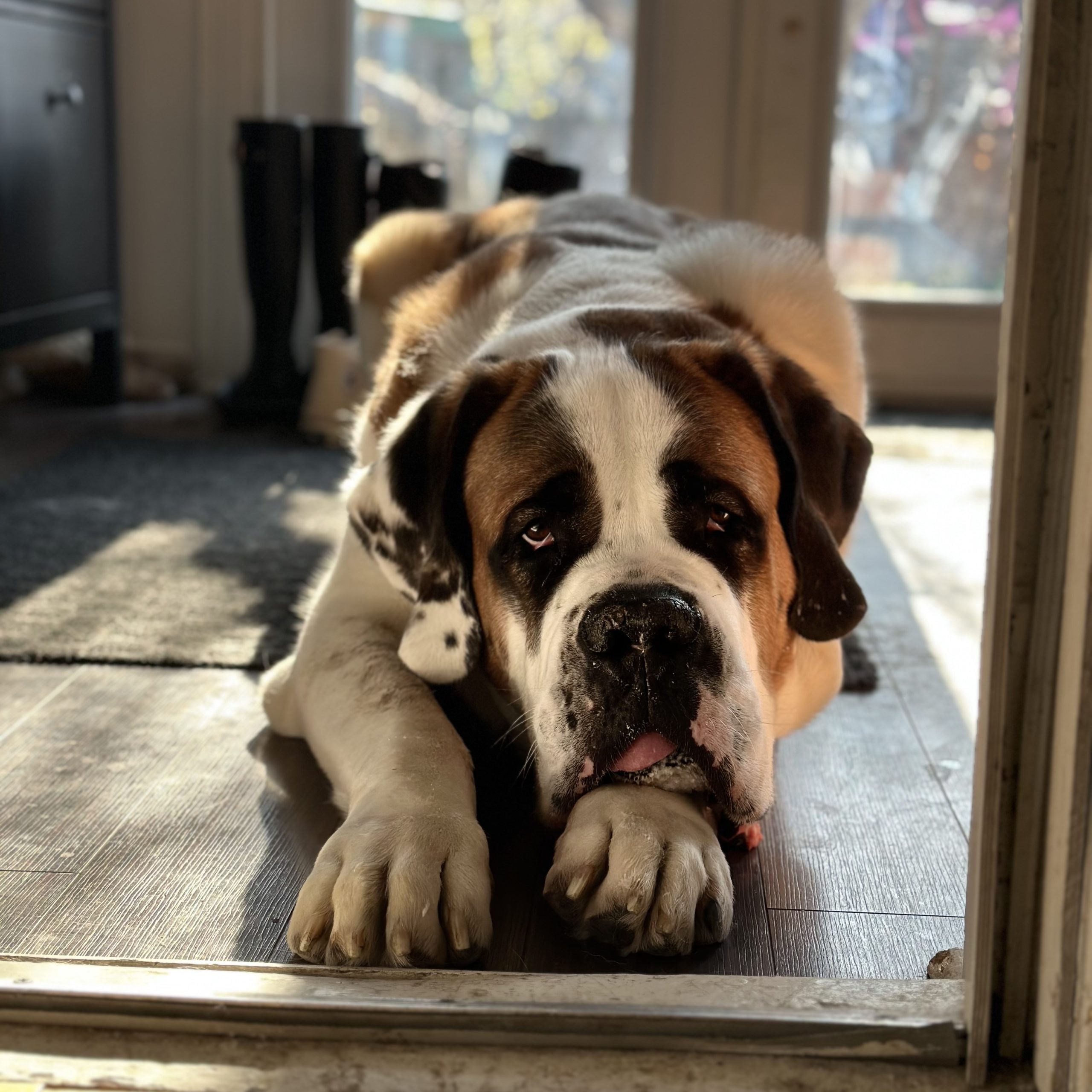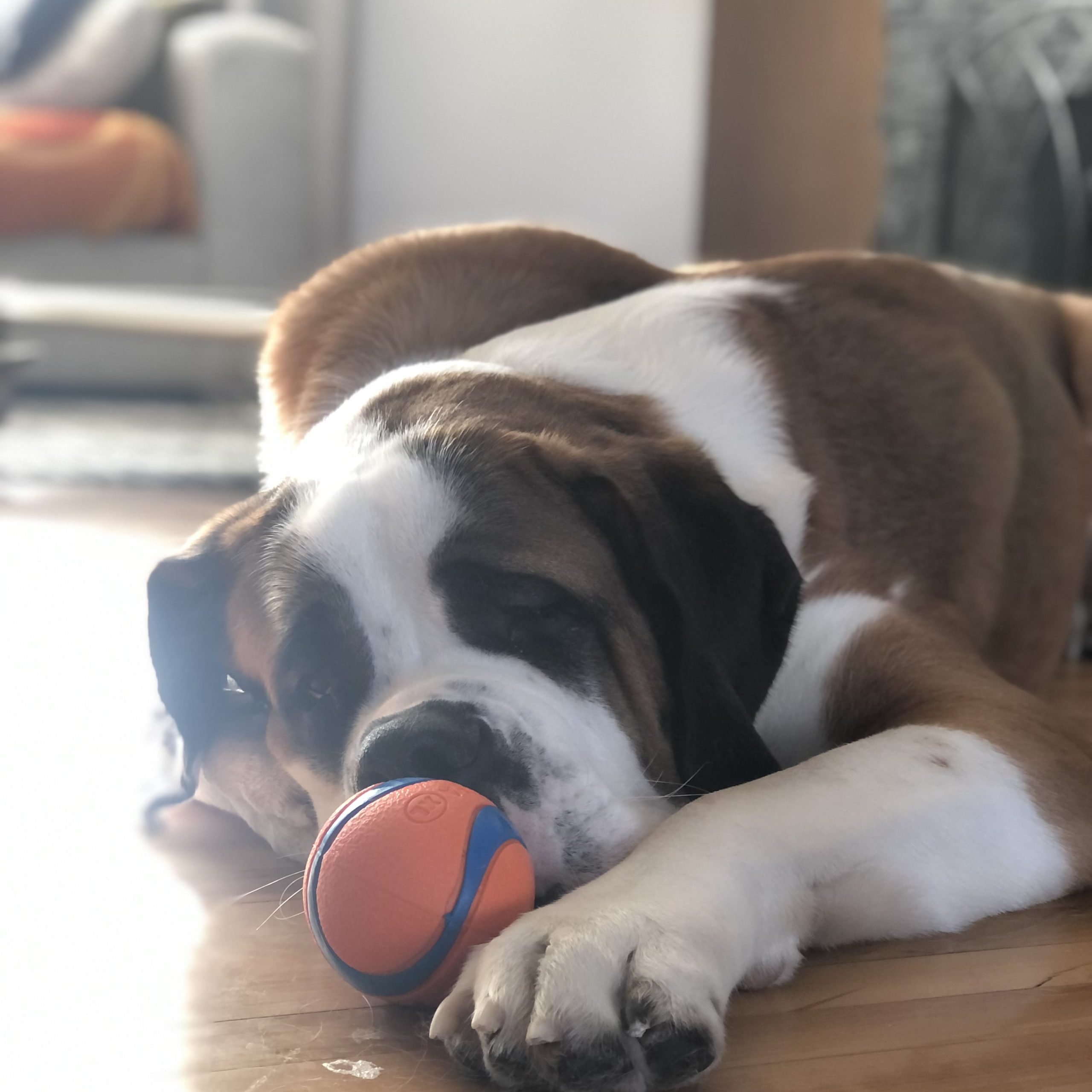 Hi, I’m Freddy! I am a GIANT DOG - the vet told me I’m the biggest of them all. I am well-mannered and low energy. I’m perfectly happy sitting or laying around looking cute. I love food, so I am pretty good at learning new things if there is a fair trade. I am very good at my “look” command, and often follow any camera pointed at me. I am very agreeable, so you can dress me up and show me off and easily. I LOVE meeting new people and getting cuddles and scratches. I am also kid friendly!