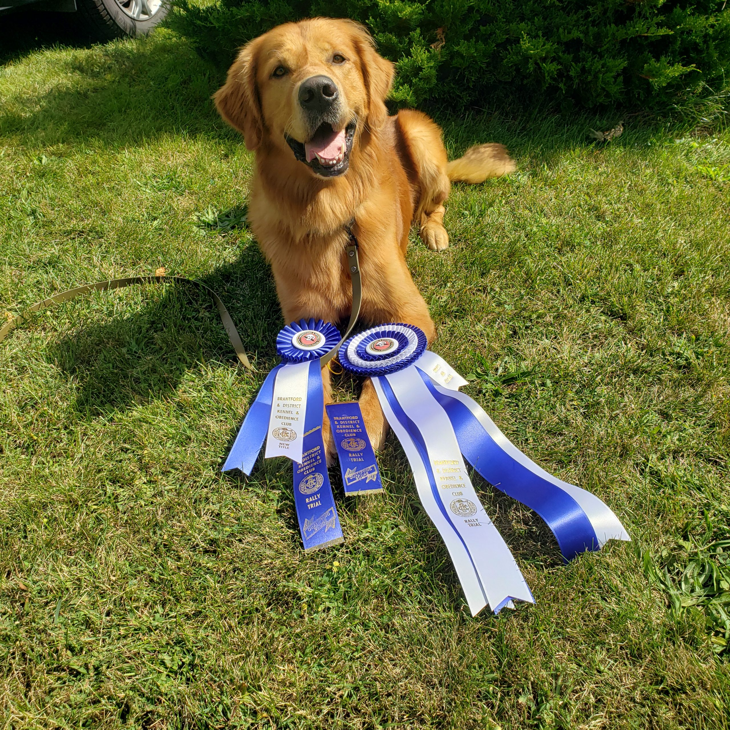 His nickname is Airbud. He loves water, swimming, and traveling and he is titled in many sports including his champion trick dog title, as well his highest title in working obedience, rally and IGP obedience.