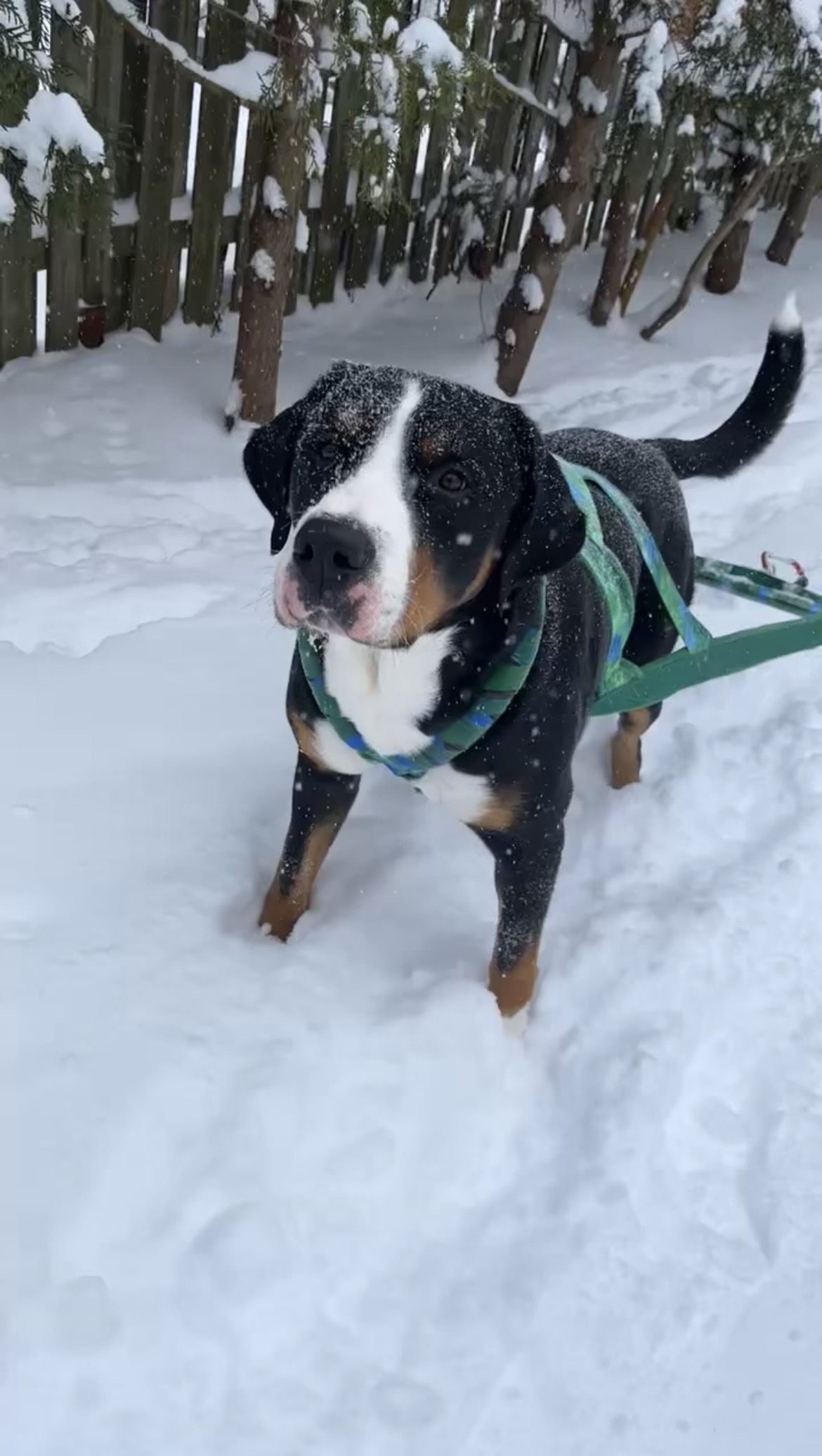 I’m a Greater Swiss Mountain Dog. I have also mastered, sit, stay, lay down, shake paw/wave, and under/middle. I’m a large lad with a big happy smile who loves to work for treats and pets. Did I mention how distinguished I look when I do a sits?