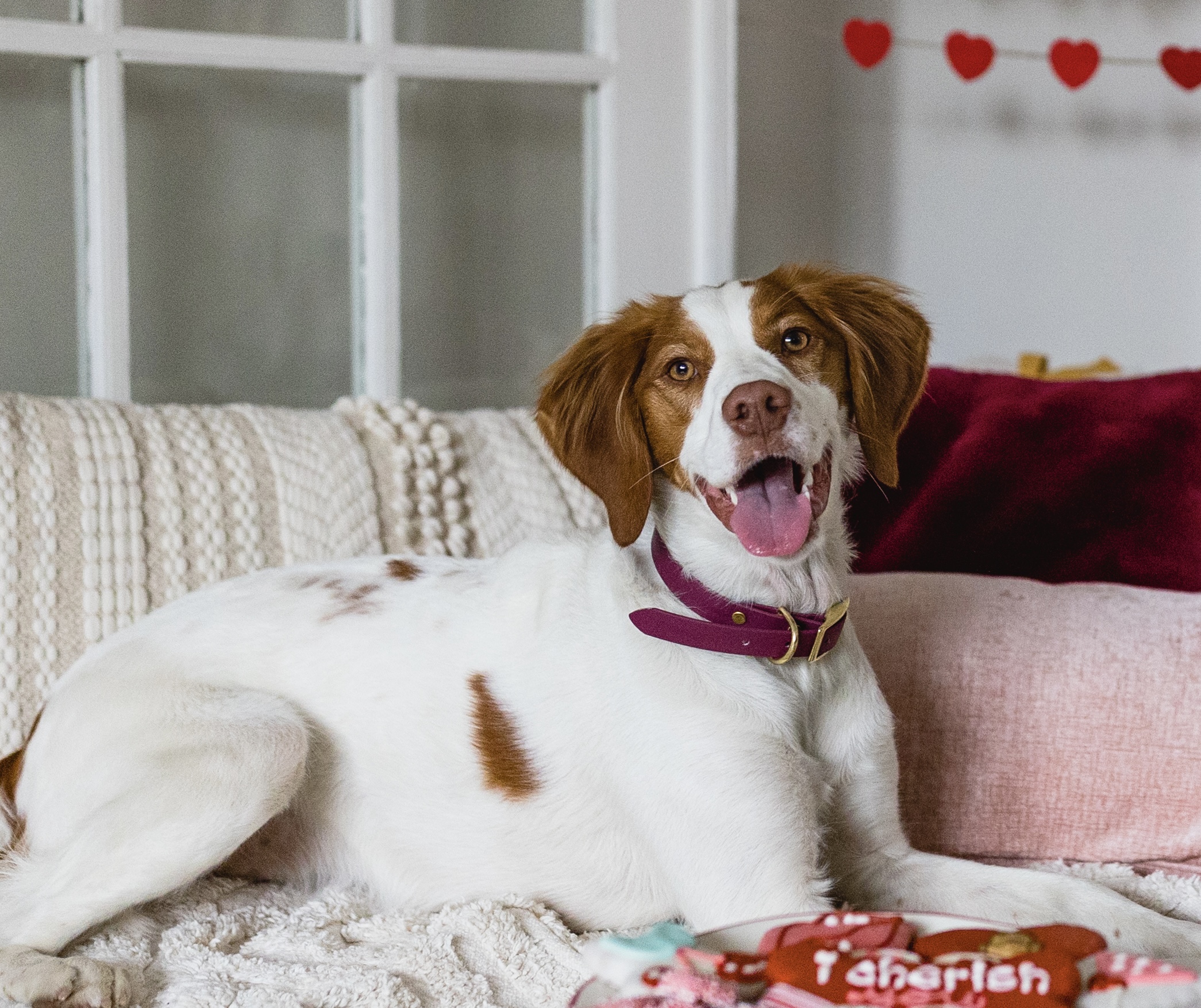 High energy, friendly, lovable, silly, beautiful, cute, loves to swim, loves all bunnies, squirrels and birds, loves to run, athletic, sensitive, affectionate, good at frisbee and giving puppy eyes.