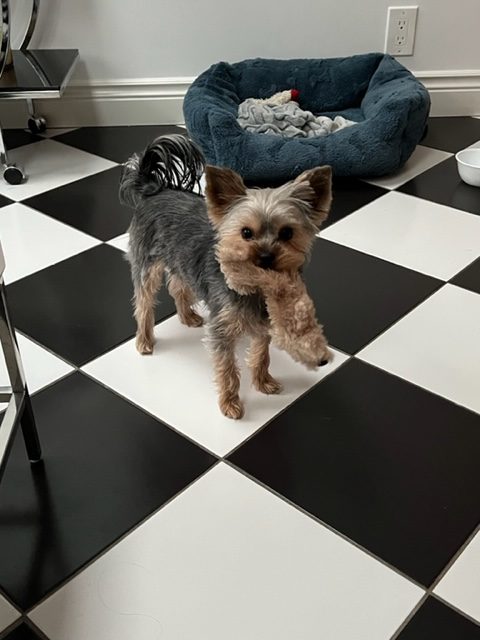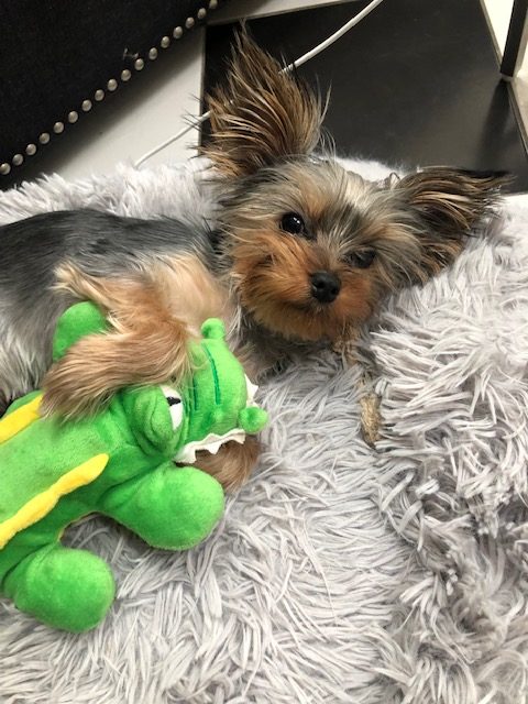 Henessy is a 1 year old Yorkshire Terrier. He weight about 6.5 pounds at full size. He is highly intelligent, friendly and is a very quick learner. He is very handsome (if I do say so myself) with beautiful steel blue colouring and huge pointy ears. Hennessy is very playful and motivated by both treats and toys. He is comfortable around new people and other animals and has tons of personality which is why I believe he is a very comfortable and a great addition to your talent roster.