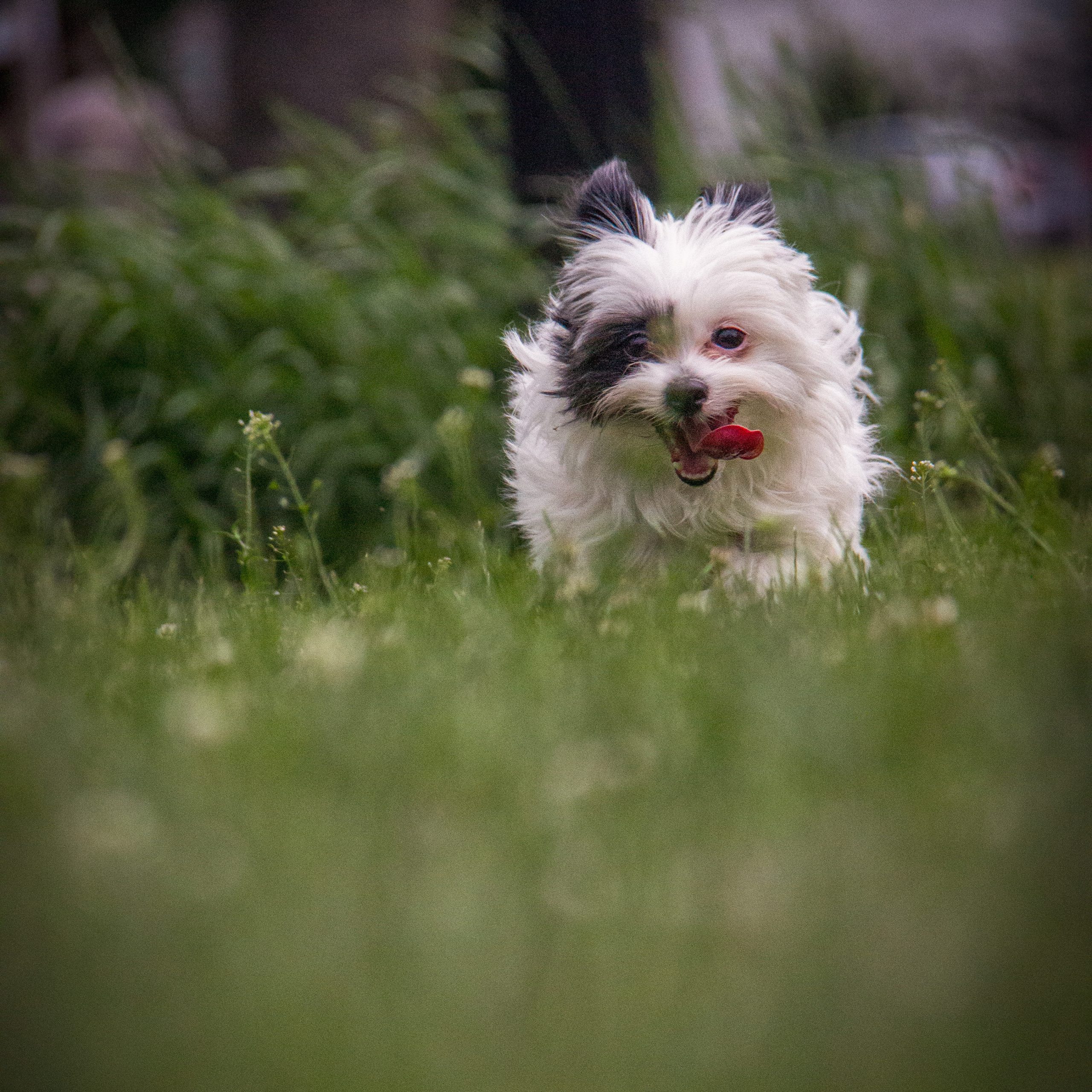 Hiccup is a Maltese/Shih Tzu/Pomeranian mix and is 2 and a half years old. Hiccup is a girl who knows what she wants, and she wants the ball. Always. She will make sure you are aware of her needs for ball by screaming/singing until you are trained to continue throwing ball forever.