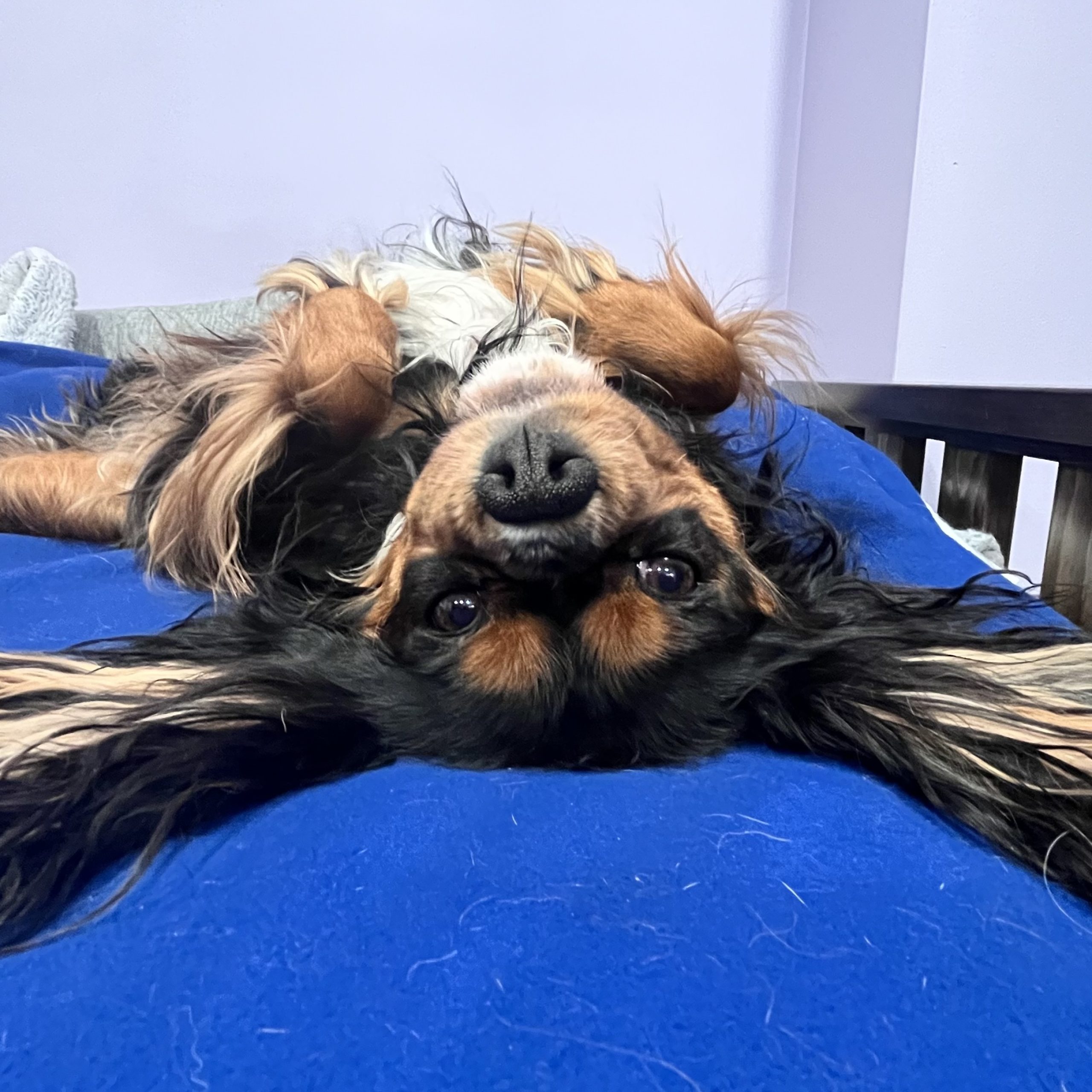 Huxley is lower energy but loves people! His bum can’t hid his love for people whether it’s a new person or his family members. He is trusting and loving but never overwhelming. He loves his treats and especially a good salad. He’s patient to wait when told even as he sits and drools over his treat/food.