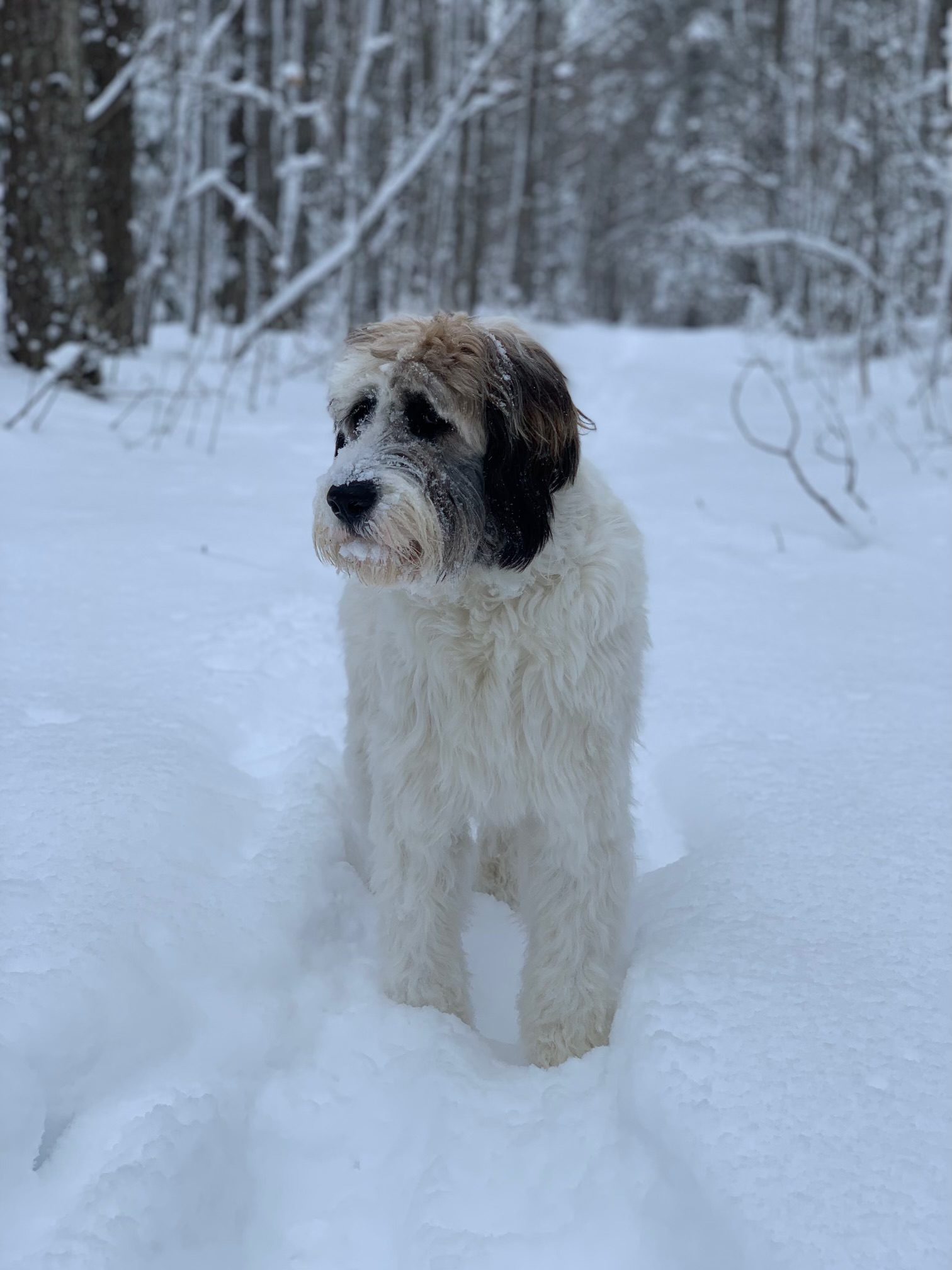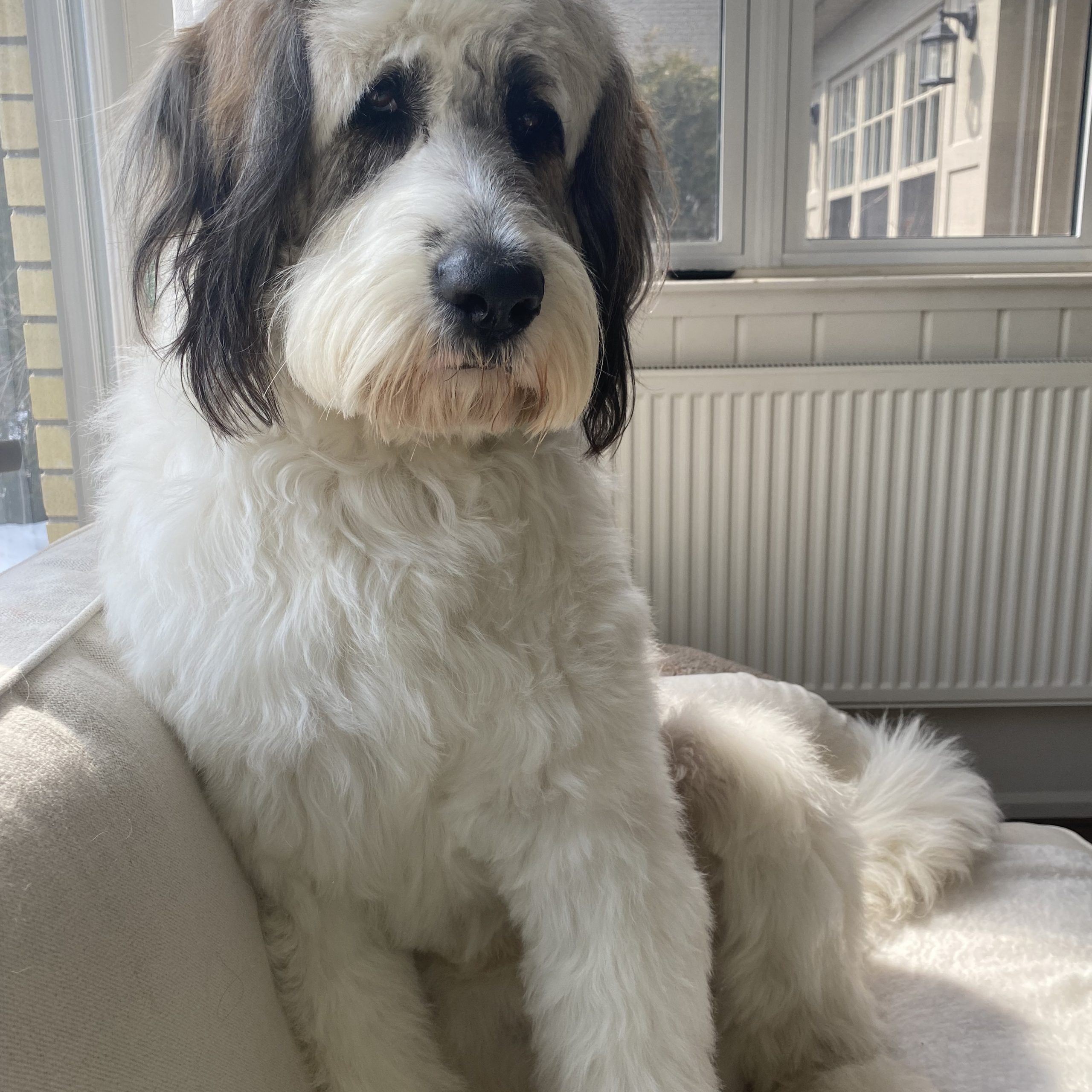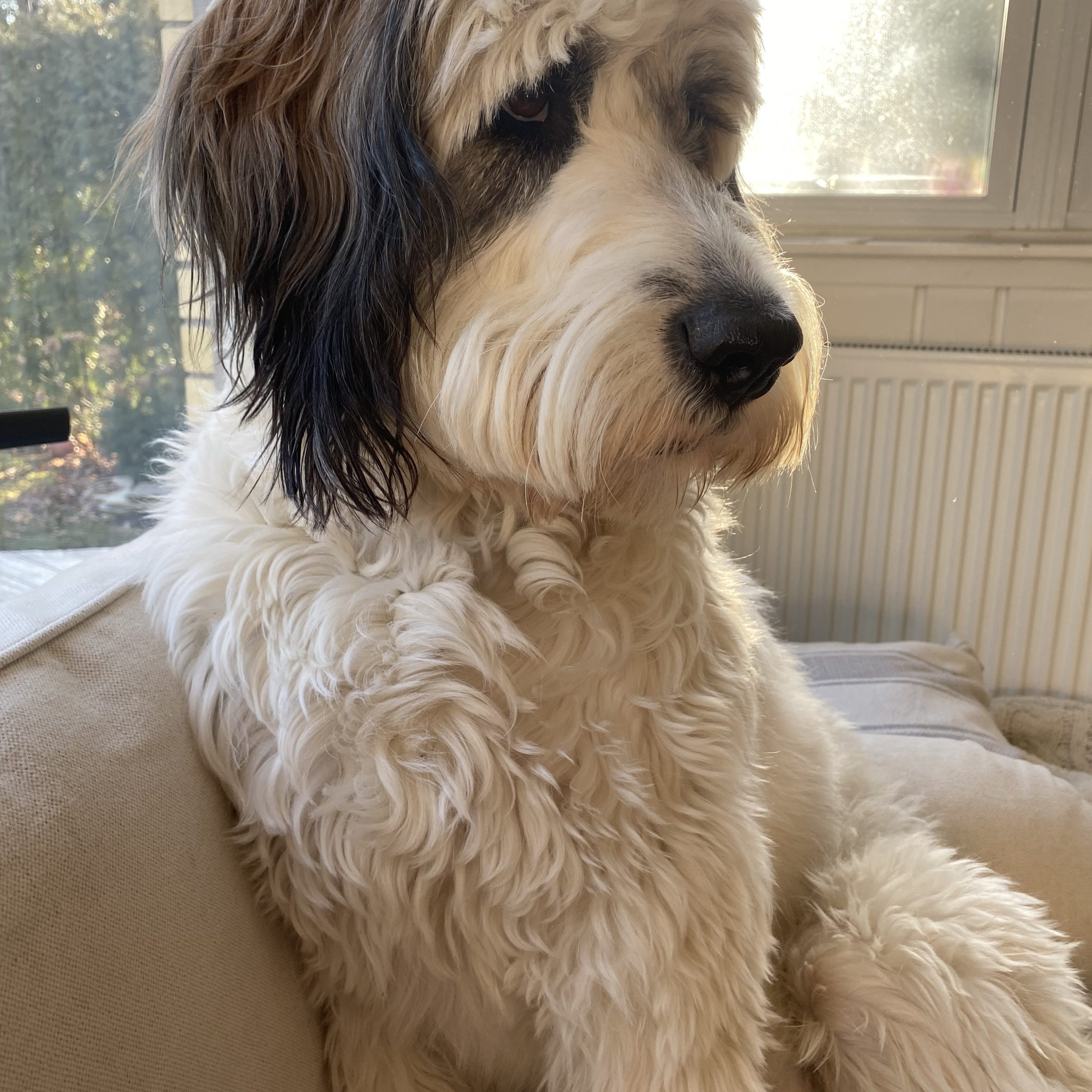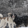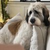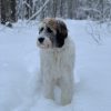 Izzy is a St Bernard/Poodle a designer dog in every sense without the snobbery.  There isn't  a day that goes by that I’m not stopped on the street, she loves up everybody and leaves people smiling. She should be a therapy dog.  She’s amazing with adults and children and gets along with all dogs . She’s still very puppy like, very playful and exuberant .  She loves the outdoors snow and water. She could be an added member to the muppets .