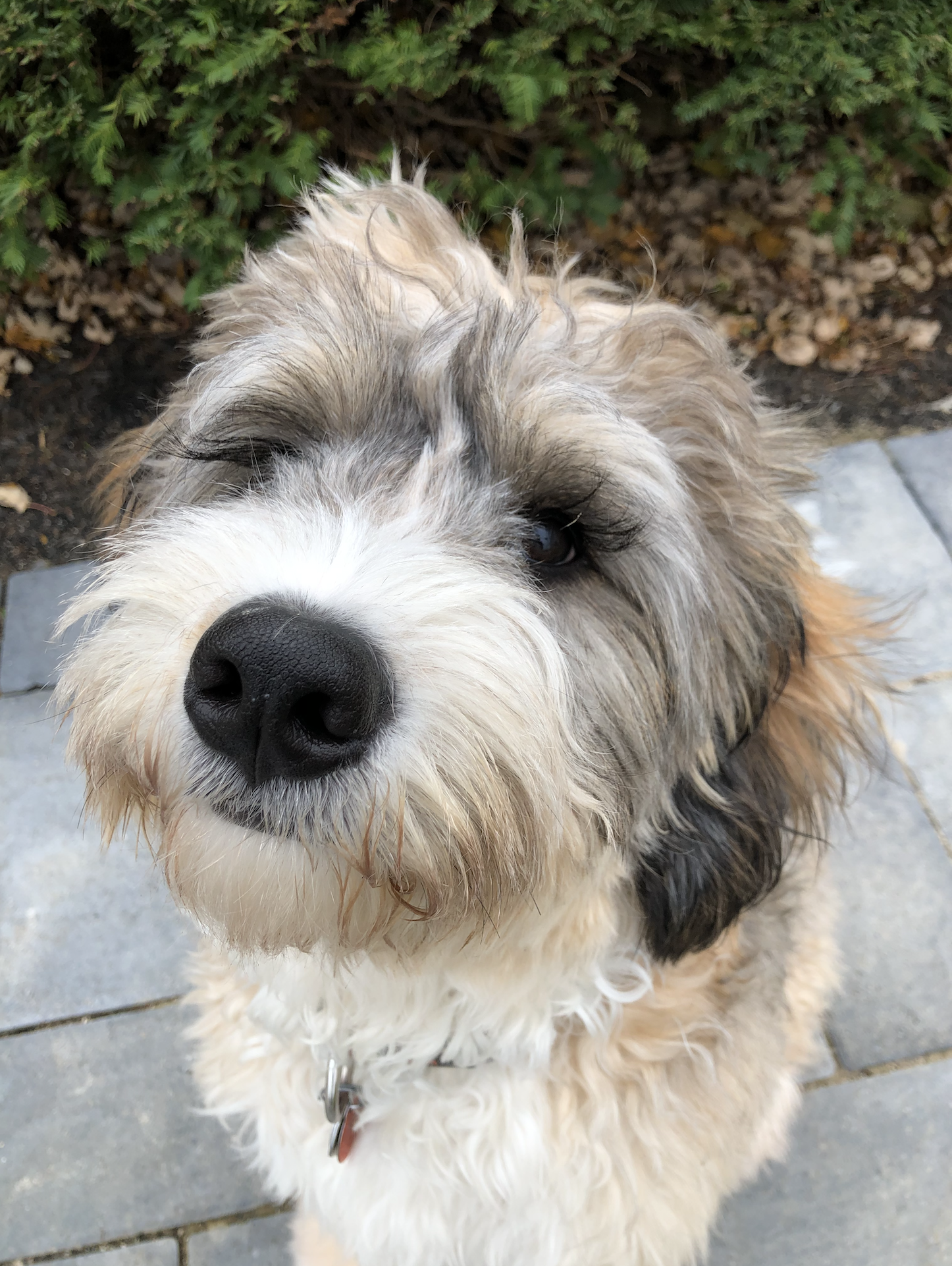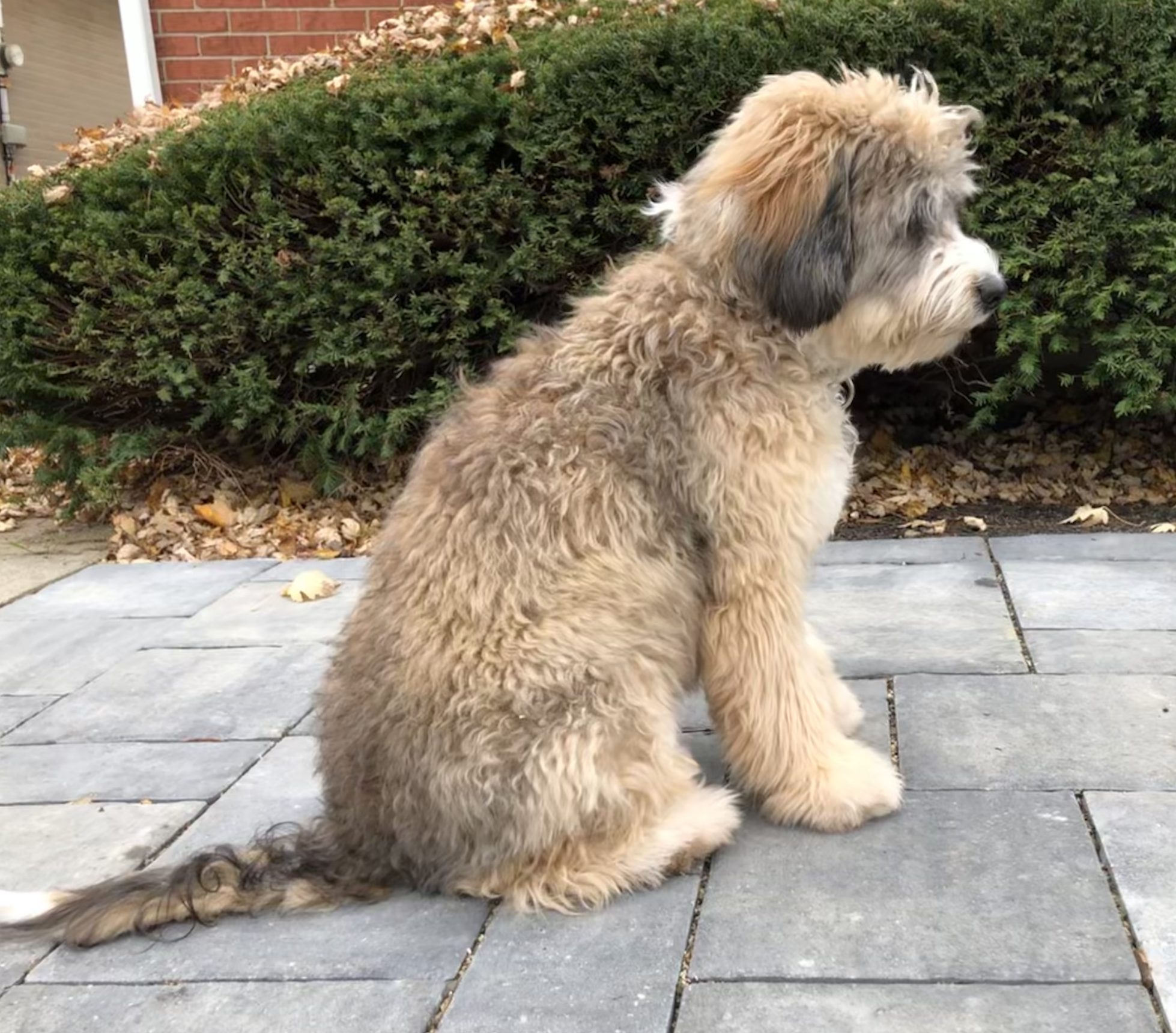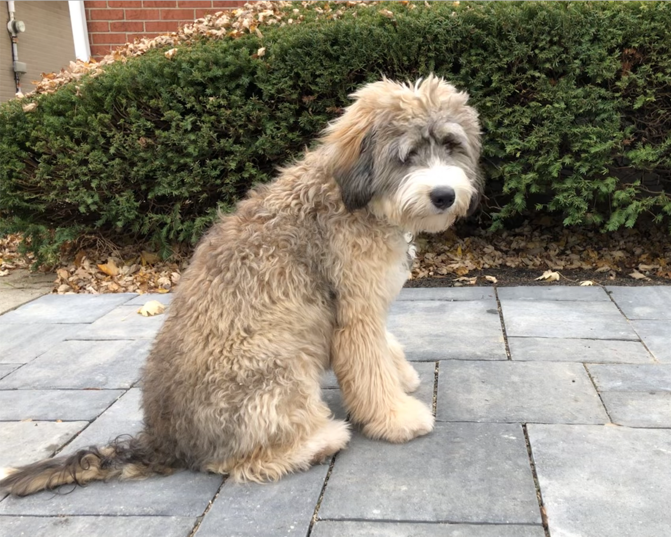 Jed (named after a West Wing character, not The Beverly Hillbillies) is a miniature Bernadoodle.  Mom is a Bernese Mountain dog and Dad is a miniature Apricot Poodle.  Born in May 2021.
