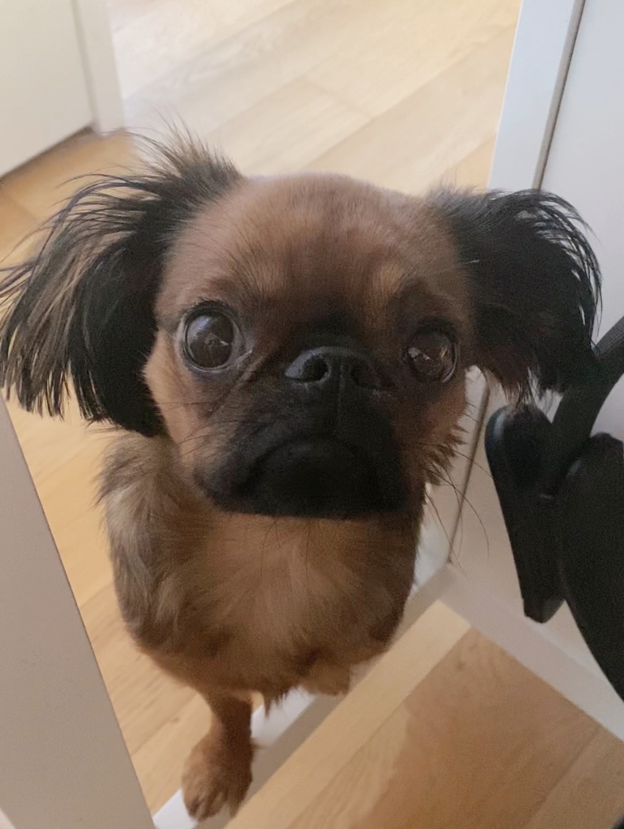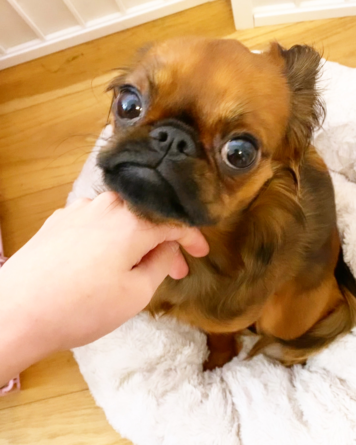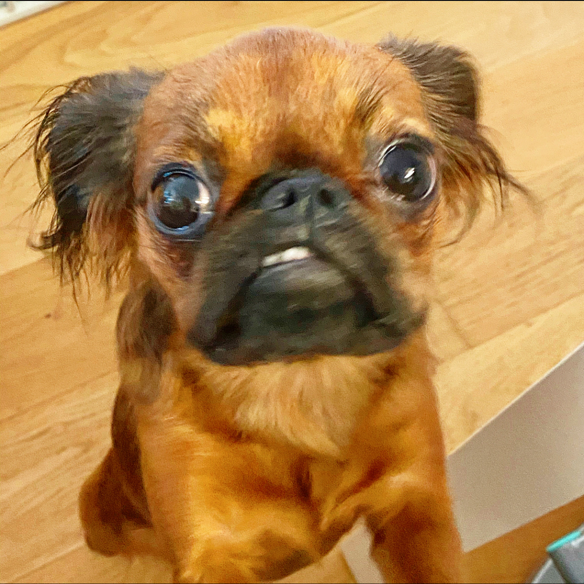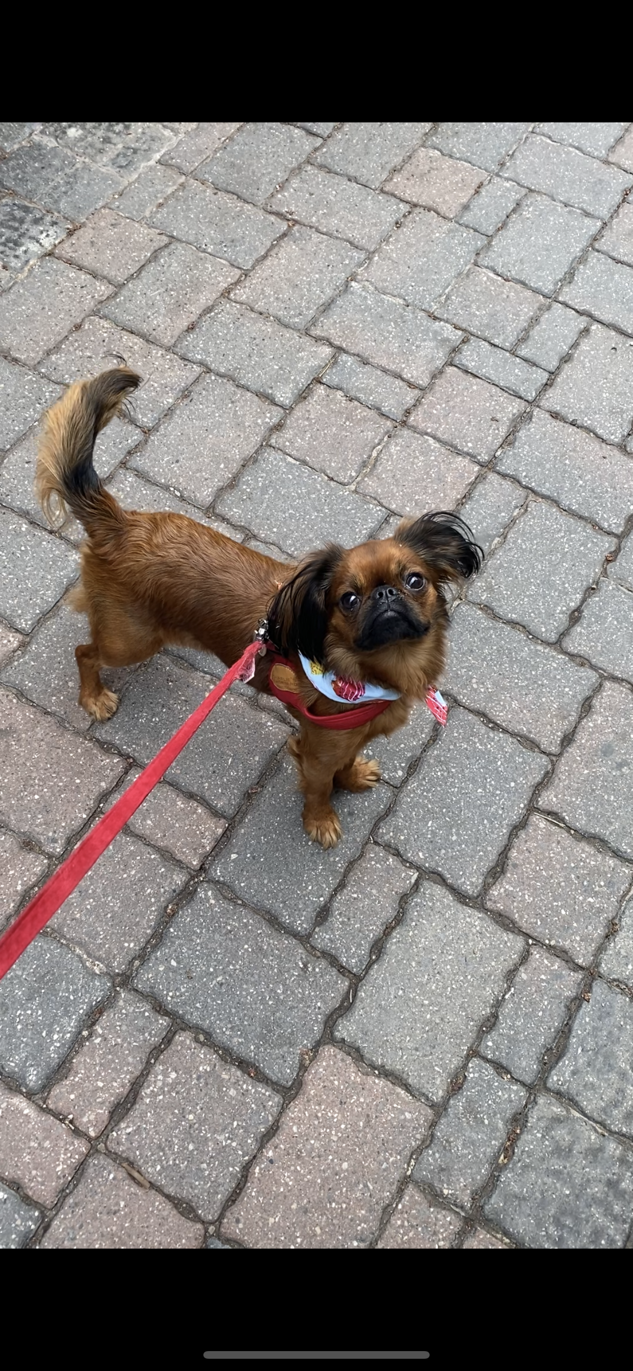 Spaniel coated Brussels Griffon with fluffy ears! Super friendly and likes to snuggle. High energy all day everyday!