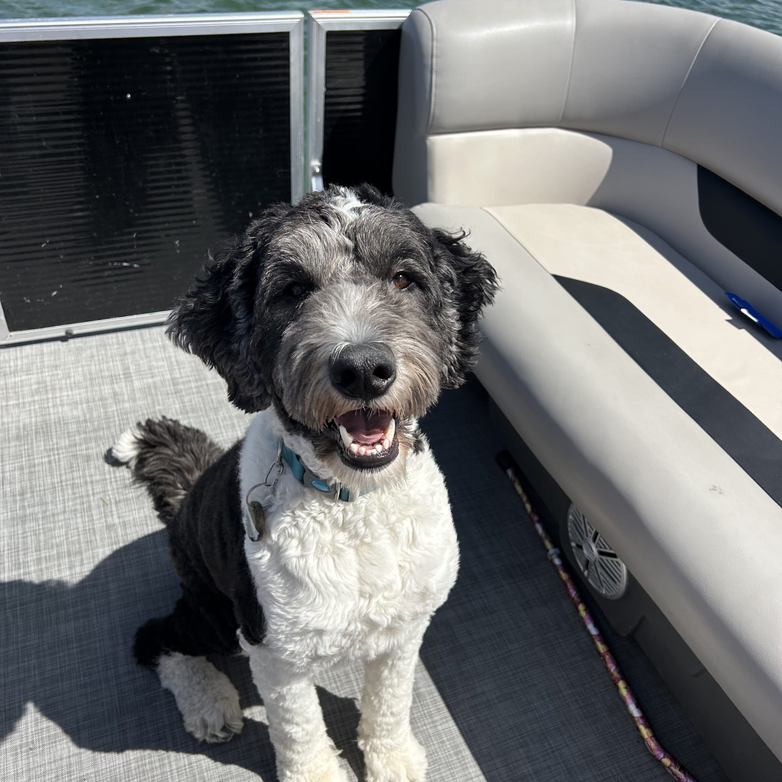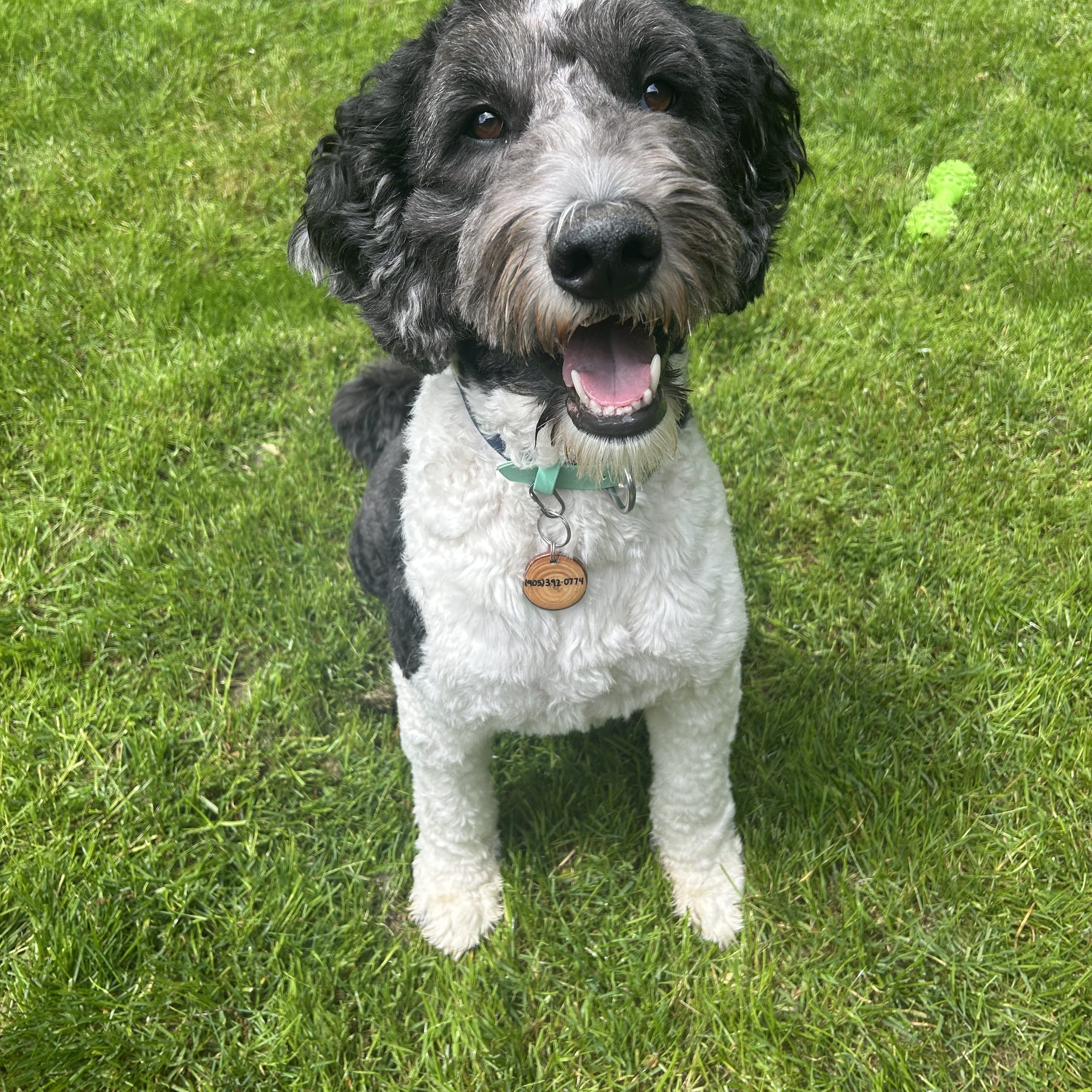 Jersey is a sweet 2 year old male sheepadoodle who lights up the room! He is full of energy and is always ready for an adventure! Whether it’s splashing in the water, going for a run, a hike, a car drive or just playing around in the yard, he brings joy and excitement everywhere he goes. His goofy, silly nature makes him endlessly entertaining. He is also quite affectionate and enjoys cuddling! Jersey is a sociable dog as he is friendly with both people and other dogs. His happy, loyal spirit and adventurous personality truly make him one of a kind and my very best friend.