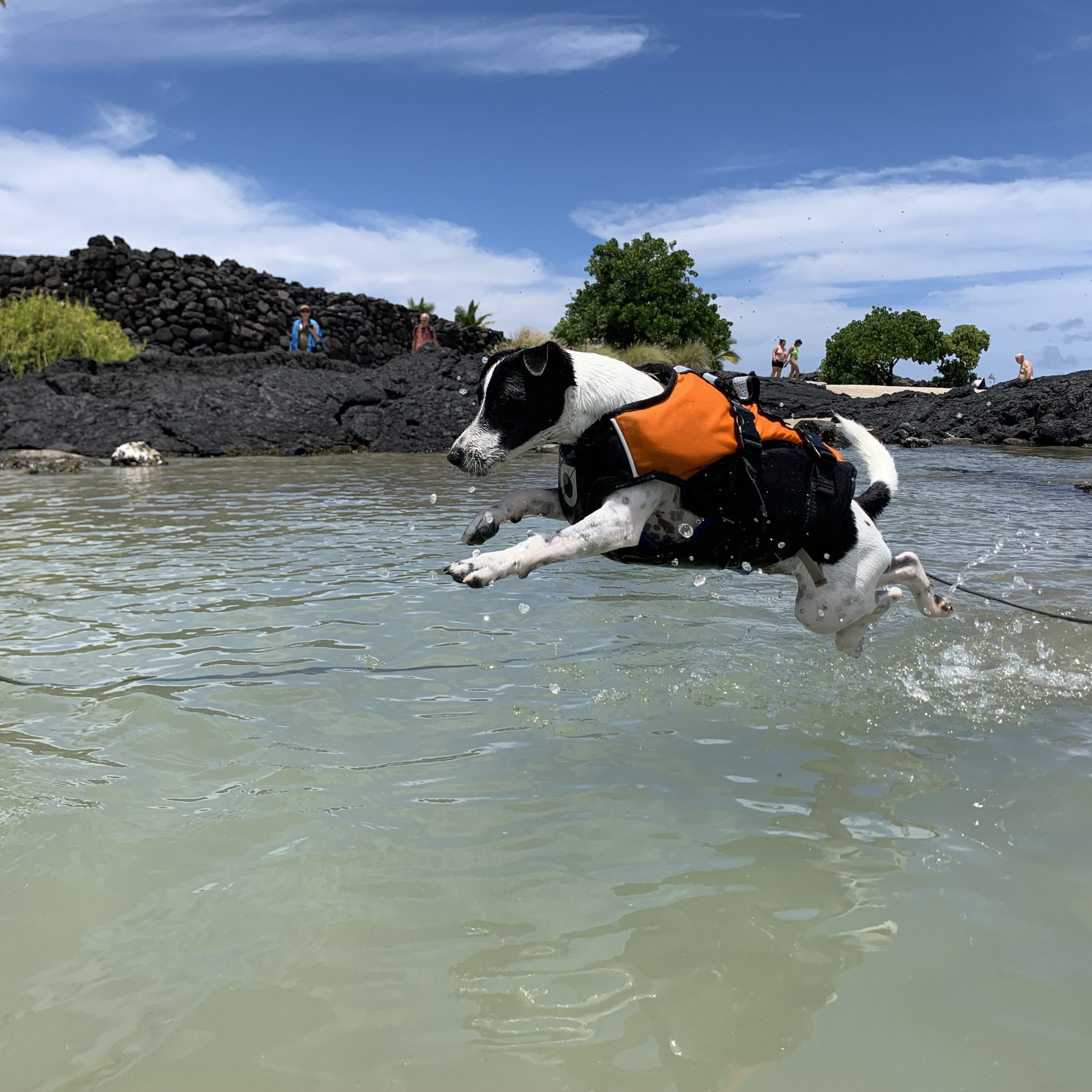 In addition to being adorably photogenic, Joely is a sharply intelligent high energy athlete. If there is a trick that she hasn't already learned, she is capable of learning new things very quickly. Her all-time favorite activity is swimming and jumping into water. Joely is also highly food motivated and able to be still for clothing modeling photographs.
