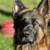 Kevin is a long haired GSD. He is a gentle soul who loves humans and having human friends. He is mild mannered, yet a bit saucy at times, and loves to sit and pose as he is well aware of his good looks! He is an amazing boy who charms all who meet him and always leaves a lasting impression. He has great energy, is fun to spend time with, and is always up for an outing, road trip, hike, swim, bike ride, or camping with a hang by the campfire. He has a great sense of humour and is best described as a ‘Card’. He is devoted to pleasing his humans and is a genuinely great companion. At home Kevin loves to work hard in the bush with his human mom and dad, helping to pull out logs and debris. Kevin is equally happy when given a job or spending time relaxing. He has terrific endurance for a full day of adventure and thrives when given new tasks to learn. Kevin is confident and brave walking into the unknown, and loves a trip to the Vet! His favourite snacks are tuna and salmon, ham, vanilla ice cream, chips & dip, and of course, cheese.