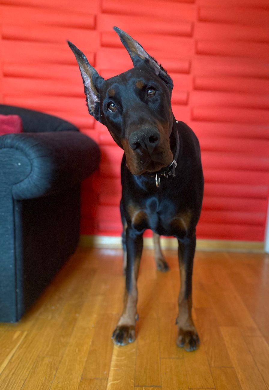 Klaus is a goofy, friendly, European Doberman that enjoys dogs' and kids' company. Loves running and playing with soccer balls.