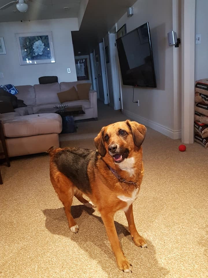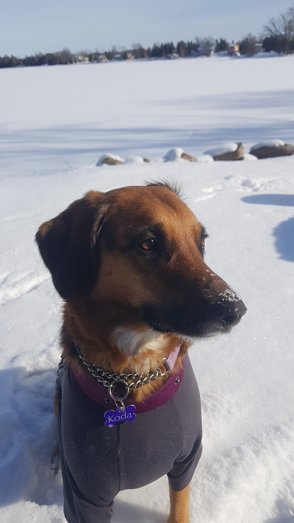 Koda is a salt and pepper lady who LOVES people. She will do anything for attention, and loves everyone especially if they give her cuddles! It's almost impossible to get her out of the water and she spends most of her time in the summer paddling around or dock diving. She loves showing off at her agility classes and learns new tricks and skills quickly. Koda is kid and dog friendly and running around with new friends is what she lives for. Koda is also big cuddle bug who is more than happy to relax on the couch after agility or a hike. She loves learning and is a huge people pleaser! Koda is very comfortable wearing sweaters and shirts, boots...not so much!