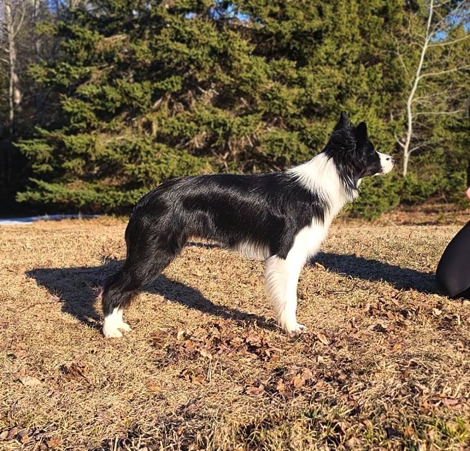 Kylo is a female bordercollie who has a nice mix of seriousness, wanting to crawl into my skin and goofy. She always finds new ways to make me laugh while also staring into my soul or focusing on her job. She loves dock diving, agility, rally obedience, disc, scent work and trick training. kylo can work around both people and animals, Kylo loves toys and food. She is smart and keen to learn new things.