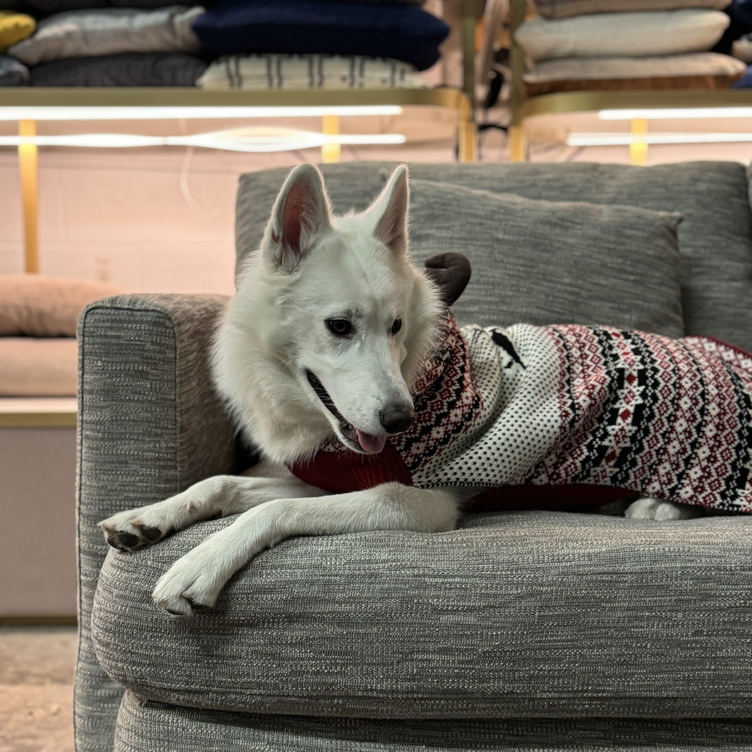 Hi, my name is Leyla. I’m Siberian Husky/ Samoyed / Alaskan Malamute Mix. People tell me I look like a white wolf or arctic fox. I’m a really smart puppy as I can sit, high five, give paw, sit pretty, down , spin, stay and many other tricks. I learn really fast and I’m snack motivated especially beef and salmon snacks. I also loveee stuffed toys. I’m really friendly with other dogs and cats. I love to travel and used to traveling by car. Love to meet new people !