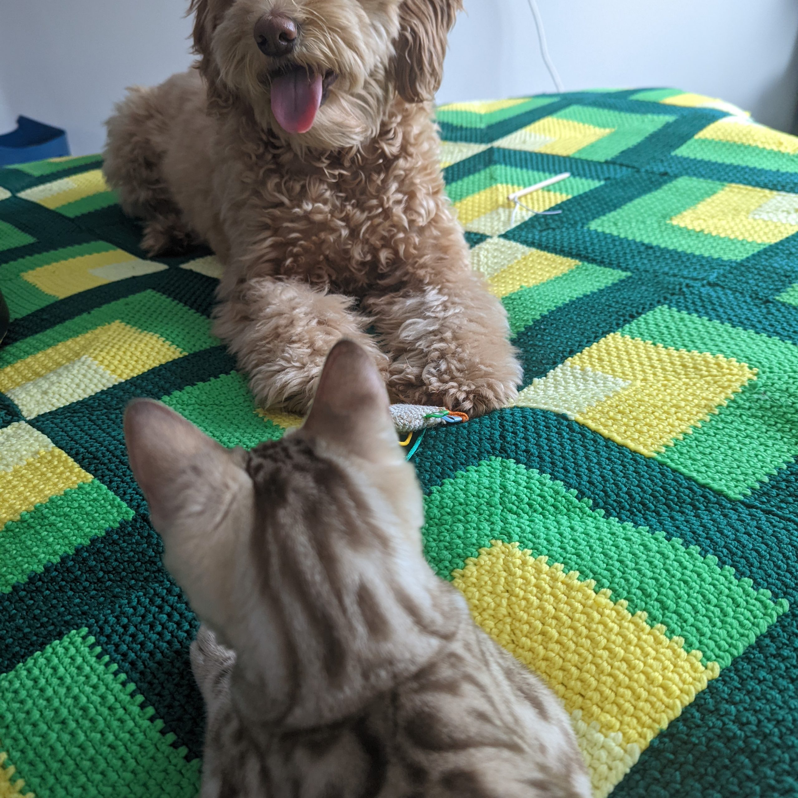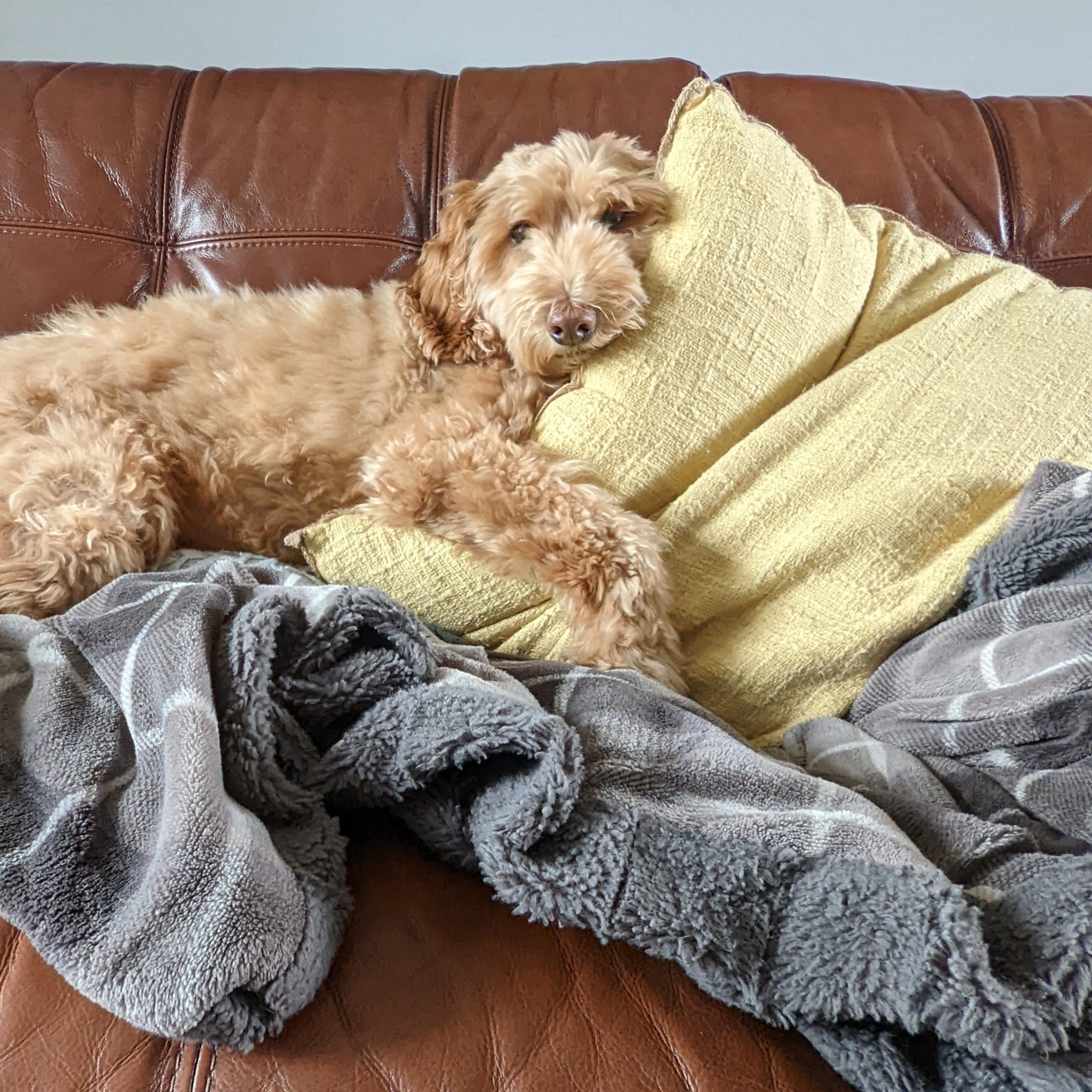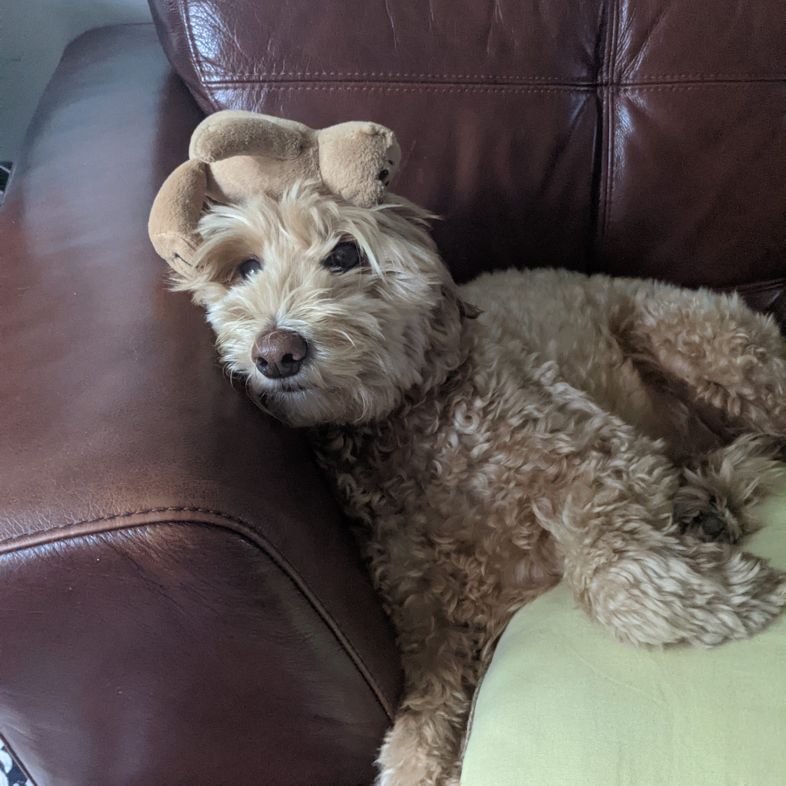 Luna lives with a cat, rabbit and 3 boys. She knows a lot of tricks. She is good with most animals.
