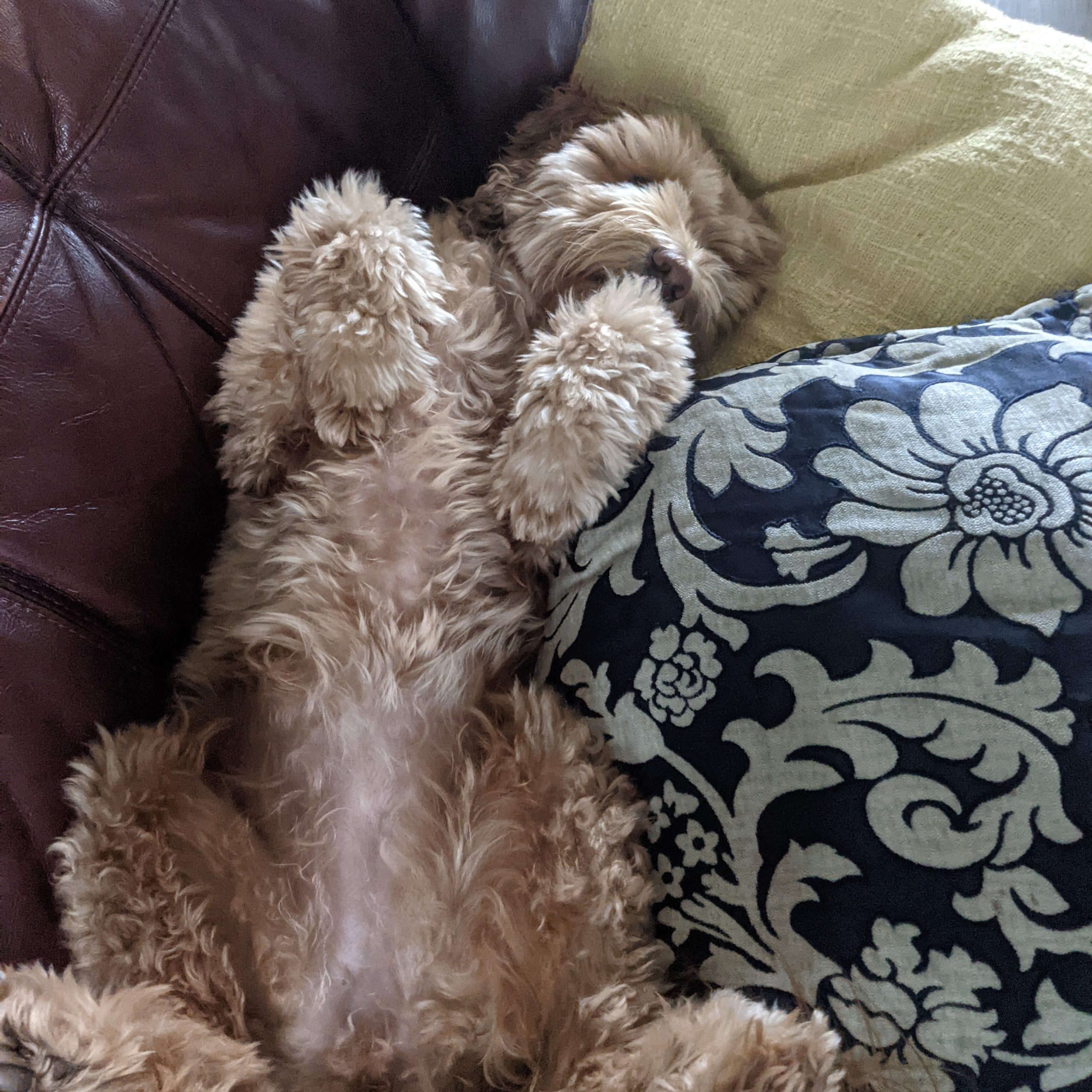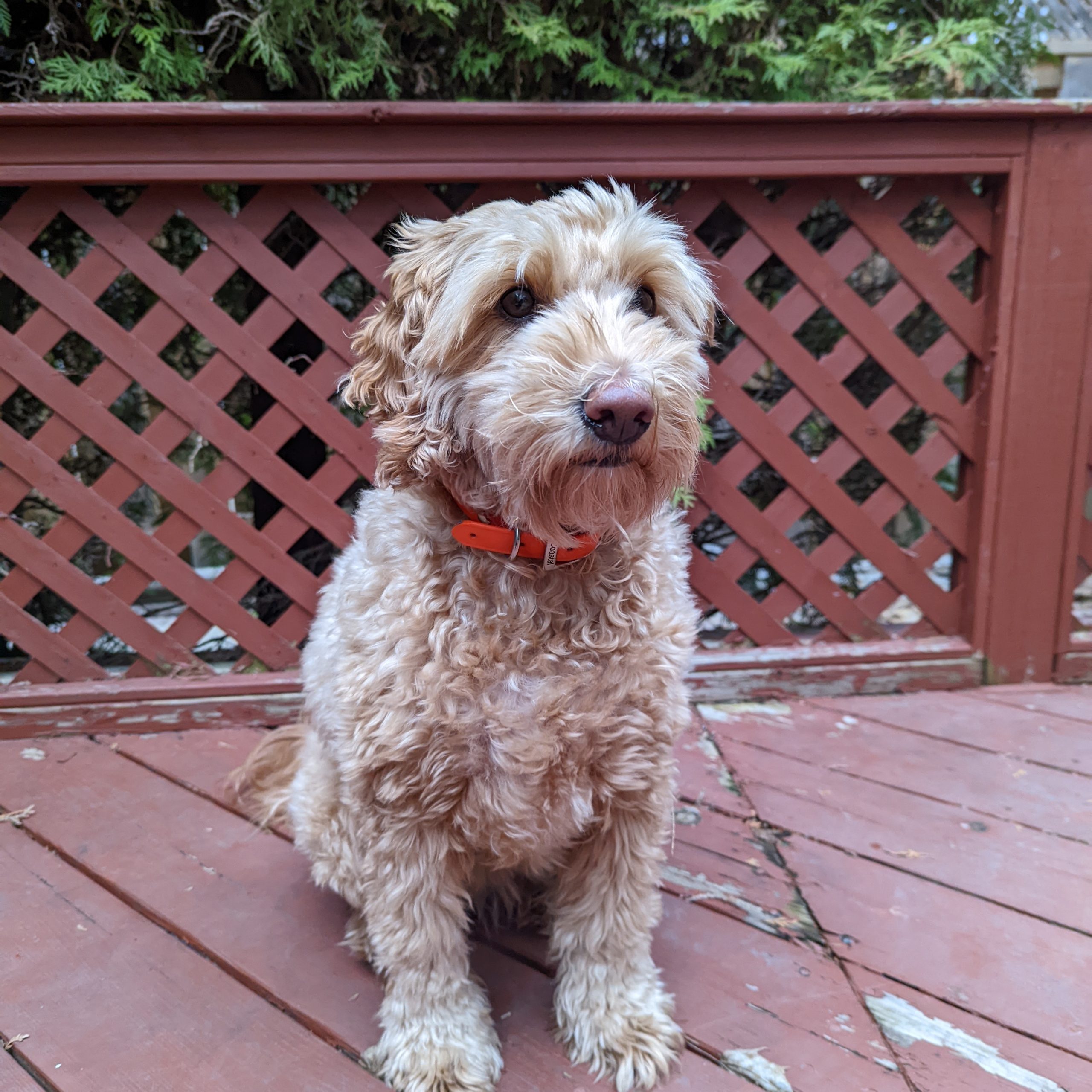 She is pretty smart and knows how to give high five, double high five, sit, stay, leave it, spin, up-up, heal, "bang" (play dead) and loves to play hide and seek.