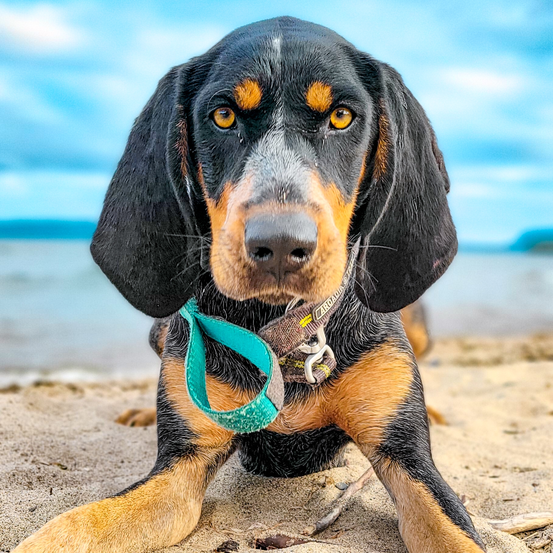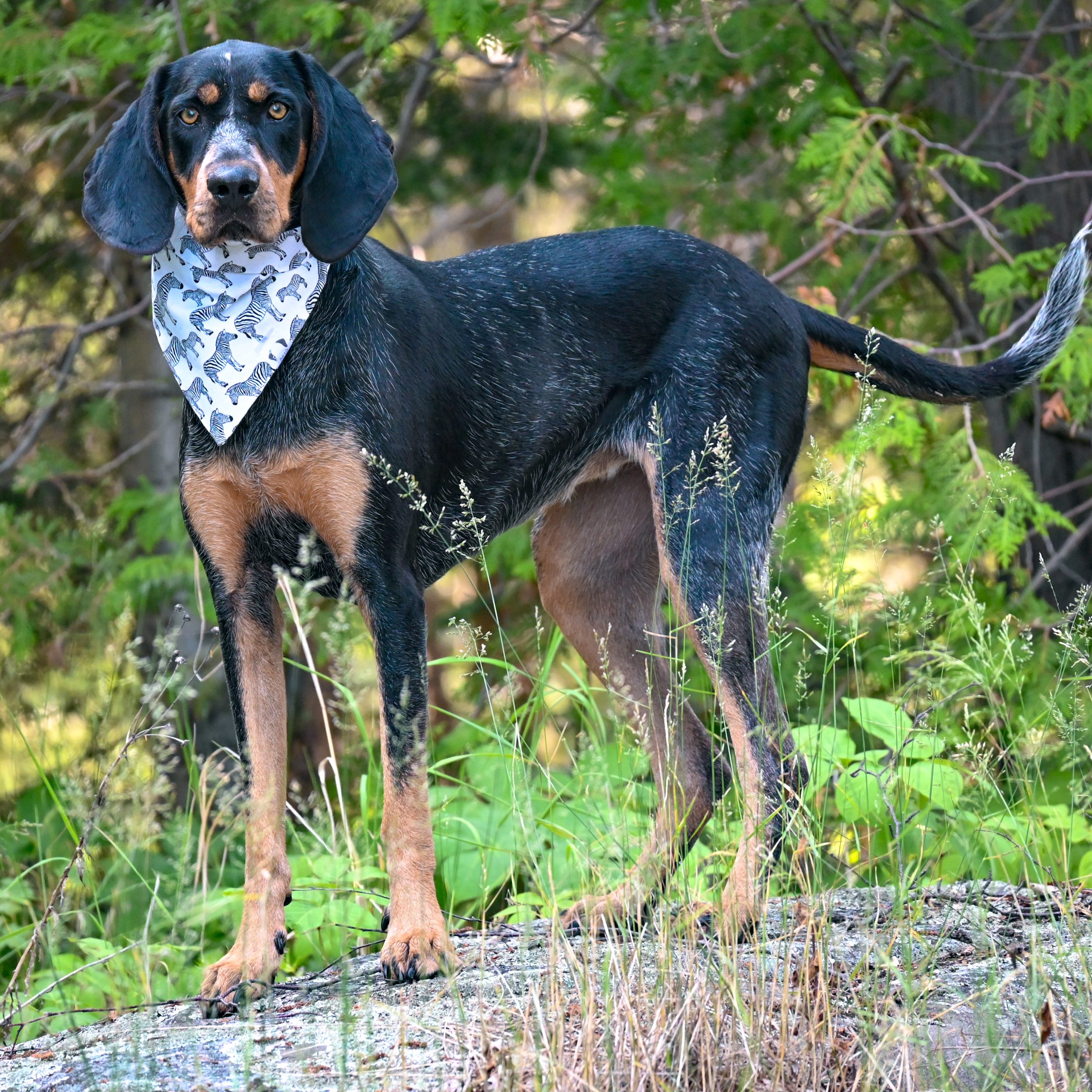1. Luna is a sassy pure bred bluetick coonhound who has floppy ears and a big voice.  She is super food motivated and loves to play.  She is always eager to learn new tricks and occasionally let's her nose get the better of her.  She thinks everyone wants to be friends.  She loves being outside and hiking is one of her favorite activities, regardless of the weather.   She is a great model and knows when the camera comes out, there will be treats!