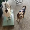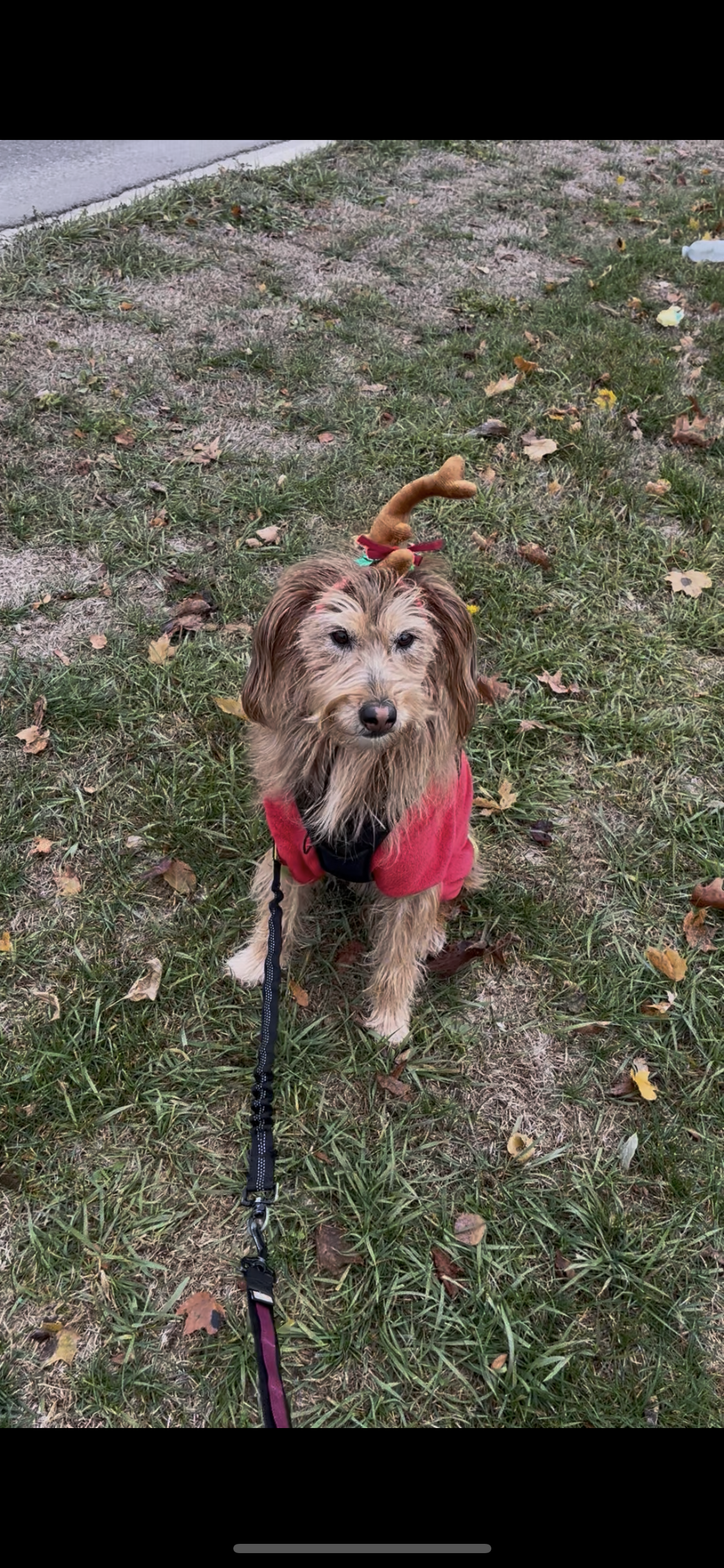 Macey is the perfect family pet. She is great with people and other dogs and cats. She is very intelligent and can learn new skills in short periods of time. She is extremely food motivated and will show off her skills for a snack! Macey is an athlete and enjoys agility and running beside the bicycle. Macey enjoys being dressed up especially in her pyjamas. When lounging at home, Macey can often be found by the fire place with her cat brothers.