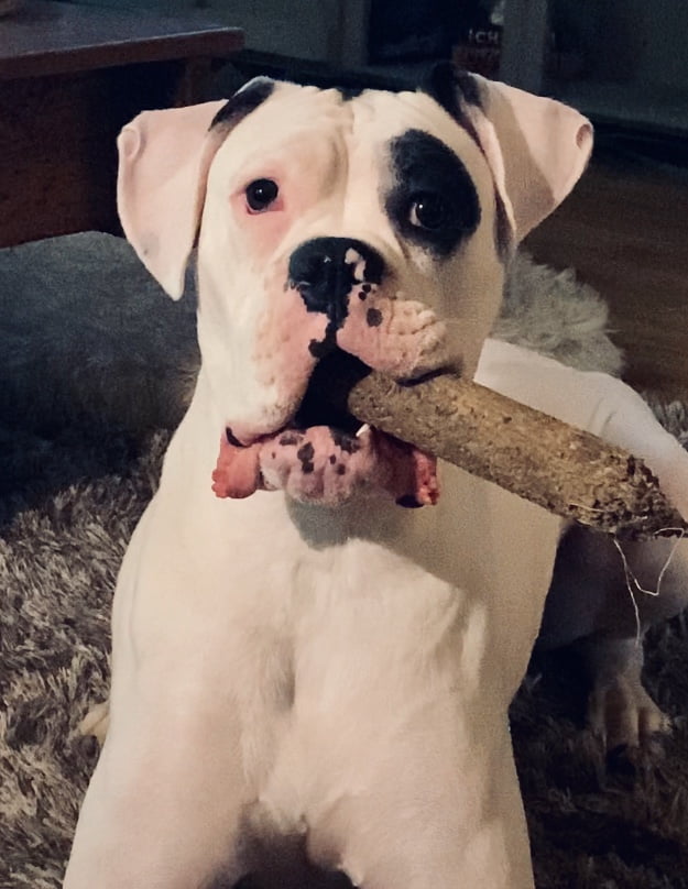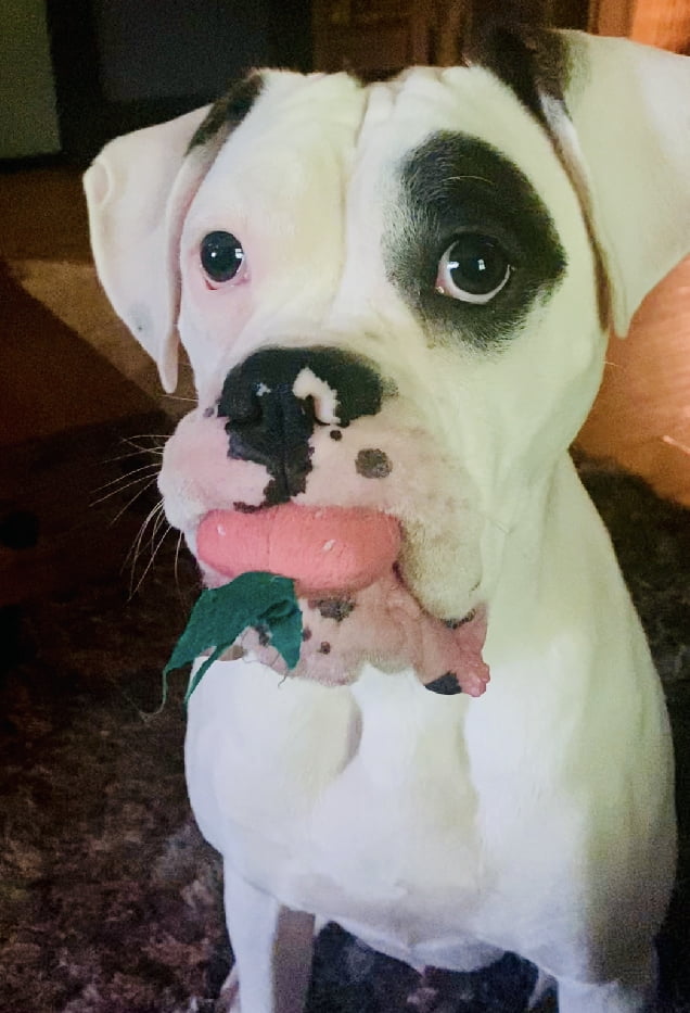 Magnum is super high energy and super fun. He loves cats, toys, people and other dogs. He’s funny and FUN. Not a fan of swimming but loves dipping his feet. Will do anything for a hot dog. His naughty antics recently went viral on tiktok and his account continues to grow in popularity.