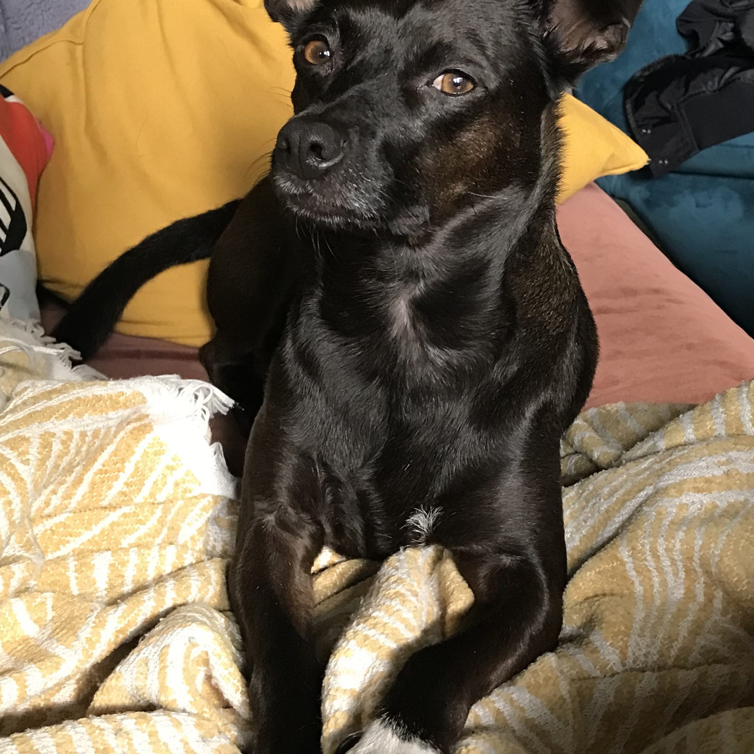 Manny is primarily a rat terrier x chihuahua mix. He is a small dog with a big personality! He's super smart and full of energy, a curious and eager boy who loves to play, is very food motivated and can be trained very quickly to do new tricks.