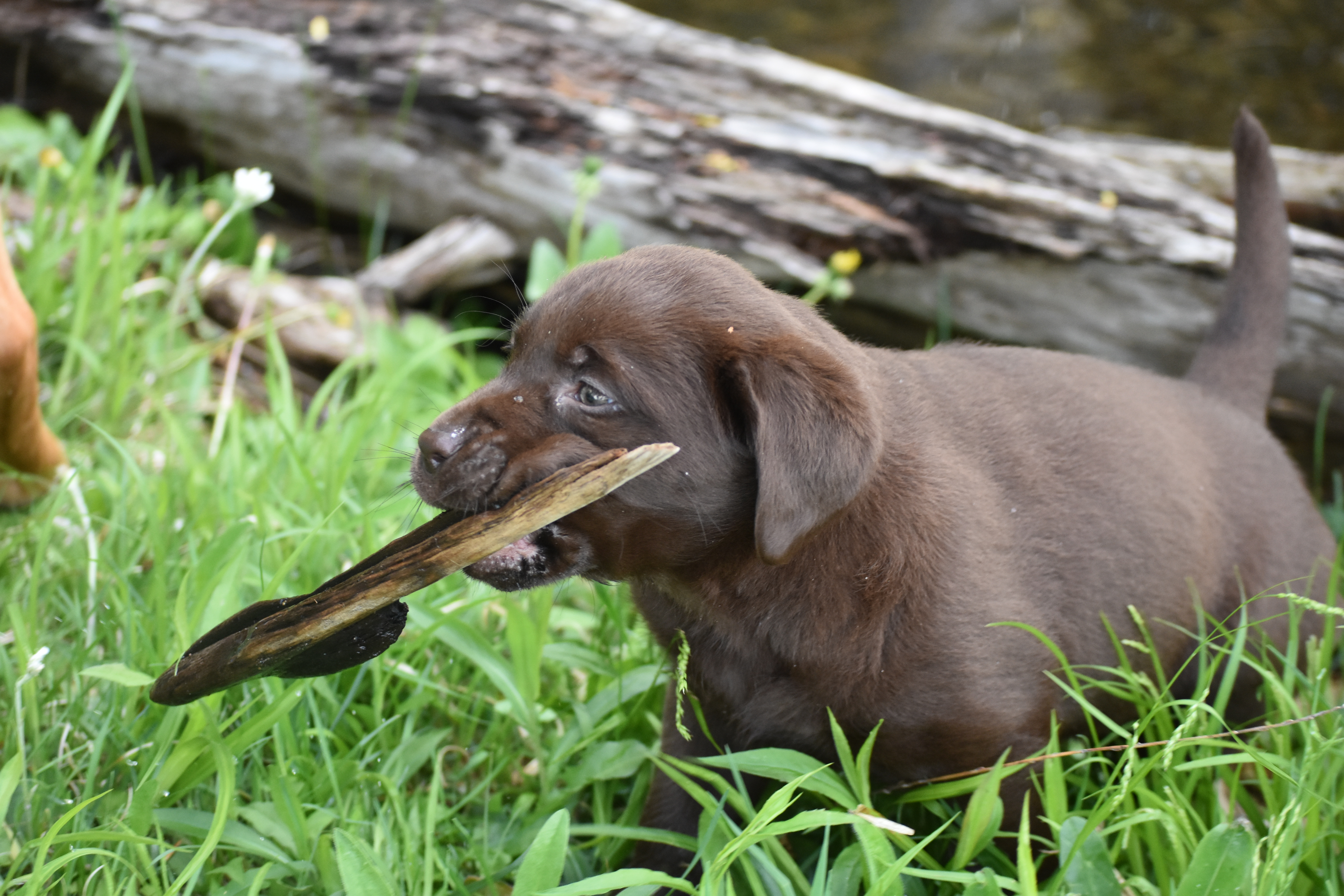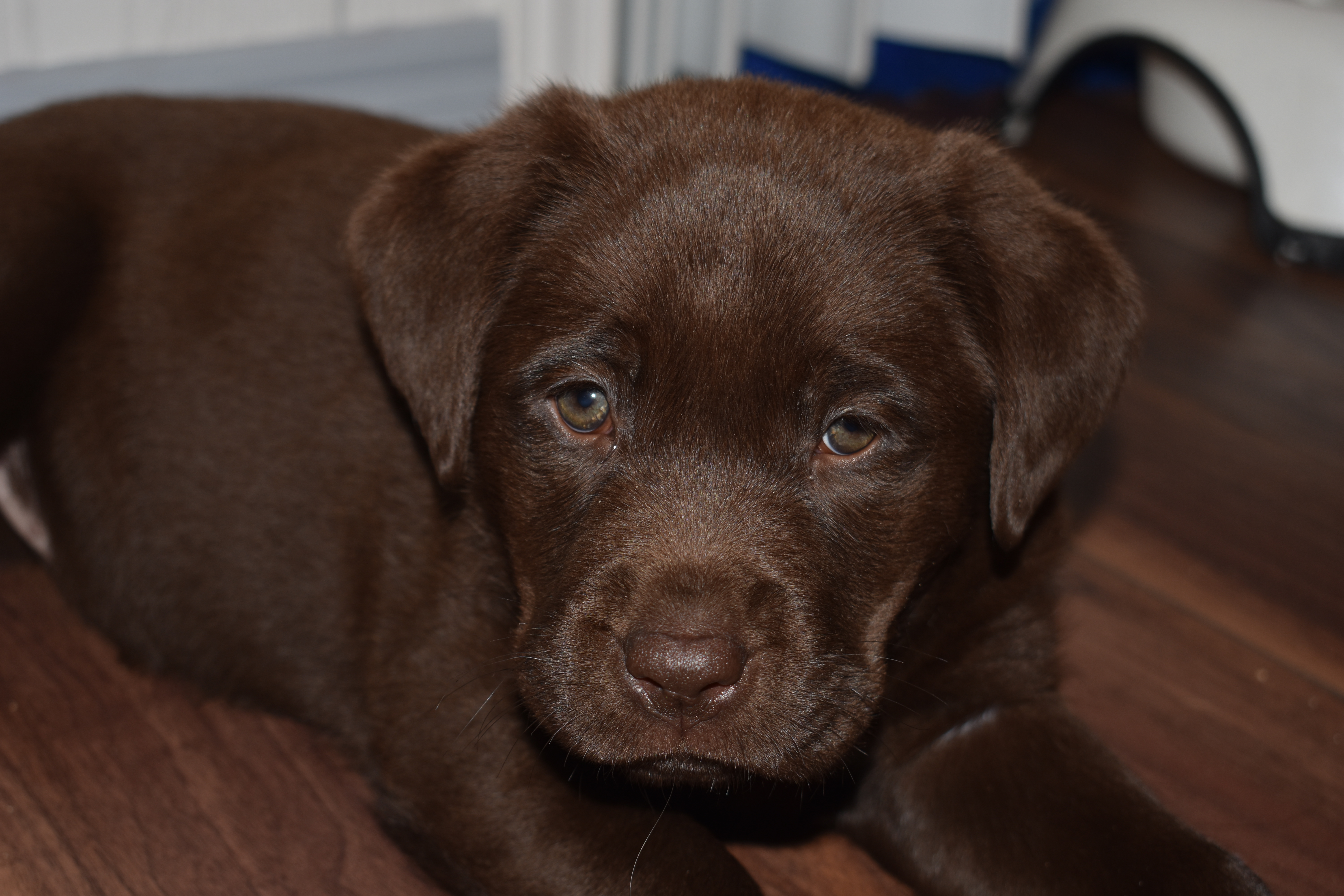 Maple is a very sweet 9 week old chocolate Labrador retriever. She loves to play with her toys, her big sister, and go for walks. Maple has also recently started swimming! She is very food motivated and is quickly learning her commands!