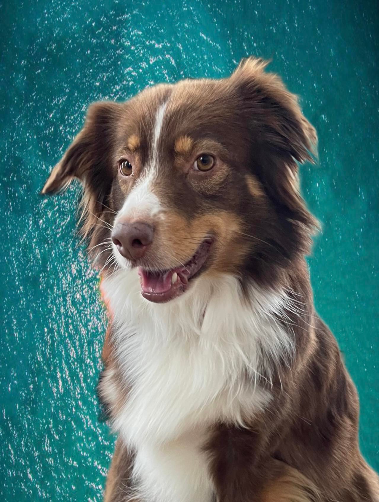 Marleau is a very busy, sweet and very friendly little girl who loves everyone. She loves to swim, dock dive and loves to work for food and toys. Marleau loves to pose for the camera, has basic obedience skills and has no aggression with other dogs.