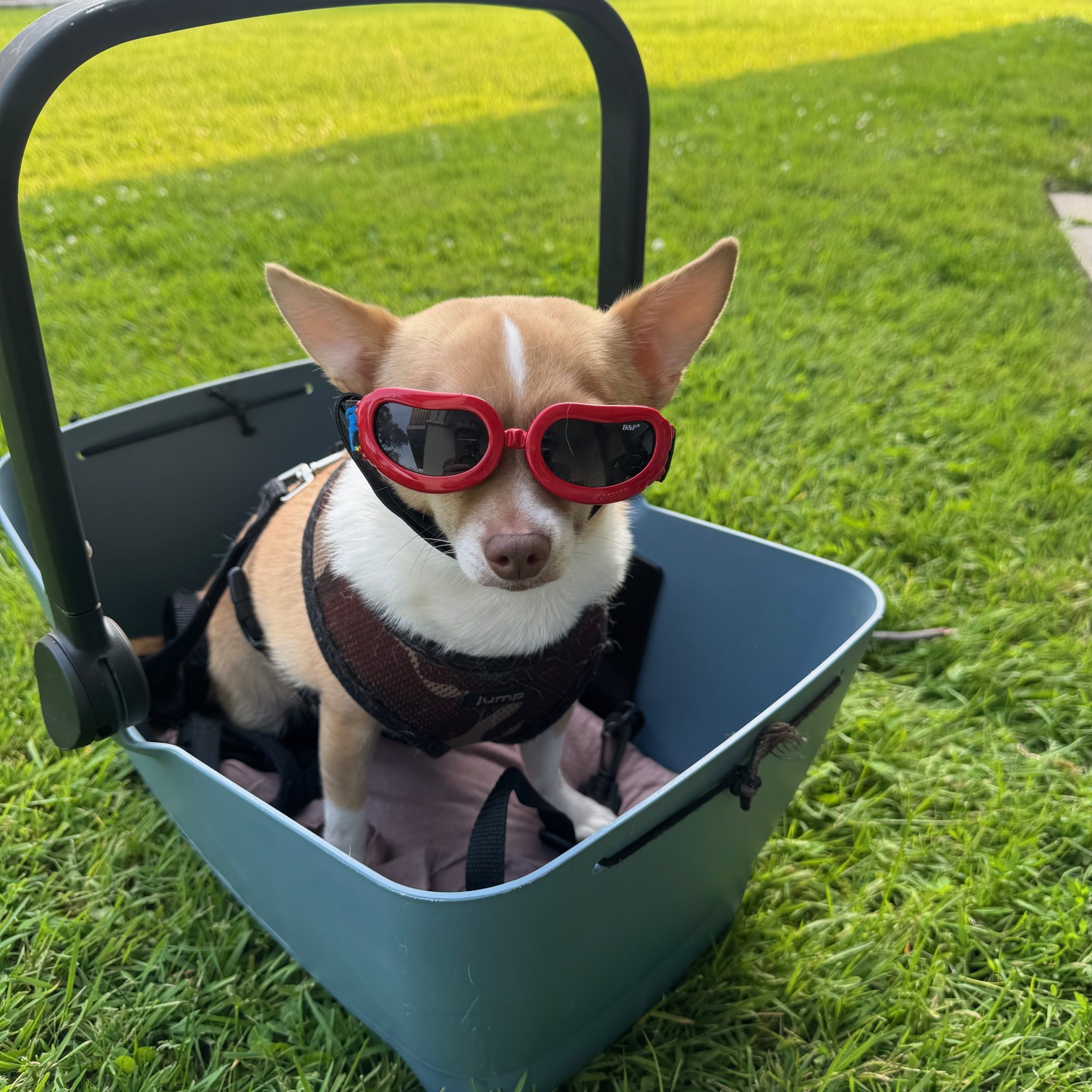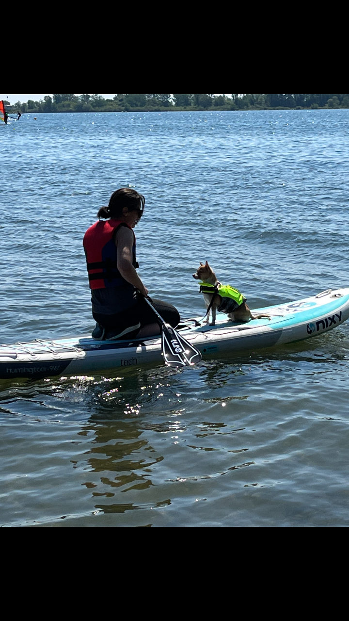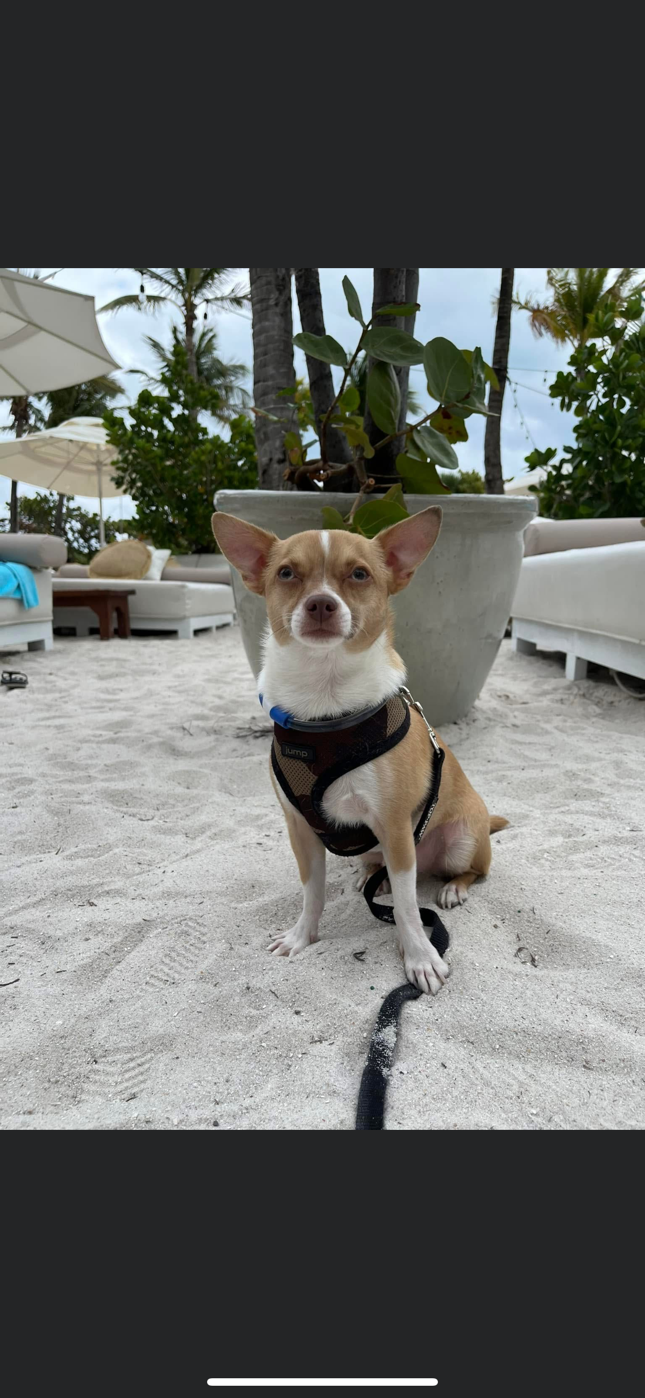 He is on the calm side and very accommodating. Very sweet and does very well in crowds and public places. He is used to taking the subway bus car train.