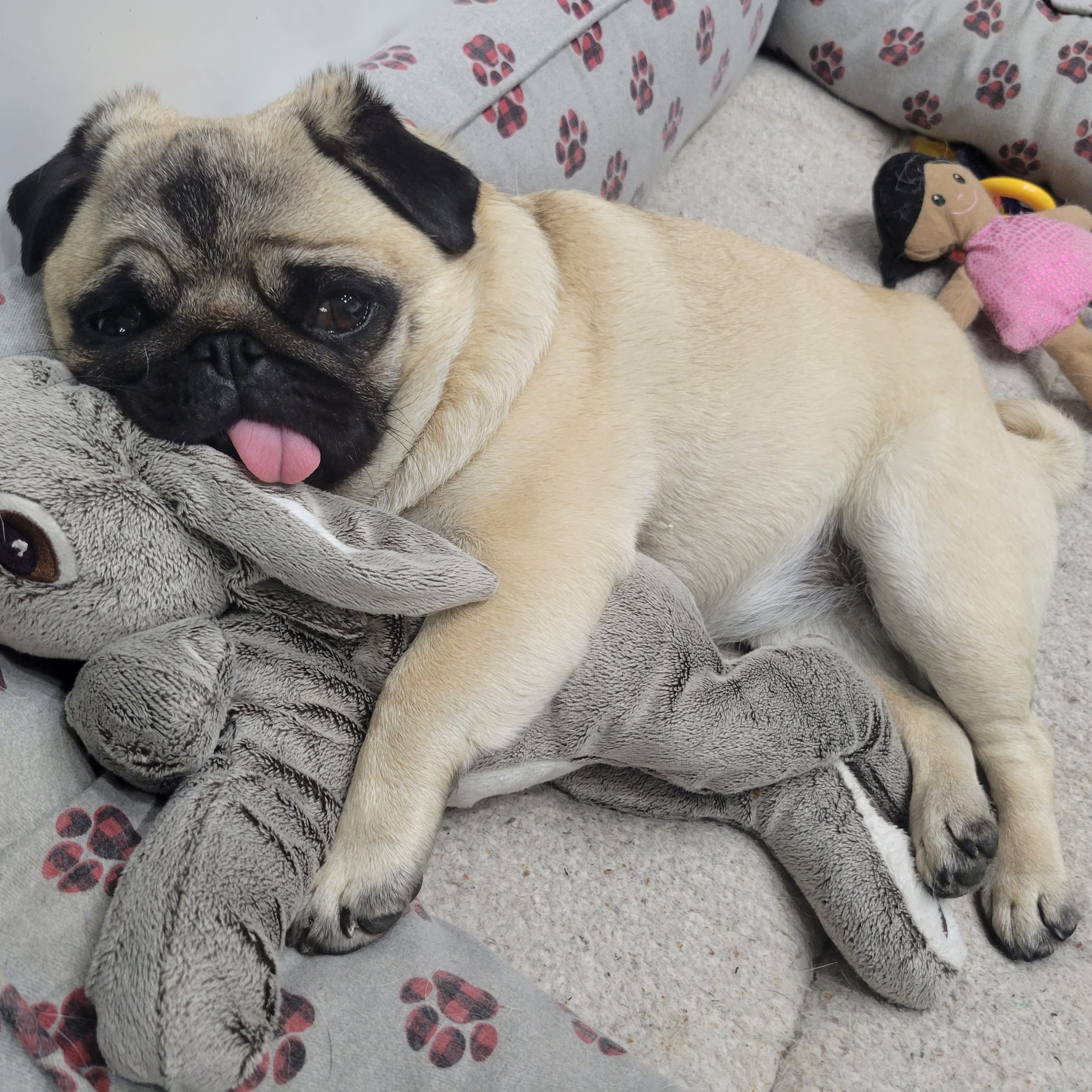 She is full of kisses & love and loves to roll over for belly rubs and loves getting pets and attention from anyone around her.