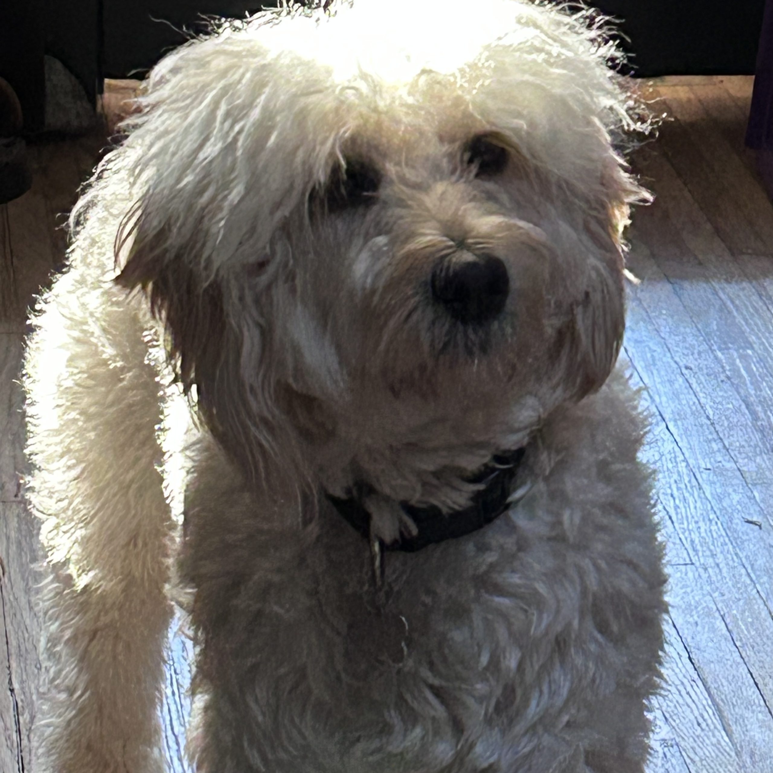 Mozart is super cute, curious, very social, loving and playful. He has high energy when he’s in play mode, chasing a ball or stick or romping with another dog, and is chill and cuddly when he’s not. He adores his toys and his people, and gets on well with cats. He loves the water but is not a swimmer. He gets into the groove if dancing is happening and loves a group hug. He is extremely patient and has such a kind and gentle demeanour, and “good energy”, that he has been lighting up the hearts and bringing ease to patients and nursing staff in a palliative care centre.