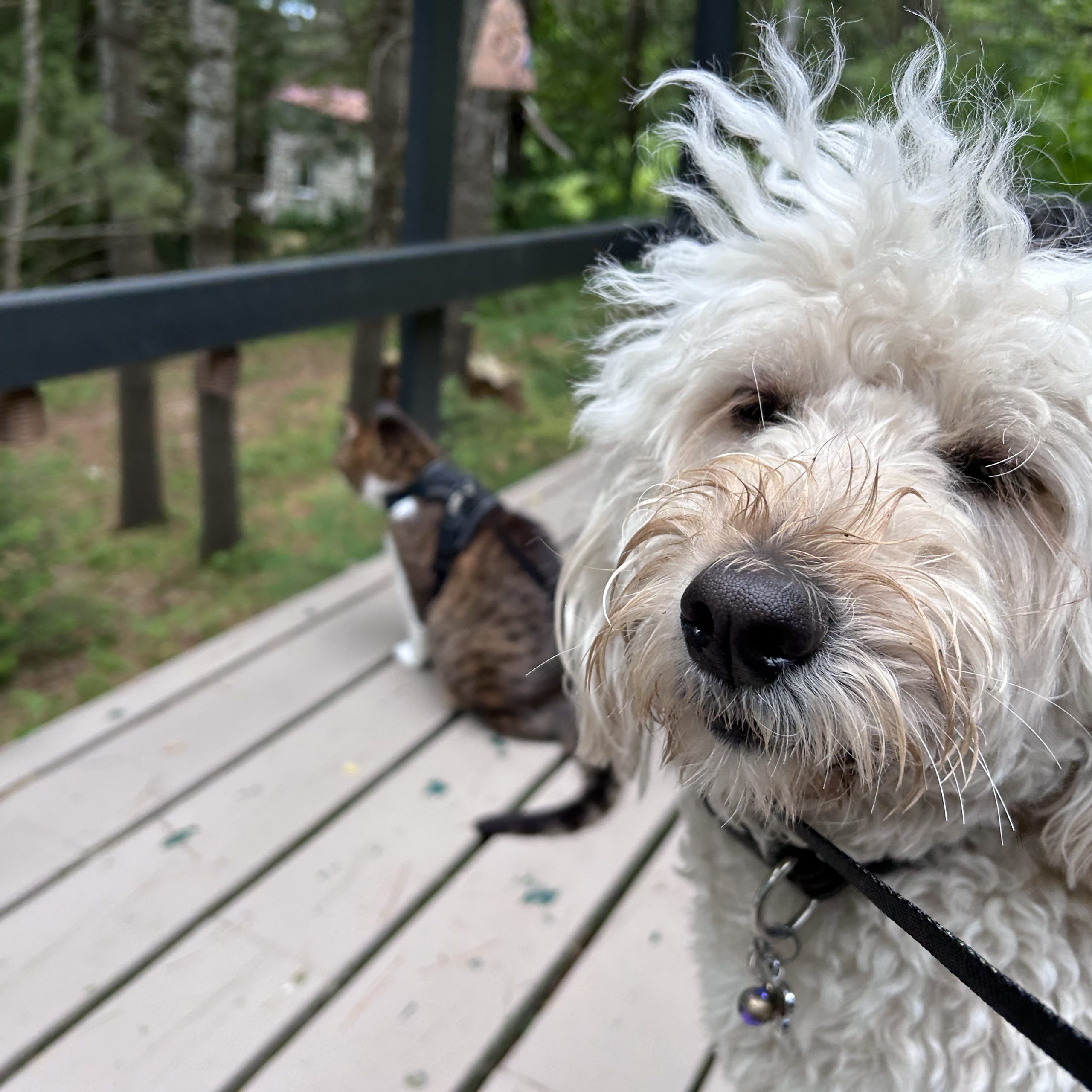 Brings in the paper / mailDelivers an item to another person in the houseStretch on commandKayaks (passenger)Watches TVKnows his toysSitting or standing on a foot stoolGiving a paw (saying ‘Hello’)High fives“Dirty Paws”Sitting back up from a lie down