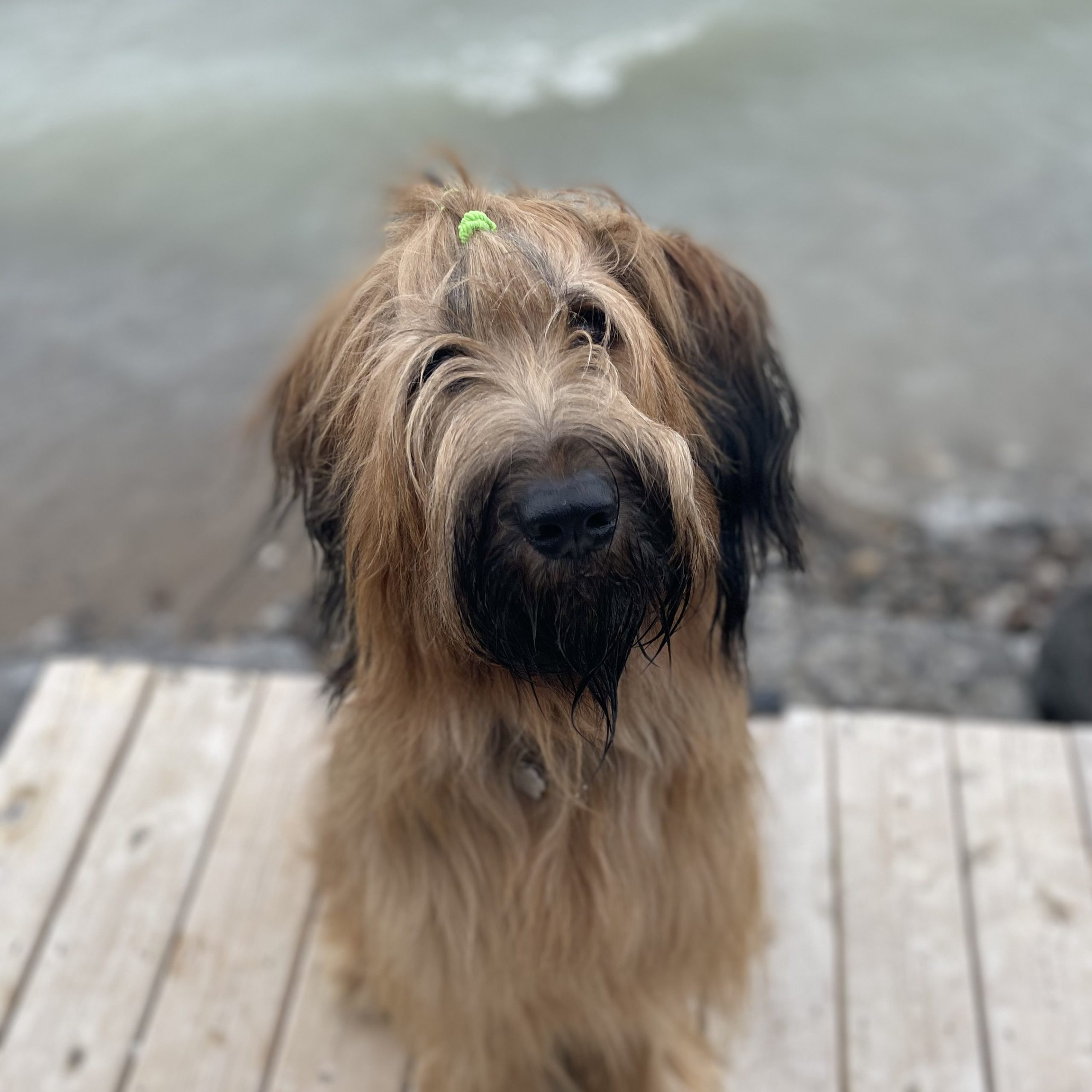 Olive is a 2 year old tawny Briard, she loves kids, adults and dogs. In her spare time she runs agility courses and works at a school as a sweet charity medical assistant canine ambassador. Olive loves retrieving toys, belly rubs, playing tug a war, swimming, eating ice cream, chasing bubbles, stand up paddle boarding, and getting muddy on rainy days!