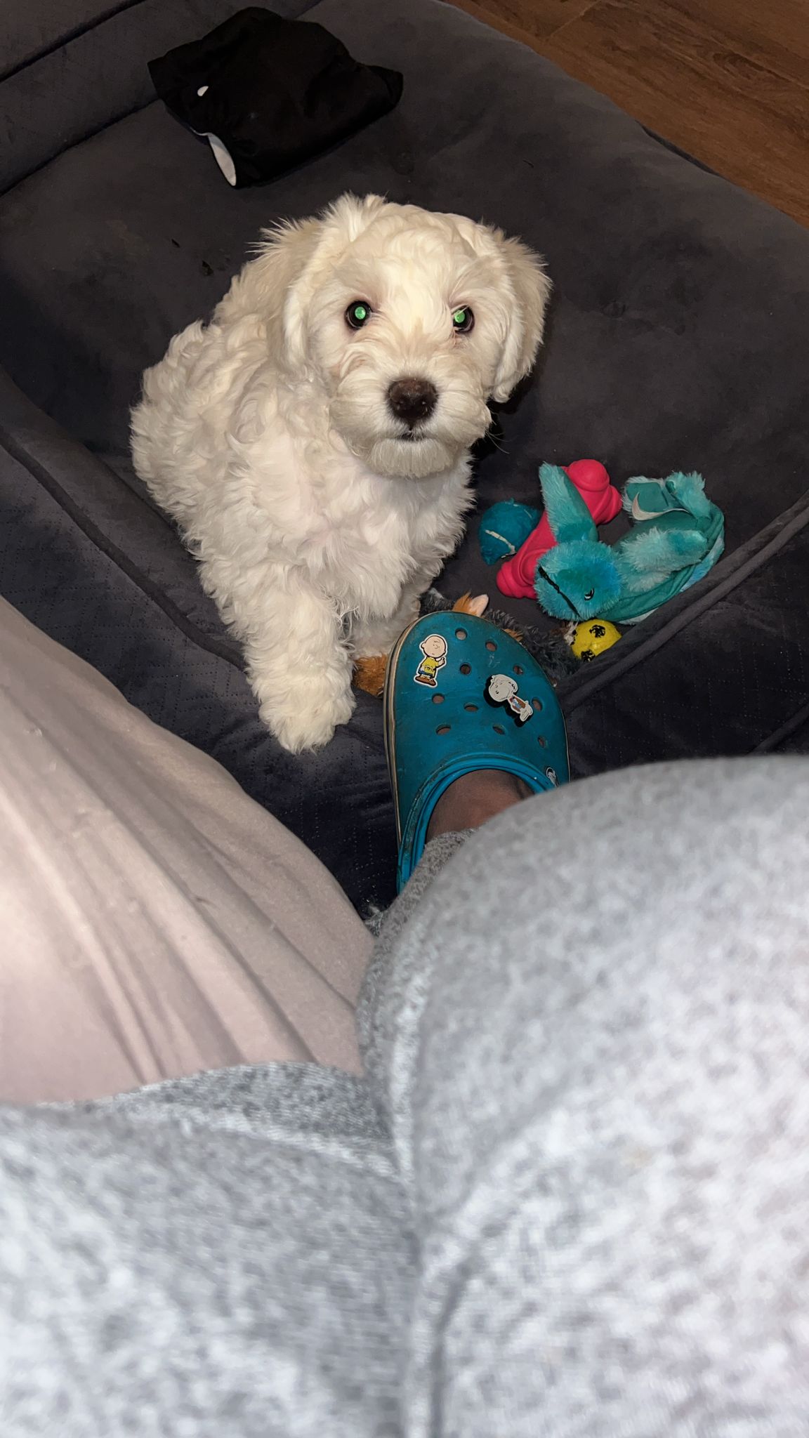 Oliver is a very nice puppy who has learned a few skills and still in training. He loves to play with his toys and their parents. He's super cute, friendly, playful and balanced. He loves to cuddle when he sleeps and being pet but he also loves his own space sometimes.